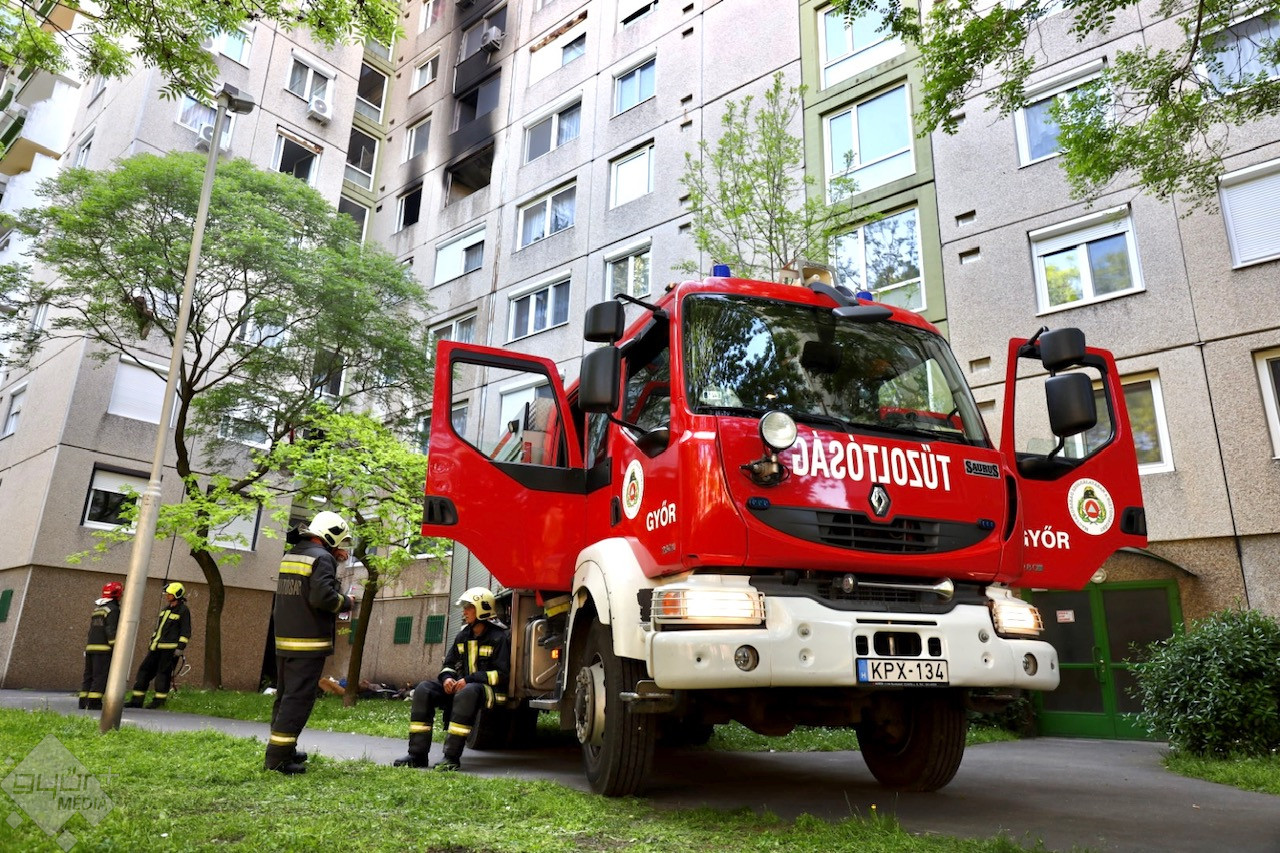 Megakadályozták a lángok továbbterjedését, majd eloltották a tüzet Győrben, a Borsos Miklós utcában, ahol kigyulladt egy társasház egyik ötödik emeleti lakása. Az egyik szoba és a konyha teljes terjedelmében, míg az előtér részlegesen kiégett, a másik szoba pedig megtelt füsttel. Az esethez a győri, a lébényi, a csornai és a pannonhalmi hivatásos tűzoltókat riasztották, akik a Győr-Moson-Sopron vármegyei katasztrófavédelmi műveleti szolgálat irányítása mellett fékezték meg a lángokat.