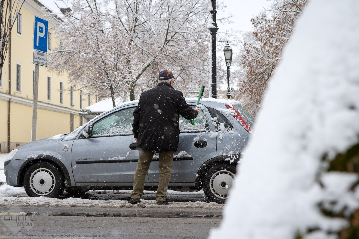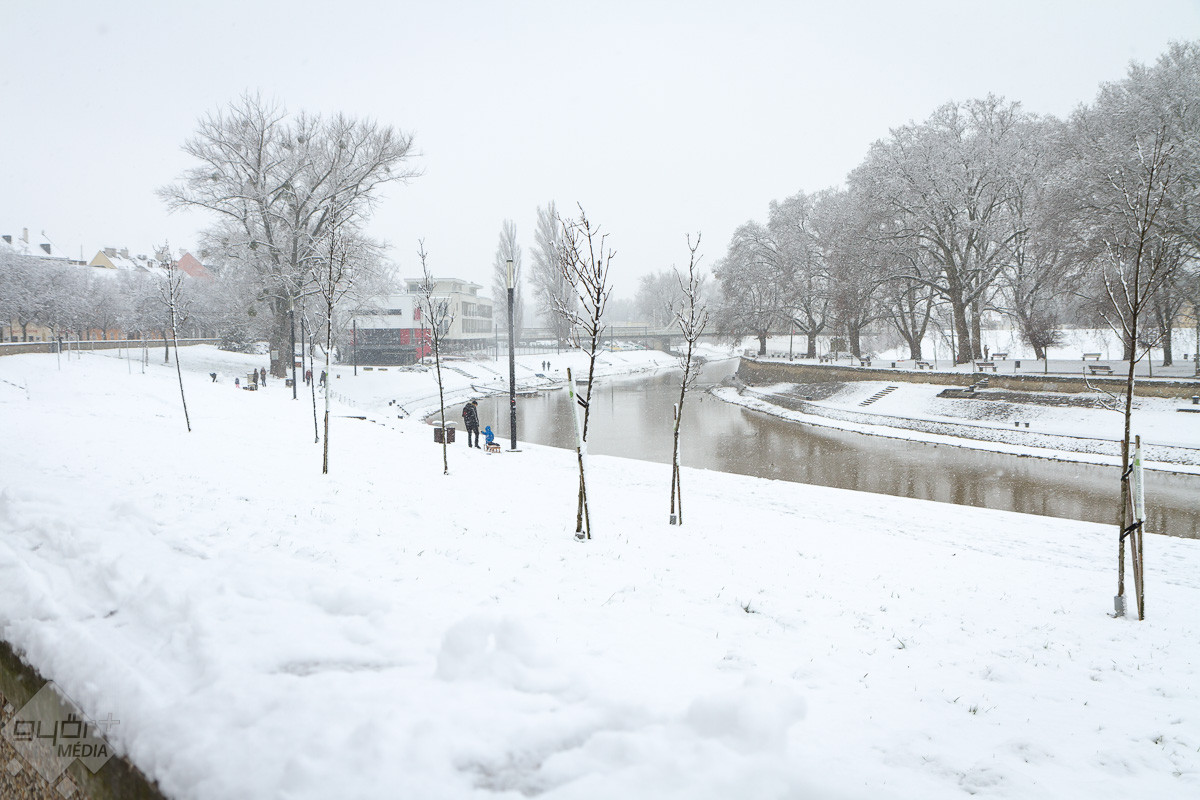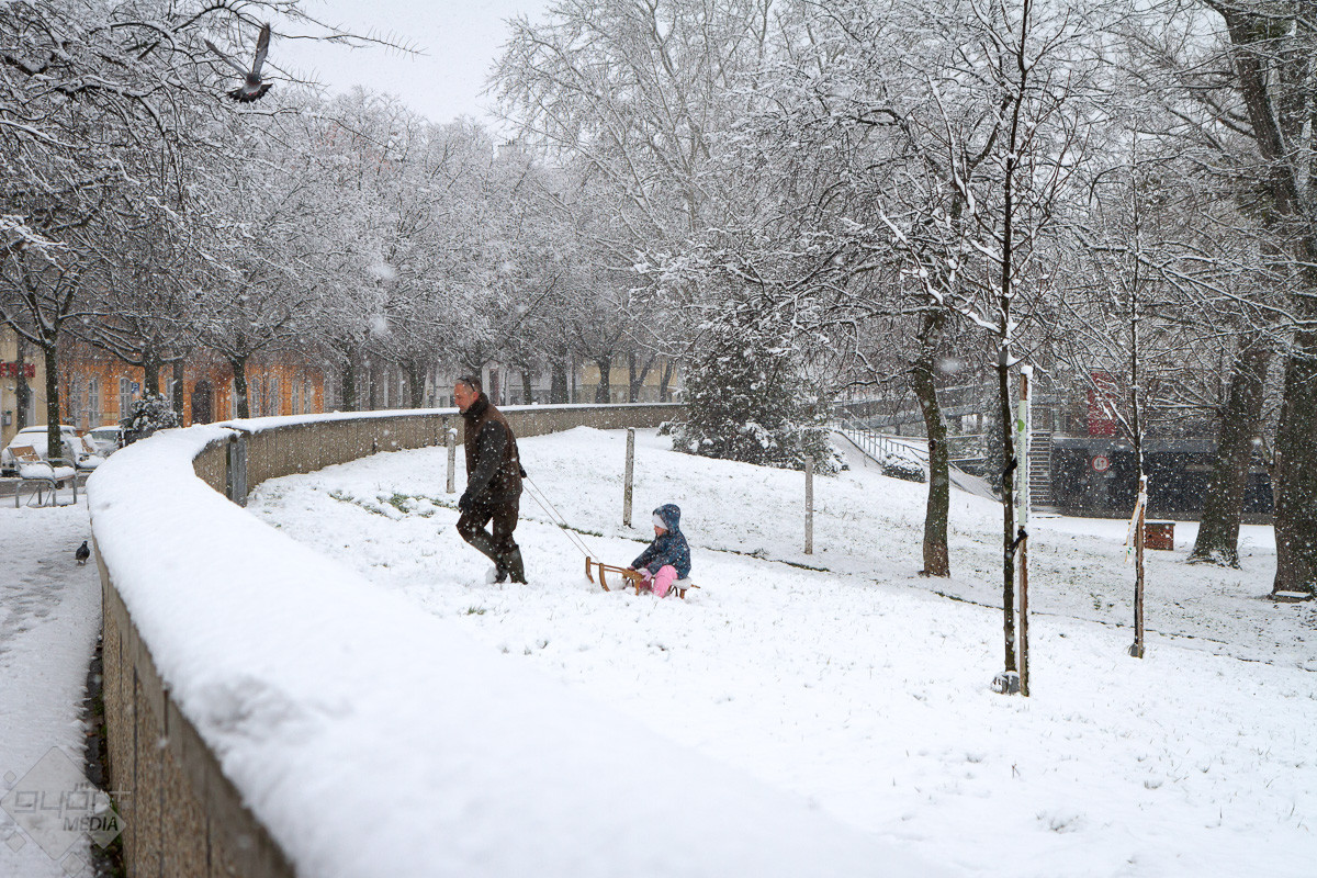 Egész délelőtt kitartott a havazás Győrben. Sokan ragadták meg az alkalmat: volt, aki fényképezőgéppel rótta az utakat, volt aki hóembert épített, sokan pedig szánkózni indultak a gyerekekkel.