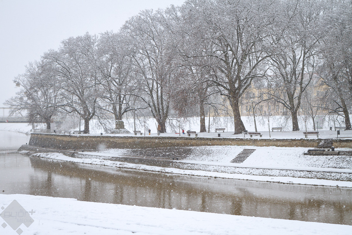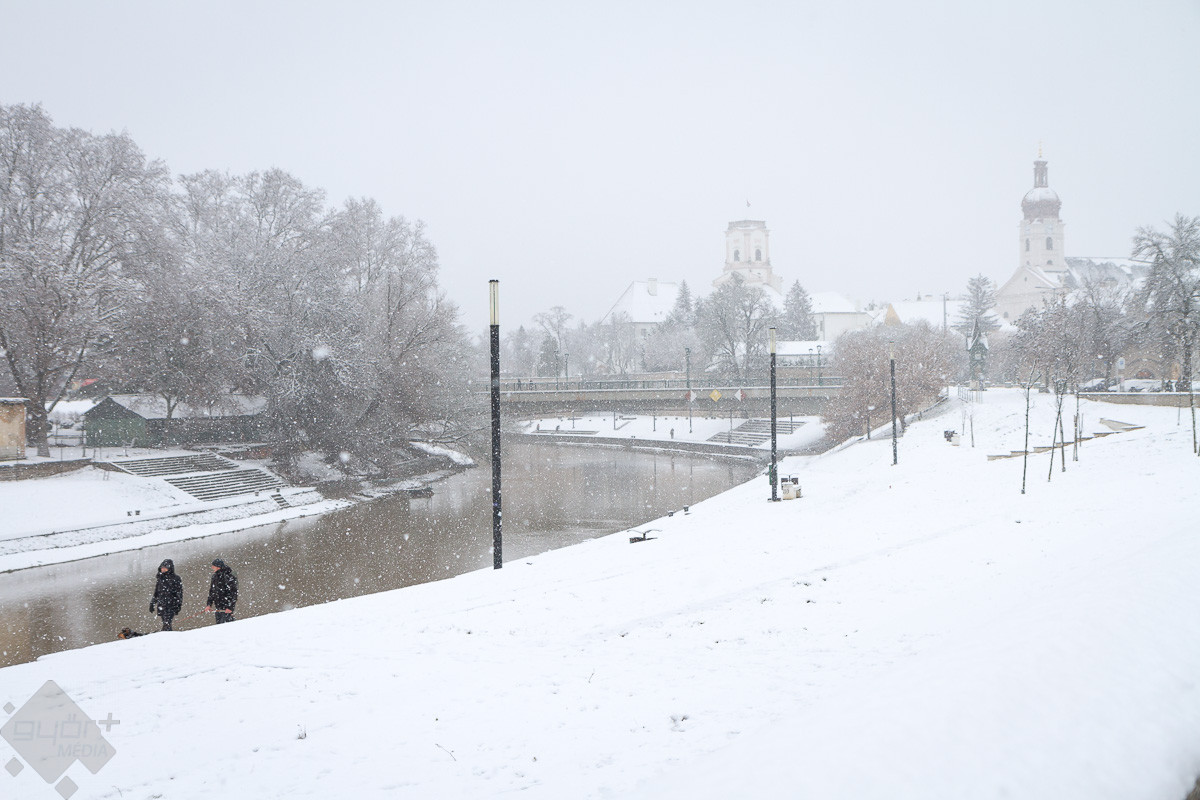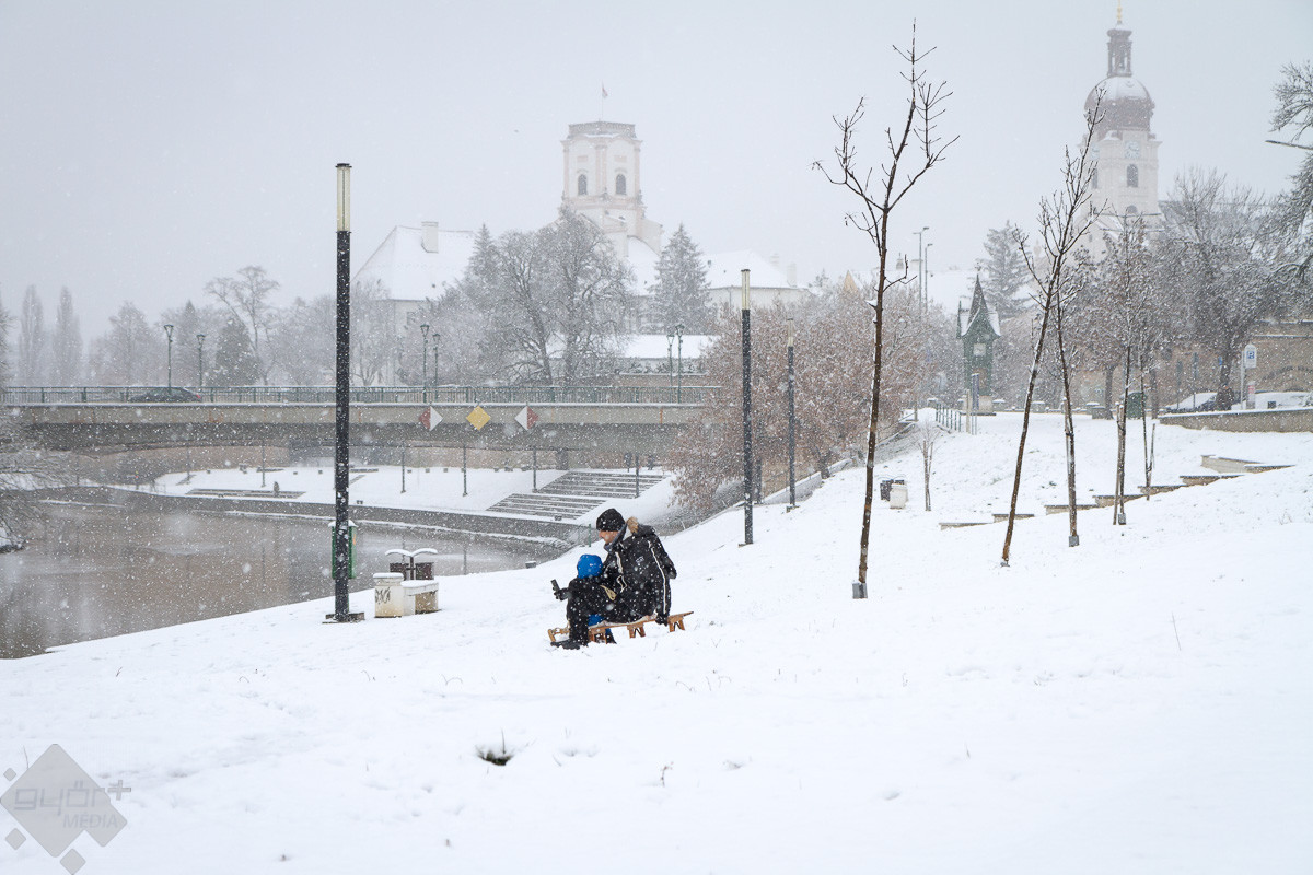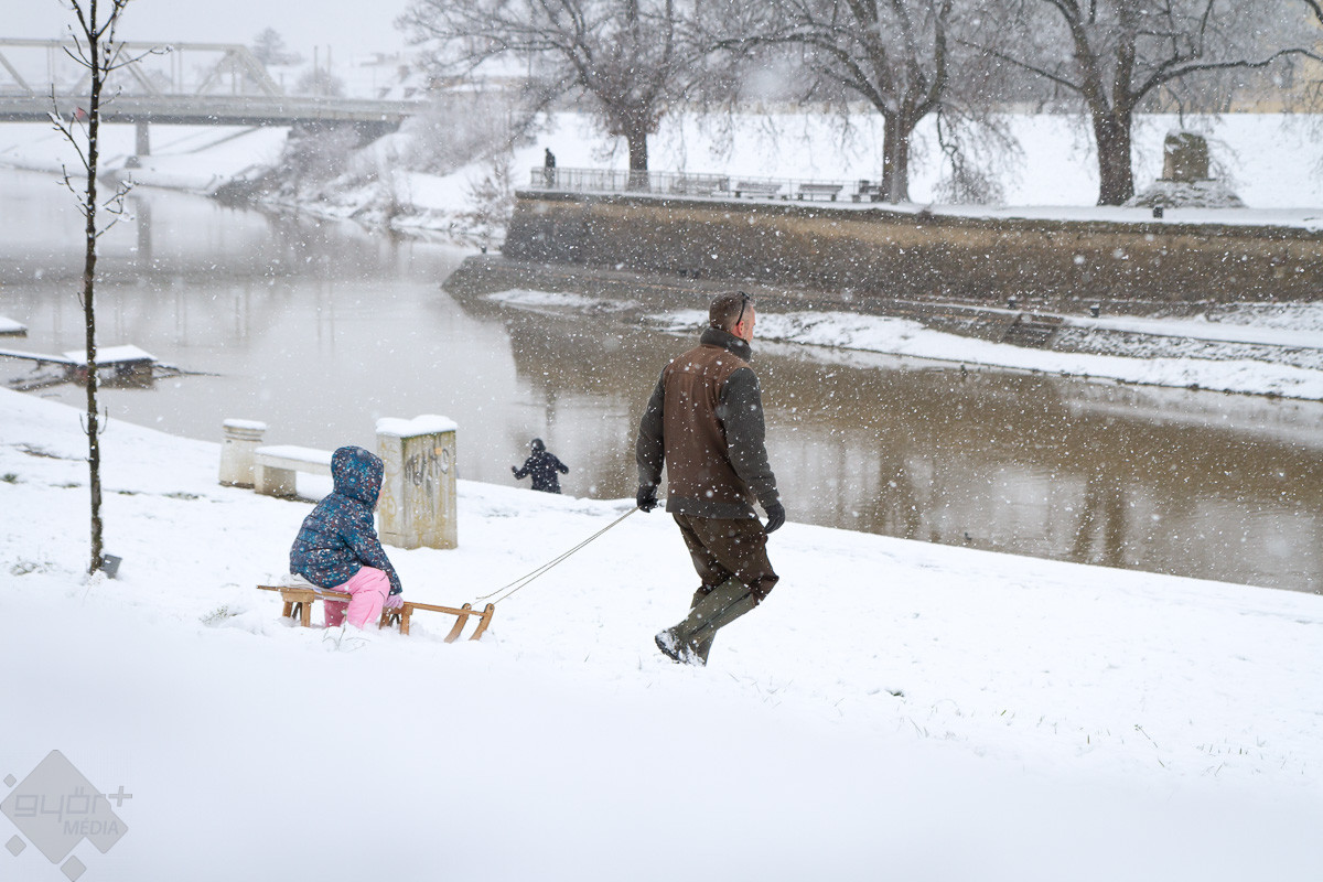 Egész délelőtt kitartott a havazás Győrben. Sokan ragadták meg az alkalmat: volt, aki fényképezőgéppel rótta az utakat, volt aki hóembert épített, sokan pedig szánkózni indultak a gyerekekkel.