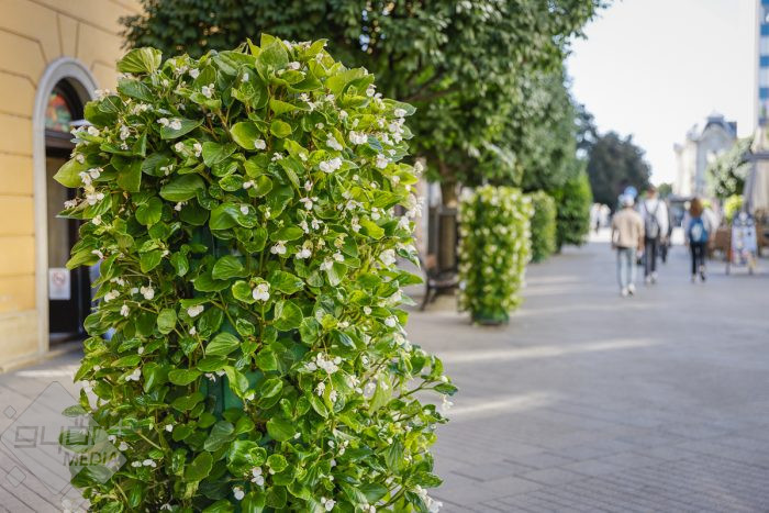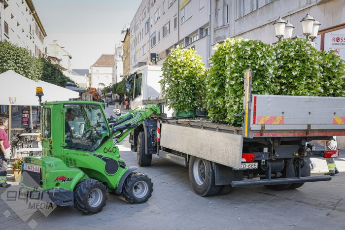 Kedden reggel kezdték kiszállítani és telepíteni a belvárosi sétálóutcákba azokat a virágoszlopokat, amelyek a Győr-Szol Zrt. saját fejlesztései. Az oszlopokban lévő termőtalajba még márciusban kerültek a palánták, a szolgáltató üvegházában az elmúlt hónapokban gondos kezek ápolták, öntözték, nevelték őket. Az 51 virágoszlopba közel 6000 palántát ültettek el. Nagy levelű, fehér virágú begóniák ékesítik ezeket az oszlopokat, amelyek jól tűrik a mostoha körülményeket, a szárazságot, az erős napsugárzását, a városi levegőt.