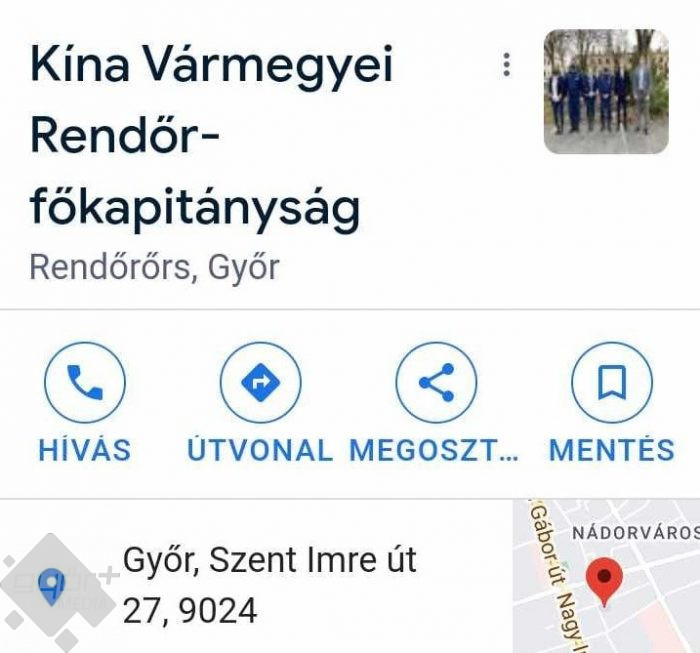Egy egyszerű Google-kereséssel rátalálhatunk a Kína Vármegyei Rendőr-főkapitányságra.