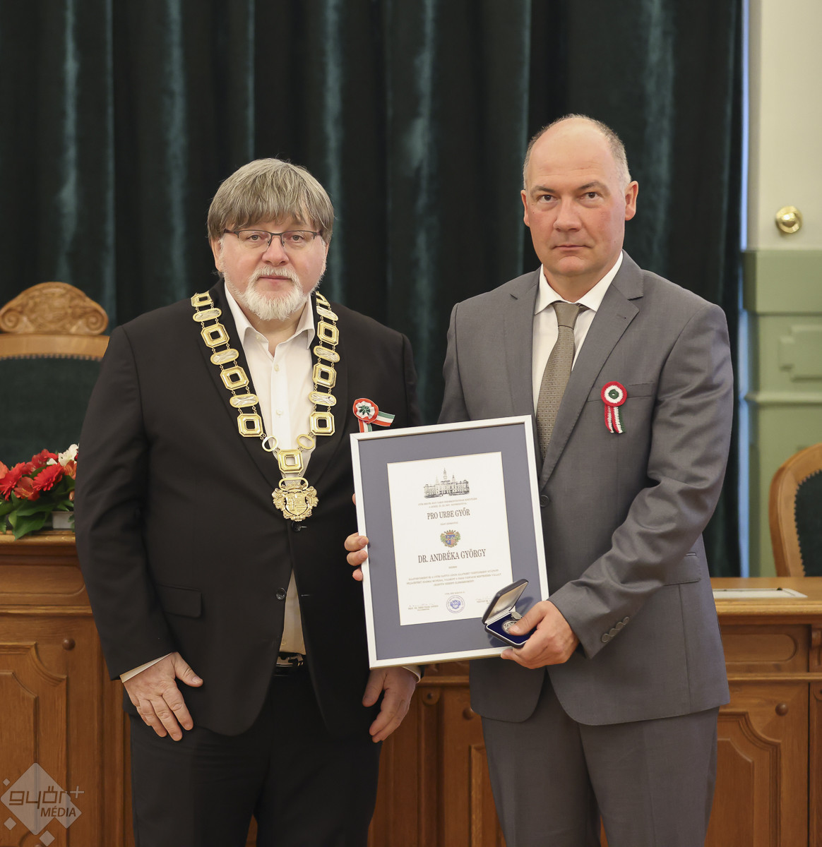Dr. Andréka György részére az állatorvosként és a győri Xantus János Állatkert vezetőjeként nyújtott példaértékű szakmai munkája, valamint a hazai vadfajok mentésében vállalt jelentős szerepe elismeréseként Pro Urbe Győr díjat adományoz.