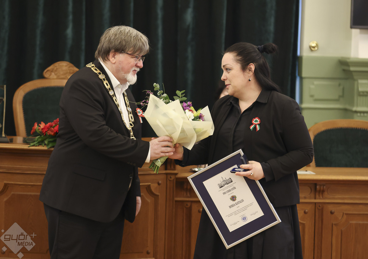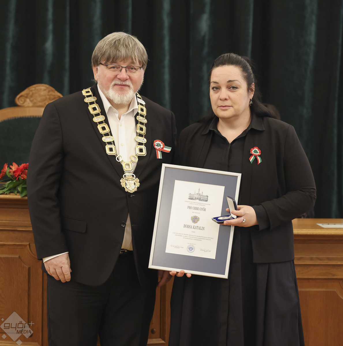 Borsa Katalin részére a Győr város hírnevét öregbítő fesztiválok és rendezvények magas színvonalú szervezéséért, valamint a város kulturális sokszínűségét gazdagító művészeti munkája elismeréseként Pro Urbe Győr díjat adományoz.