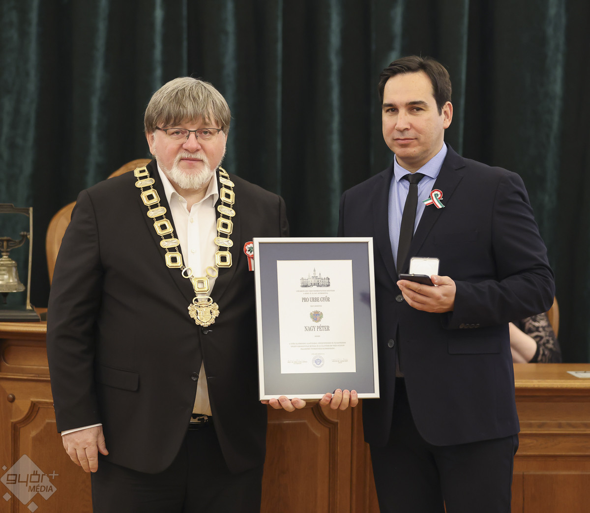 Nagy Péter részére a Győri Állatmenhely alapításában, működtetésében és fejlesztésében végzett fáradhatatlan munkája és az állatvédelem terén nyújtott példaértékű tevékenysége elismeréseként Pro Urbe Győr díjat adományoz.