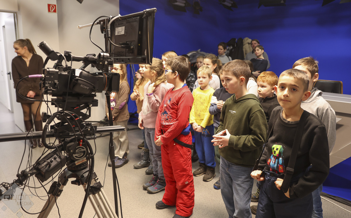 A tanulmányi kirándulás ezt követően a televíziós stúdióban folytatódott, ahol a gyerekek testközelből ismerkedhettek meg a híradókészítés folyamatával. Megtudták, hogyan működnek a kamerák, milyen szerepe van a fényeknek és a díszletnek, sőt, a kulisszák mögé is bepillanthattak.