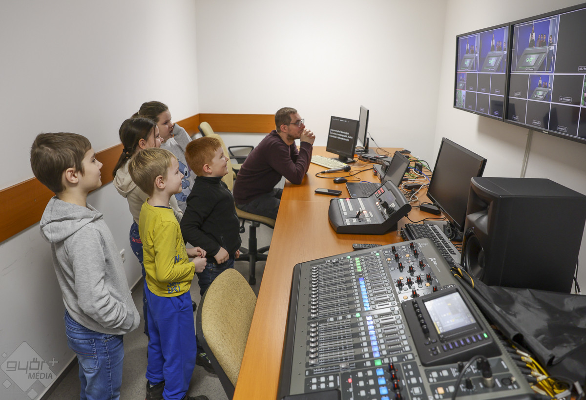 A diákokat meglepetésként érte a hír, hogy a Győr+ országosan is egyedülálló, hiszen ritka, hogy egyetlen épületen belül működjön együtt a médiacentrum összes felülete: a televízió, a rádió, az online szerkesztőség és a hetilap.