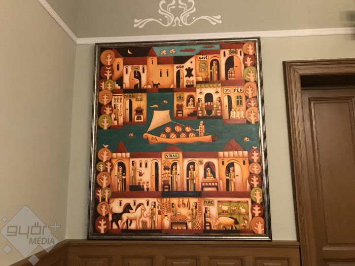 A képet egy szabadhegyi építőipari cég finanszírozta. “Nagyon örültünk, hogy ezzel tudjuk támogatni az önkormányzatot, többek között azért is, mert ebben a terembe több egyeztetés is zajlott az önkormányzat és közöttünk és úgy éreztük, hogy ez egy remek lehetőség, hogy kifejezzük egy kicsit a hálánkat az önkormányzat felé, mivel az utóbbi időben rendkívül pozitívan és rugalmasan áll hozzá a vállalkozói réteghez. Egyben támogatjuk azt, ha egy helyi művész támogatja az önkormányzatot, mert Győr városa ezt megérdemli”- mondta el a Győr+ Médiának Györkös Gábor, ügyvezető.