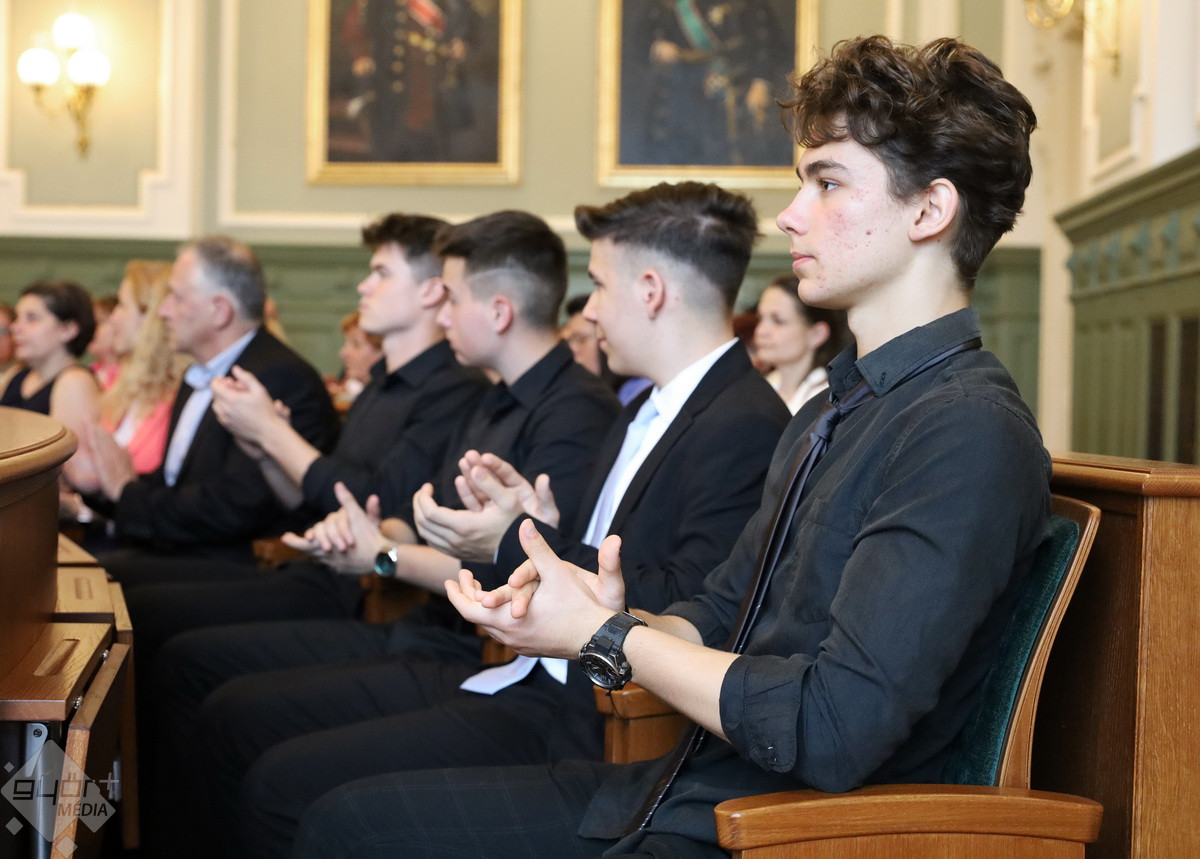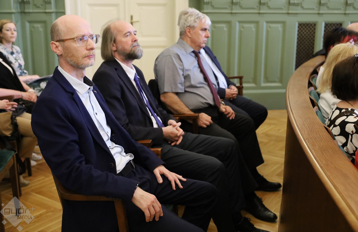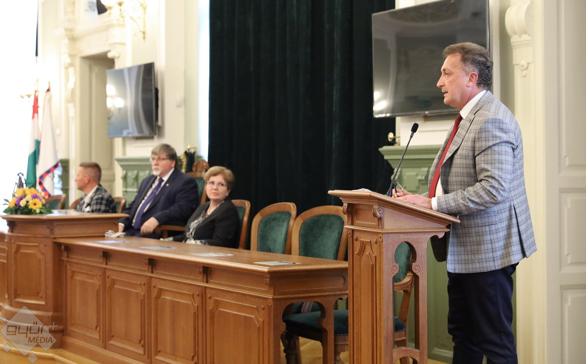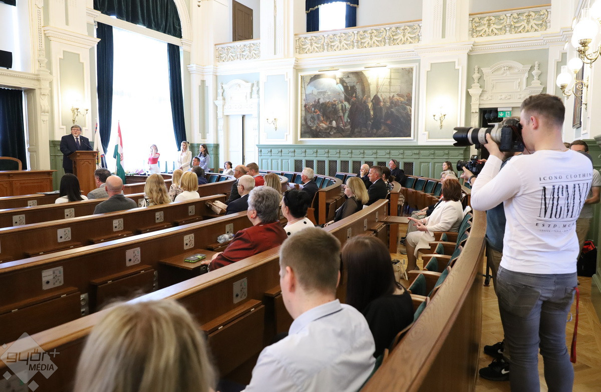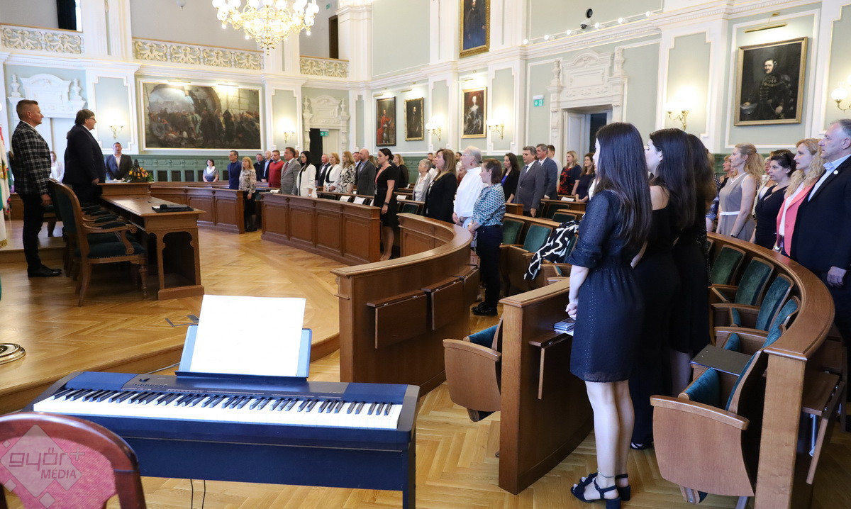 Dr. Dézsi Csaba András polgármester ünnepi köszöntőjében kiemelte, hogy Győr iskolavárosként nem csak a múltban, hanem a jelenben is fényesen teljesít, több intézmény is az élvonalba tartozik országos viszonylatban. A polgármester beszélt arról is, mekkora felelőssége van a pedagógusoknak, az edzőknek abban, hogy jó embert faragjanak a gyerekekből. Megköszönte a tanárok munkáját, azokét, akik felnevelik a jövő generációját. „Mert a mai diákokon múlik Győr város jövője, az, hogy milyen városban élhetünk, és hogy Győr megtartja-e az ipari szerepét, azt a szerepet, amit ma már kiegészít az egyetem, az innováció. Rajtuk múlik, hogy a város megtartja-e sikerét a kultúra, a gazdaság, az oktatás, a sport és egyéb más területeken is. Vajon lesznek e folytatói ennek a színvonalnak, mert az elvárás ez.” – hangsúlyozta a polgármester. Majd virággal köszöntötte egykori tanárait: Truka Istvánné Katona Zsuzsannát, Németh Gyulánét és dr. Haffenscherné Géczi Zitát.