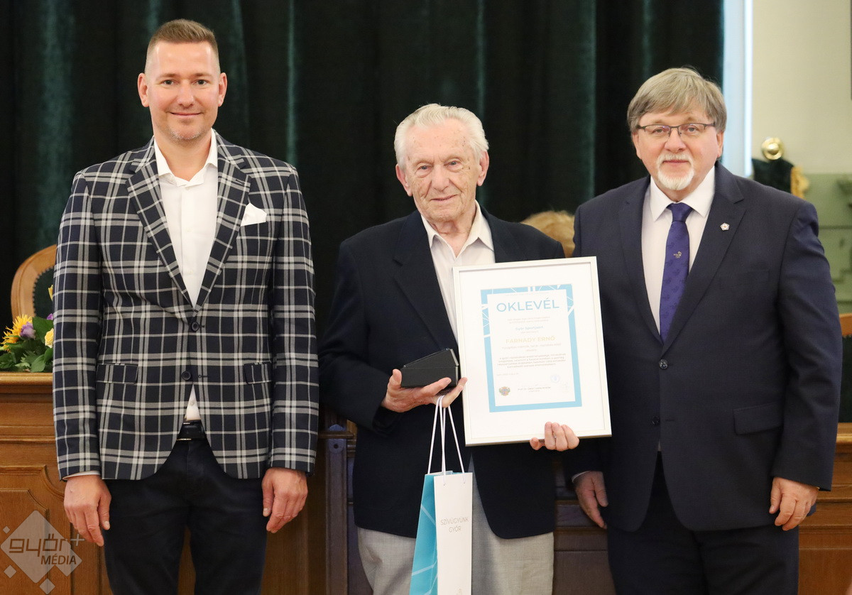 Farnady Ernő nyugdíjas mérnök, tanár, röplabdaedző a győri röplabdázás eredményessége, hírnevének öregbítése, valamint a fiatalok körében a sportág népszerűsítése érdekében betöltött több évtizedes kiemelkedő tevékenységének elismeréseként díjazták.