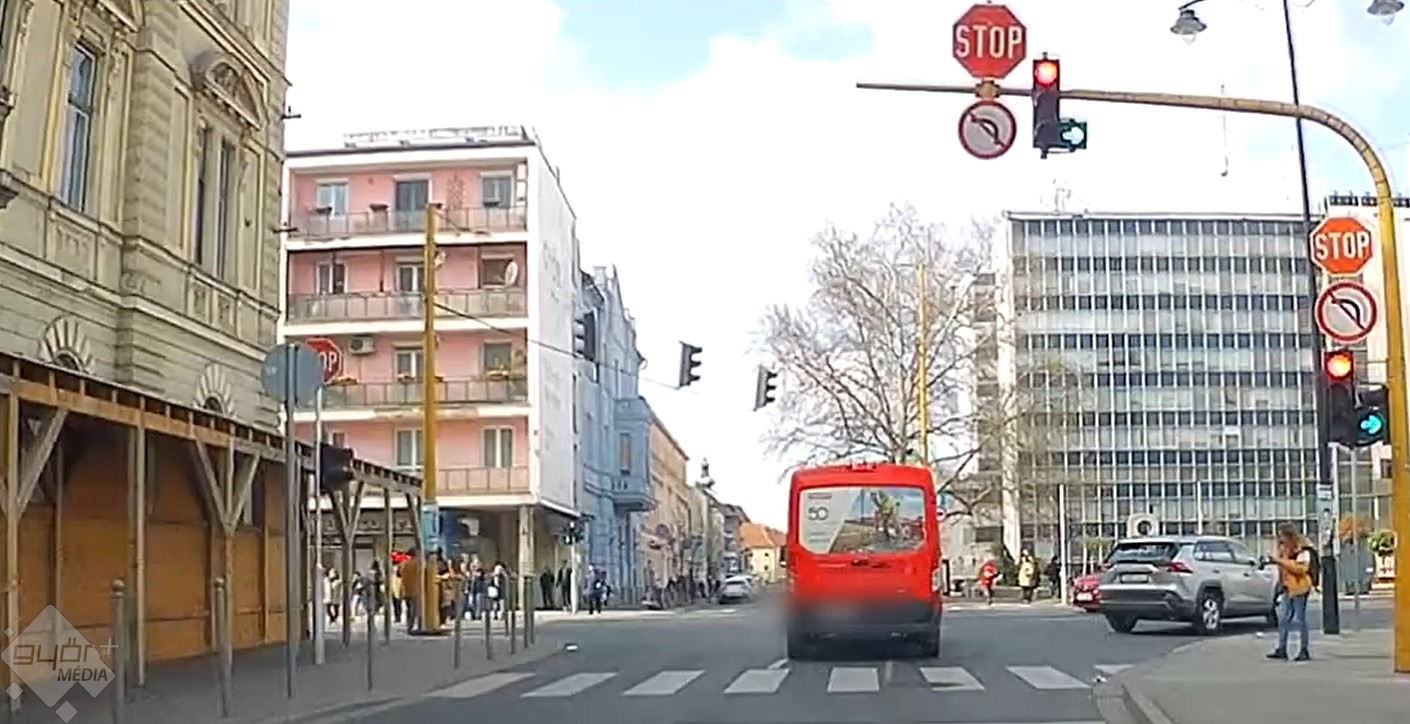 A felvételt egy olvasónktól kaptuk, aki neve elhallgatását kérte. A videón látható, hogy a Szent István út-Aradi vértanúk útja kereszteződésnél, a tilos jelzés ellenére hajt egyenesen egy furgon. A jobbra kanyarodó sávra ugyan zöld volt a jelzés, de ebből így is nagyon súlyos baleset lehetett volna.