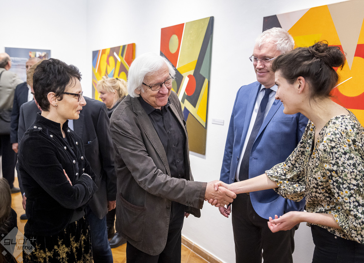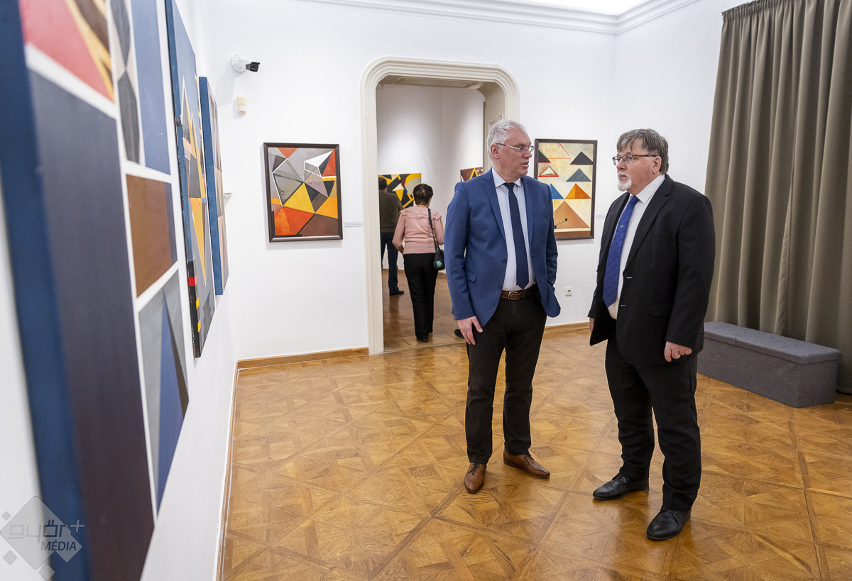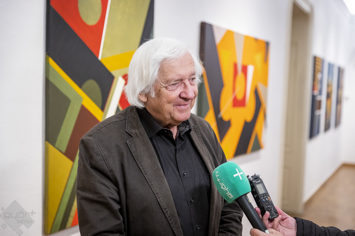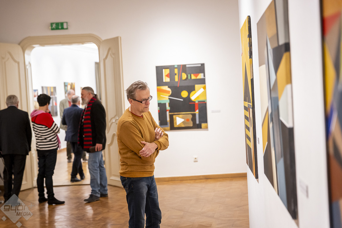 A 75 éves Koppány Attila festőművész elmúlt három évben készített munkáiból, az újgeometria elnevezésű képciklusából nyílt tárlat szombaton este az Esterházy-palotában.