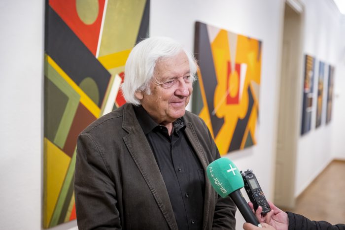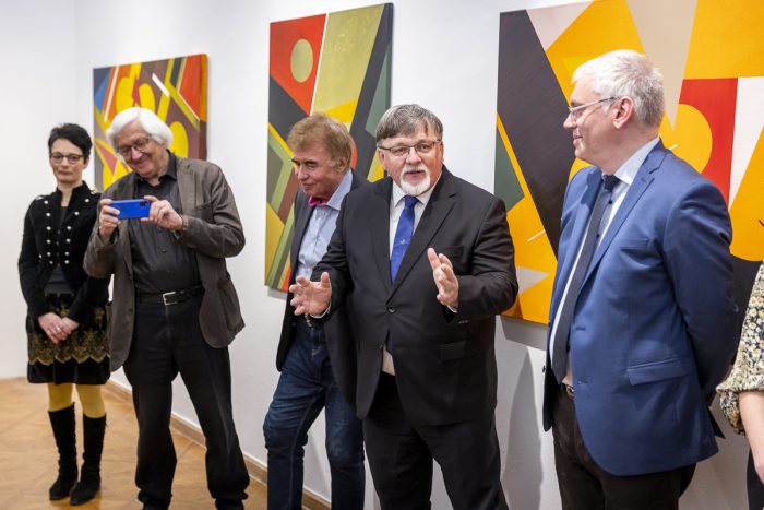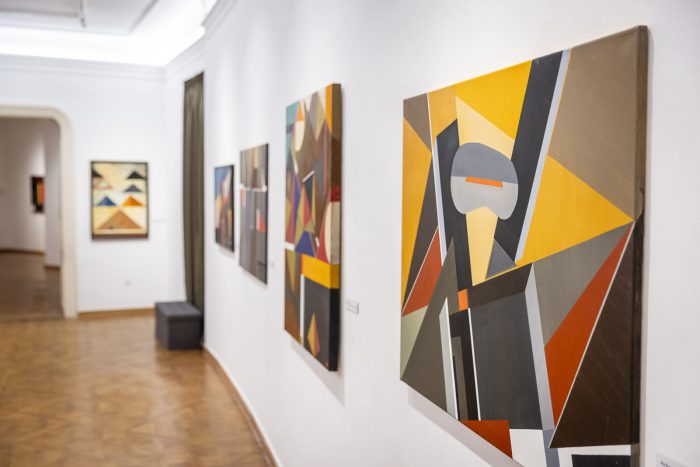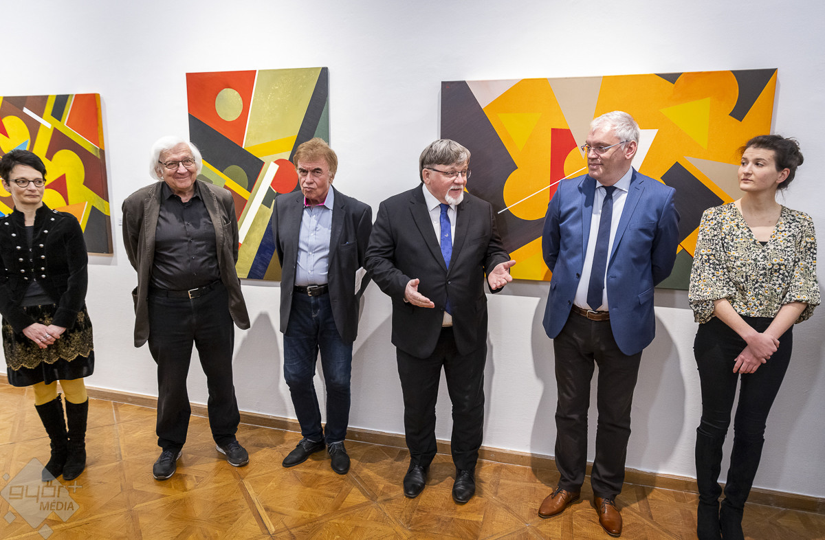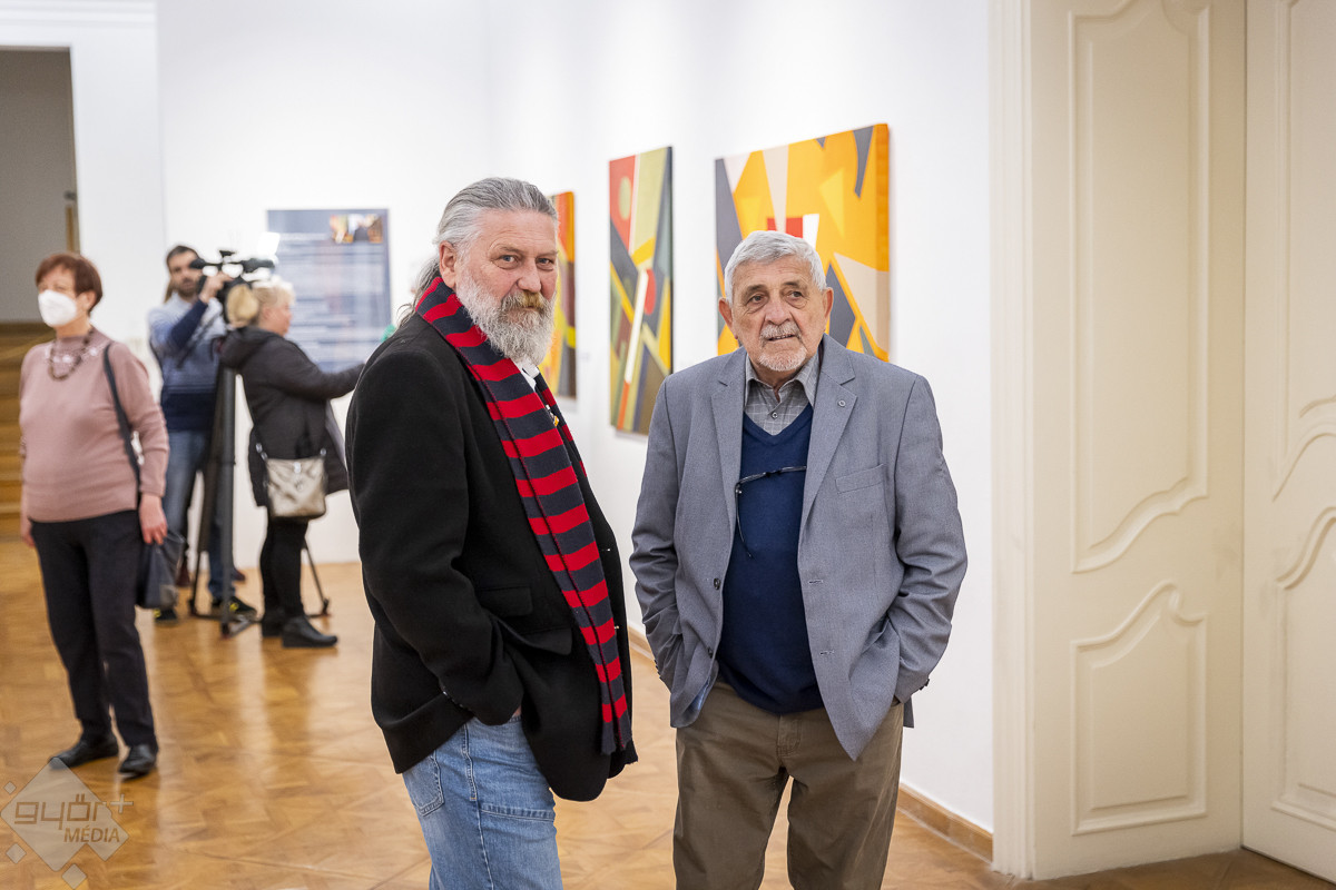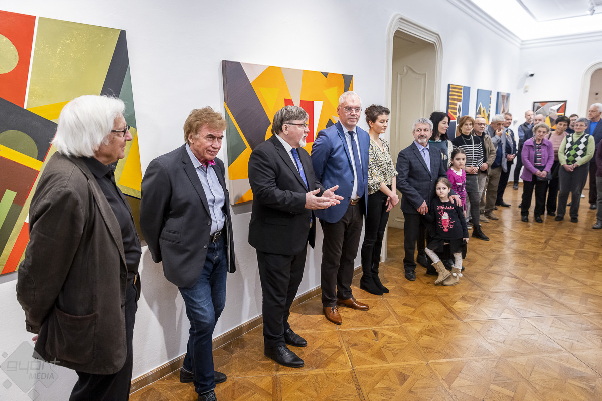 A 75 éves Koppány Attila festőművész elmúlt három évben készített munkáiból, az újgeometria elnevezésű képciklusából nyílt tárlat szombaton este az Esterházy-palotában.