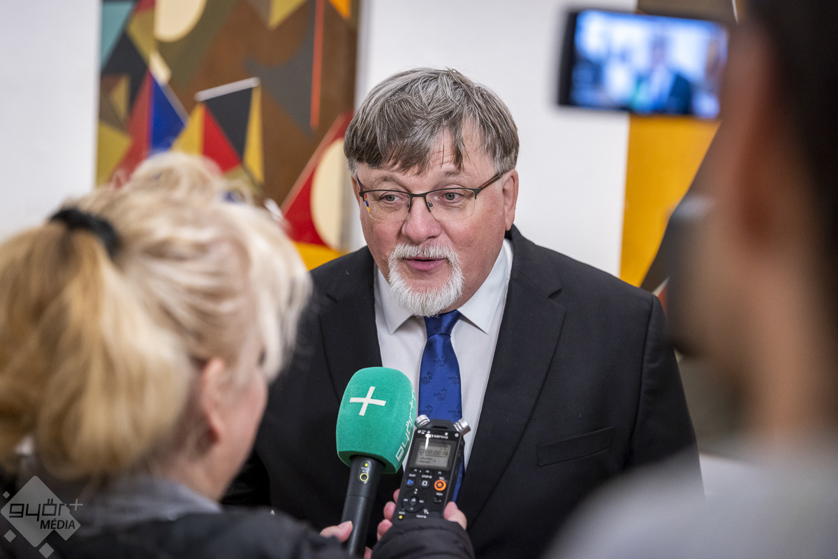 Dr. Dézsi Csaba András polgármester köszöntőjében elárulta, néhány évvel ezelőtt Koppány Attila elsőként kapott olyan különleges dróthálót, sztentet a szívébe, amely speciálisan felszívódó volt. Eredményes munkát végeztek, hiszen a szíve azóta is jól működik, ezt az is jelzi, hogy egyedi, kiváló és gyönyörű alkotásokat mutat be. „Koppány Attila kilép abból a keretből, amely a geometrikus festészetet jelenti, érdekes a színvilága is. Azért érdekesek a munkái, mert mindenki belegondolhatja azt, amit szeretne, amilyen az egyénisége, kinek, milyen a személyisége, annyira változatos számára a kiállítás. Örvendetes, hogy Munkácsy nagyszabású kiállítása után látható Koppány Attila tárlata, ami nekünk, győrieknek nagyon fontos, hiszen helyi alkotó legújabb munkáit ismerhetjük meg. ”– emelte ki a polgármester.