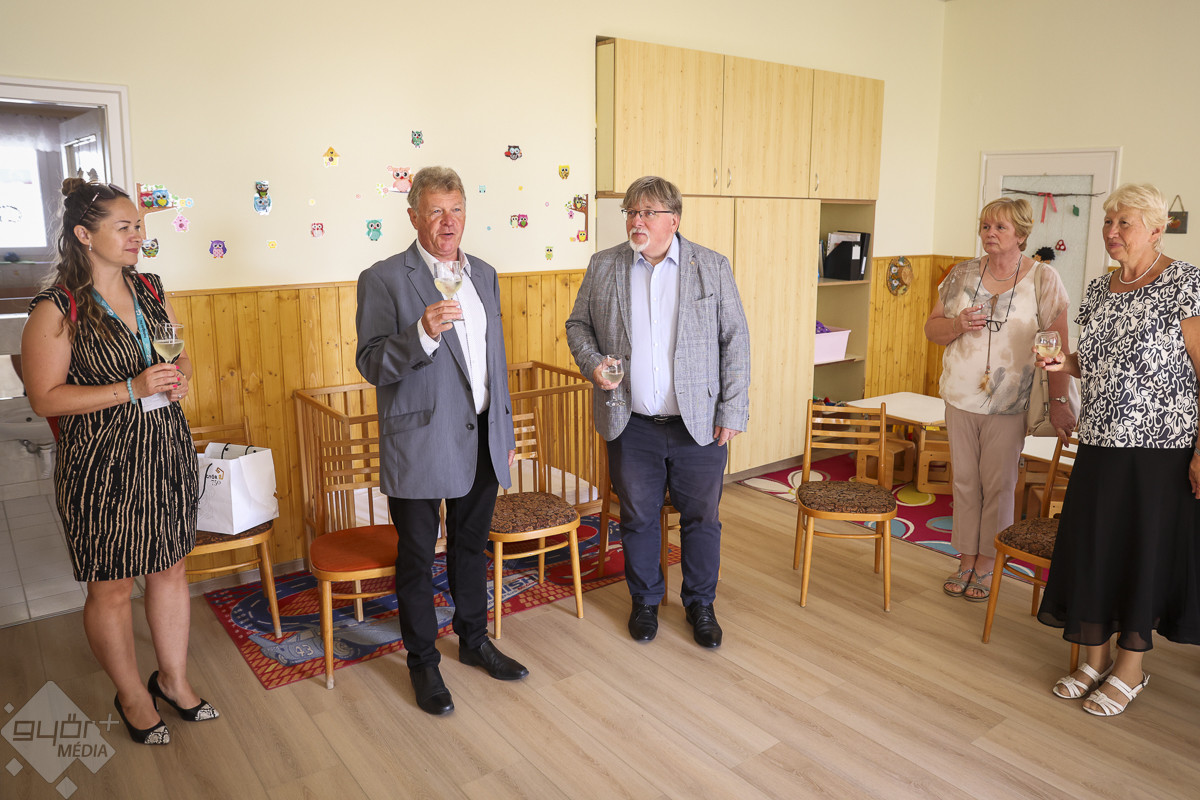 Dr. Sík Sándor a körzet képviselője beszédében arról szólt: a felújítások sorát a Móricz Zsigmond Általános Iskolával kezdték, ezt követte a Körtéri, majd a Sugár úti óvoda, most pedig a bölcsőde. A gyerekek a jövő letéteményesei, ezért alapvető, hogy minőségi környezetben nevelkedjenek. Ráadásul a betelepülések, utcanyitások, építkezések következtében nő a családok száma, s ma már több mint tízezren élnek Győrszentivánon. A bölcsőde korszerűsítése azért is lényeges, hogy a legkisebbek is egészséges helyen tölthessék napjaikat. Ezt a célt szolgálták az elvégzett munkafolyamatok a szigeteléstől a vizesblokkok megújításáig. – hangsúlyozta dr. Sík Sándor, aki képviselői keretéből egy öltözőszekrény-rendszert vásárolt az intézménynek.