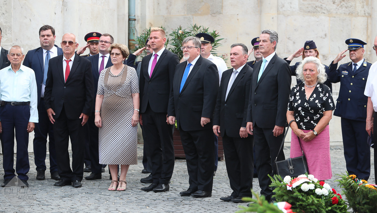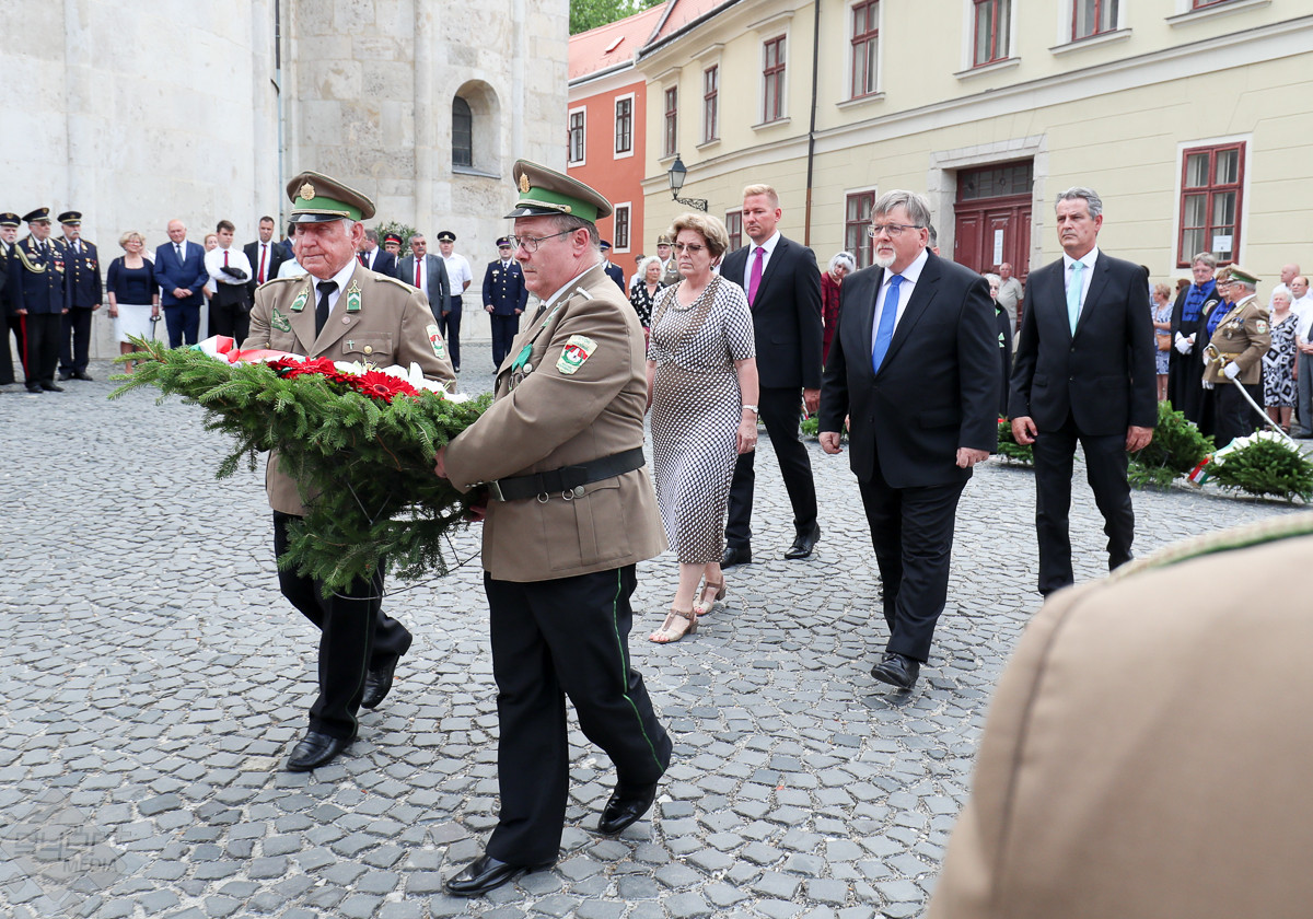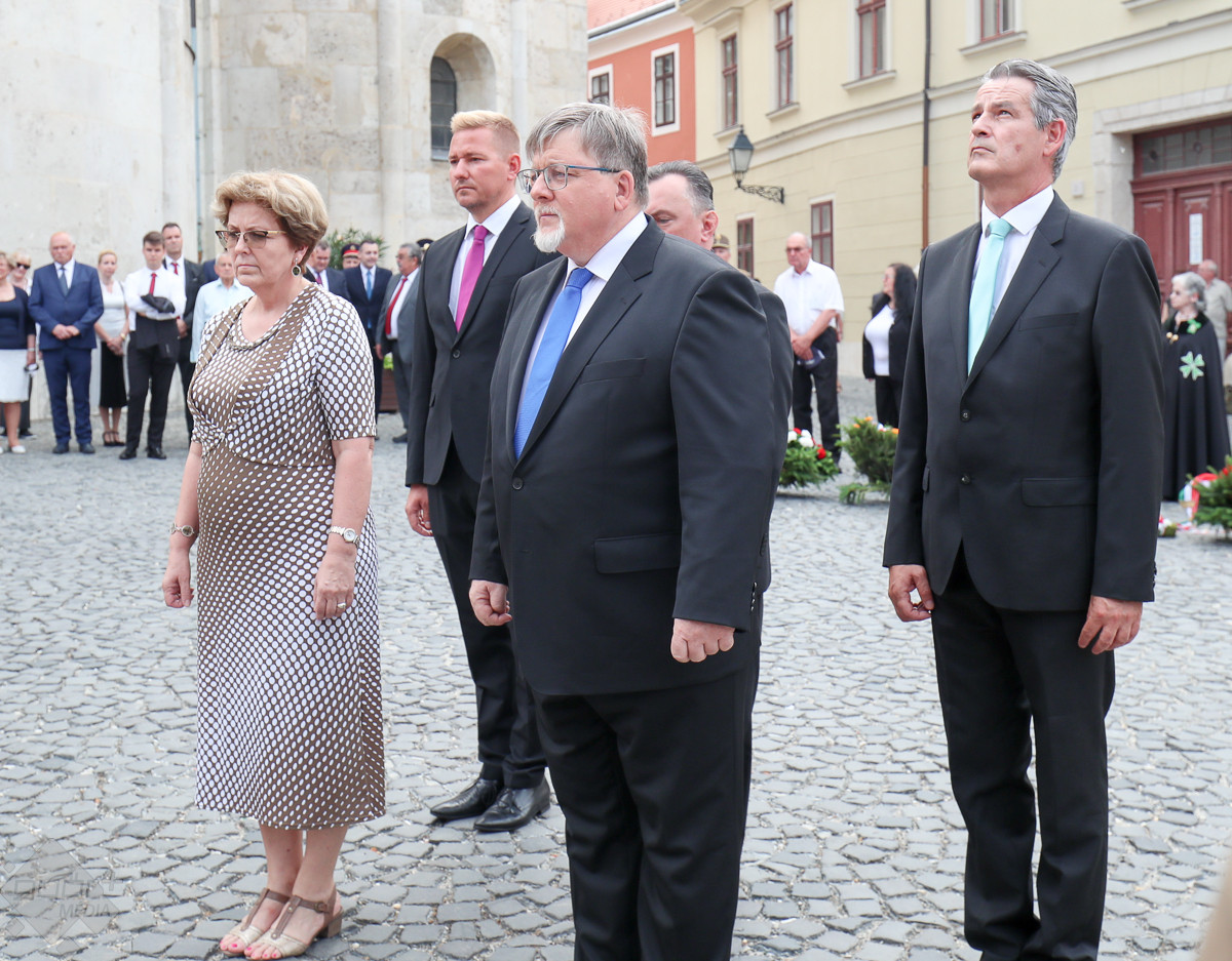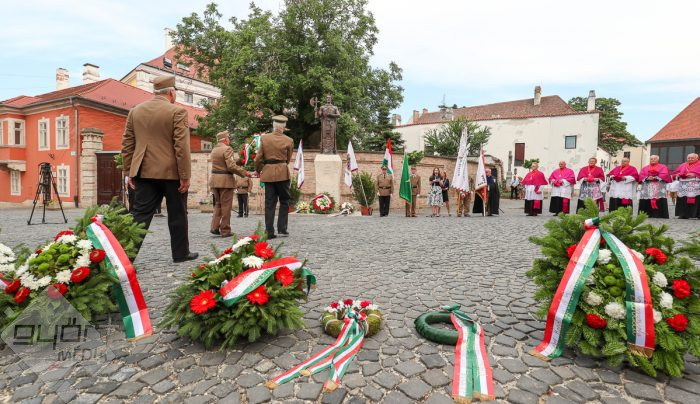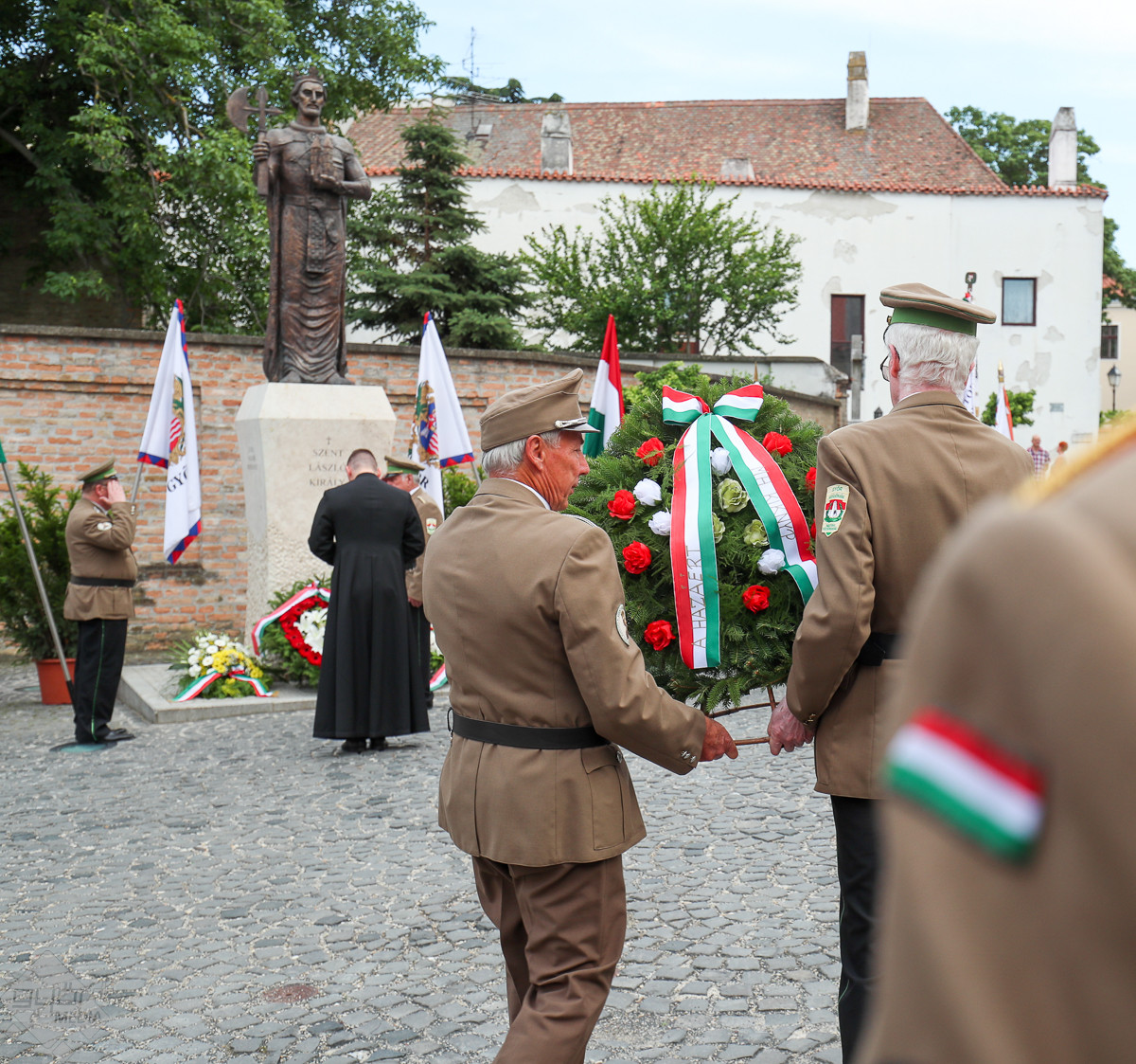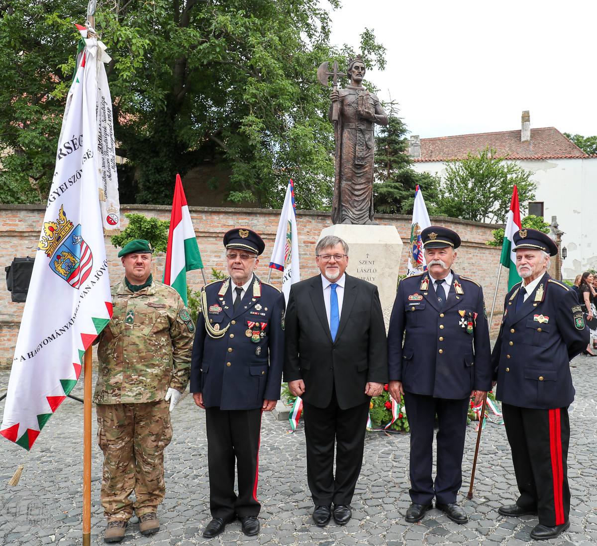 „Most, száz évvel a trianoni döntés után is jól láthatóak nemzetünk összetartozásának építőkockái. A közös történelem, a közös kultúra, a közös emlékezet. A magyarság az, ami eggyé tesz minket határoktól függetlenül, és többek között Szent László szellemisége is” – fogalmazott beszédében Dr. Dézsi Csaba András. A polgármester elmondta, ajándék és egyben felelősség is az, amit Szent László hermájával kaptunk, hiszen győriként az ő öröksége mentén kell építkeznünk. A lovagkirályról elmondta, a nehéz időkben a megfutamodás helyett odaállt, és tette a dolgát. Tette azt, amit a szíve és az esze diktált, tartást adott a magyaroknak, felemelte a nemzetet. Komoly felelősséget és szép feladatot hagyott az utókorra.