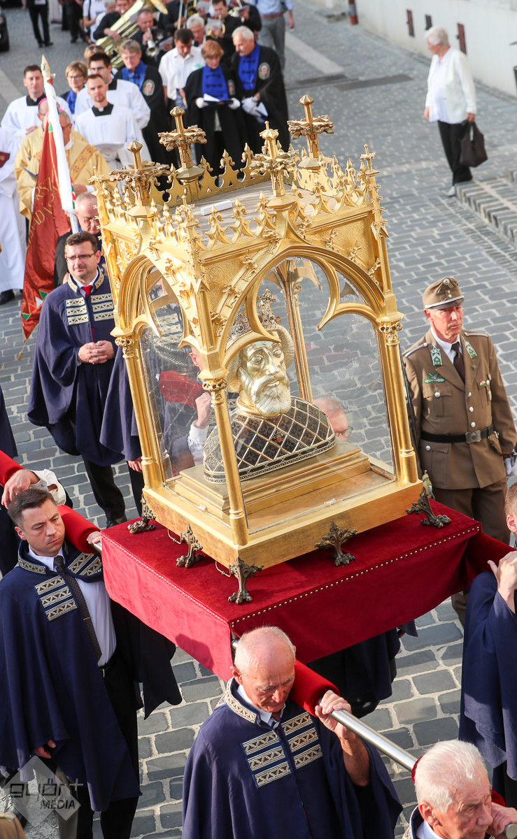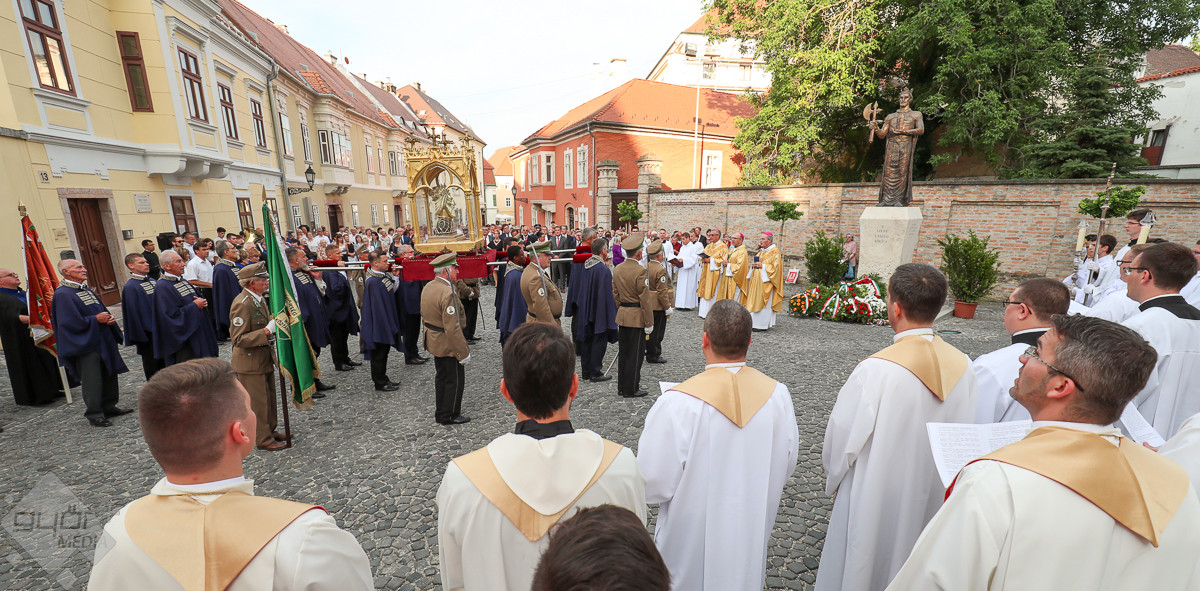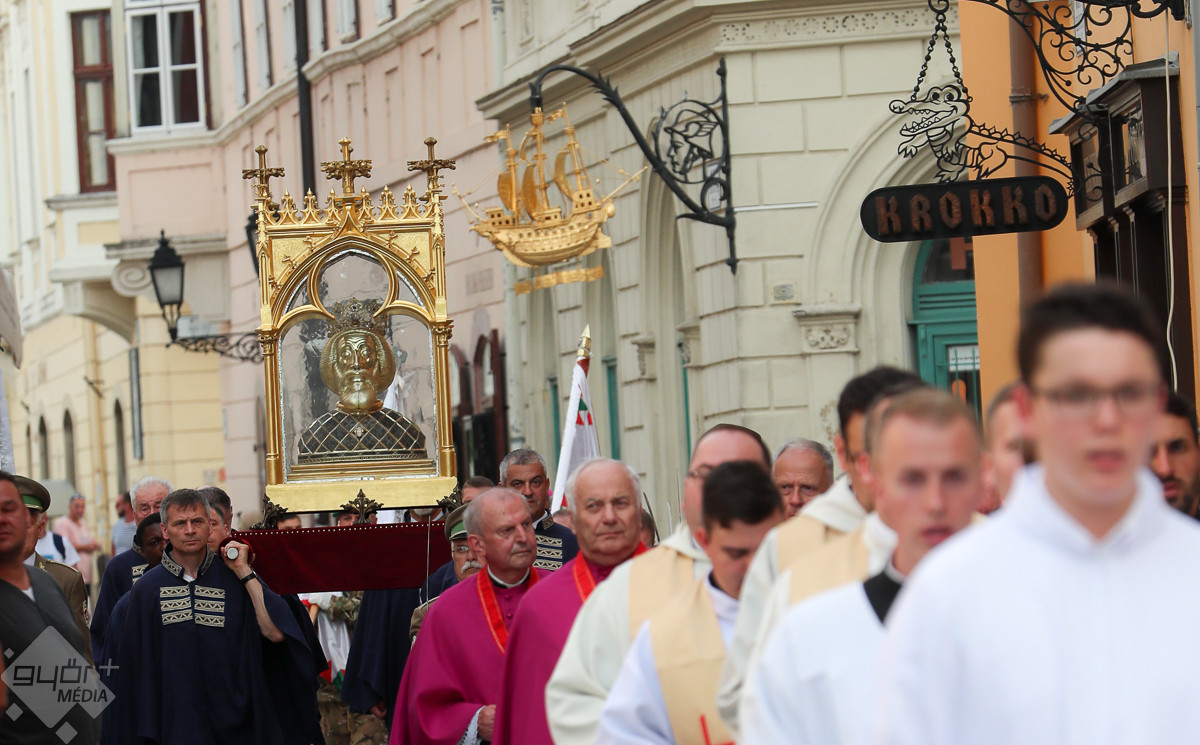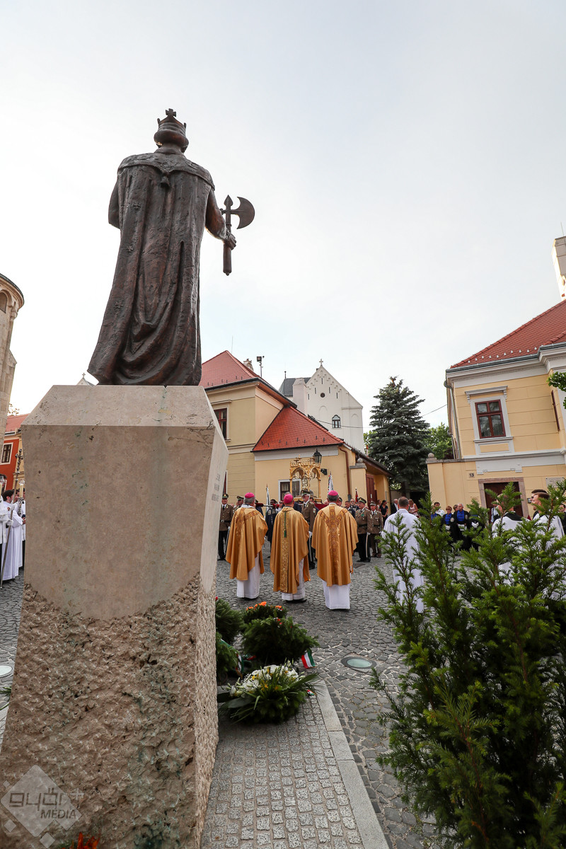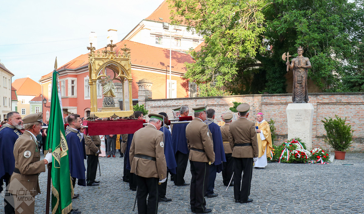 A Szent László nap programjai a Káptalandombon folytatódtak, ahol 17:30-kor megkoszorúzták Szent László király szobrát, 18:00 órakor pedig szabadtéri ünnepi szentmise következett, melynek főcelebránsa Marton Zsolt váci megyéspüspök volt. A fogadalmi körmenetet 19:00 órától dr. Veres András győri megyéspüspök vezette. A körmenet útvonala: Káptalandomb – Bécsi kapu tér – Király utca – Dr. Kovács Pál utca – Jedlik Ányos utca – Gutenberg tér – Káptalandomb.”