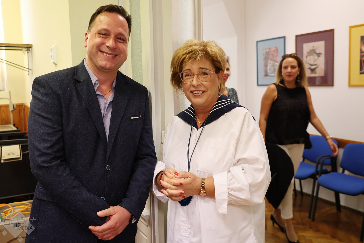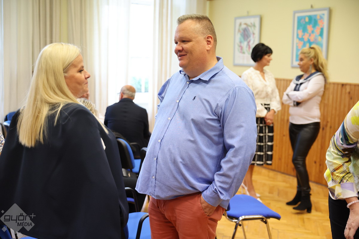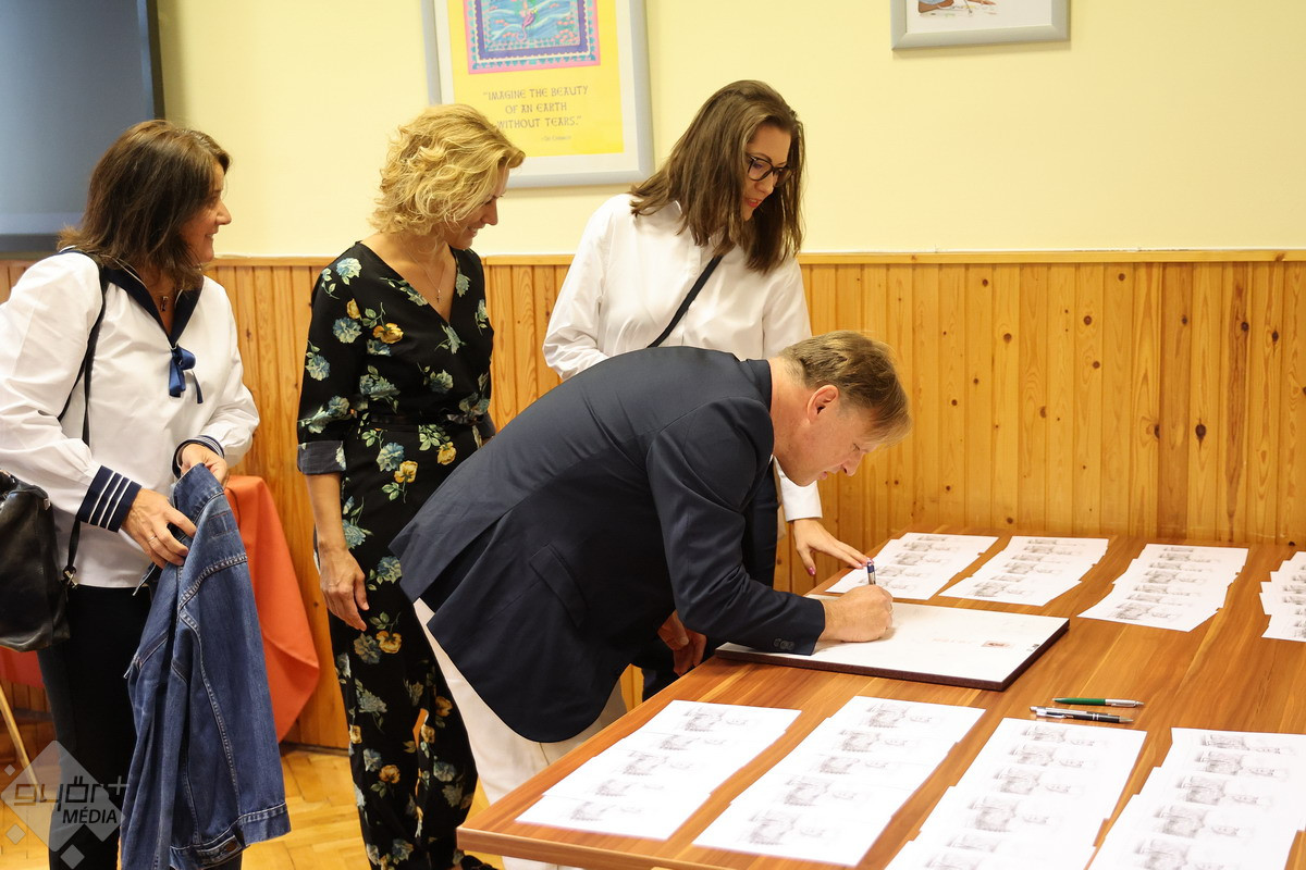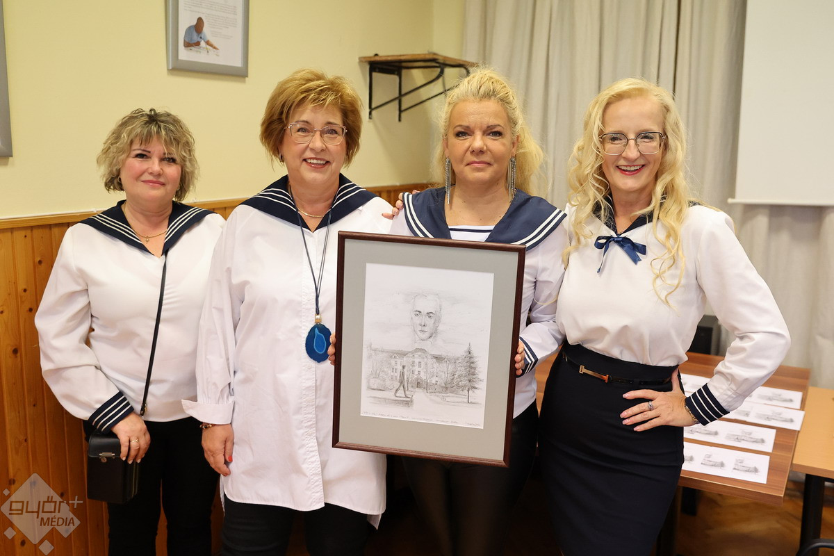 Ajándék is előkerült a találkozón, Kis Péter győri grafikusművész alkotását adták át az egykori diákok, aki az iskola épületét rajzolta meg, ami felett a 29 éves Kazinczy portréja lebeg, szimbolizálva azt a szellemi egységet, amit 29 év igazgatósága alatt Tibor képviselt az intézmény élén. Jót, s jól!
