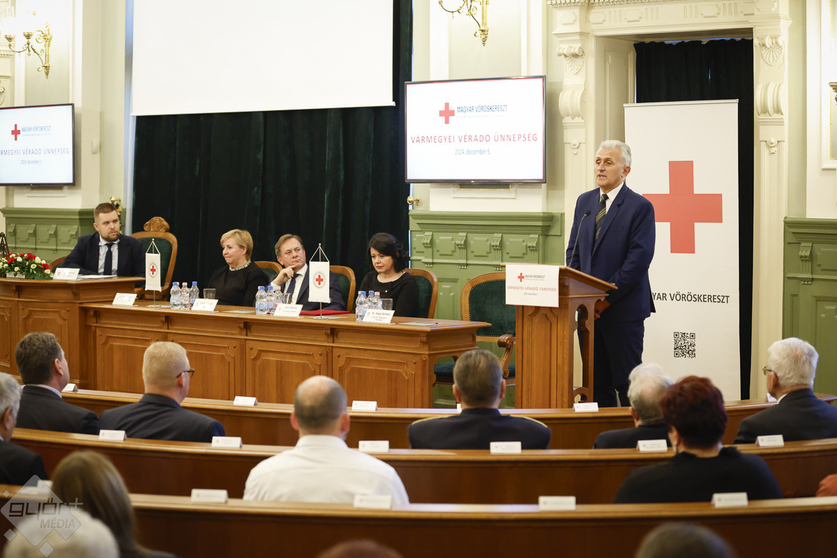 „Mozgalmas és küzdelmes évünk volt. Sok kérdés kavargott bennünk, hogy mi lesz holnap, s az is, hogy mi lesz jövőre?! A béke, vagy valami nagyon rossz vár ránk?! Ám abban mindvégig biztosak voltunk, hogy amíg ilyen emberek léteznek, mint önök, addig vér lesz! Ezt a vármegyét ráadásul külön tisztelet övezi, hiszen mindig sokan adtak, adnak és sokan fognak vért adni! Egyben megragadnám az alkalmat, hogy mindenki figyelmét felhívjam: a karácsonyi ünnepek most 6 munkaszüneti napot jelentenek. Egy adagnyi vér azonban csak 5 napon keresztül használható fel. Így mindenkit arra szeretnék kérni, hogy december 27-én akár a győri, akár a soproni vérellátóba látogasson el és adjon vért, hiszen akiknek szüksége van rá, ők nem maradhatnak vér nélkül. Köszönjük szépen, előre is!” – hívta fel erre a fontos részletre a jelenlévők figyelmét is dr. Nagy Sándor.