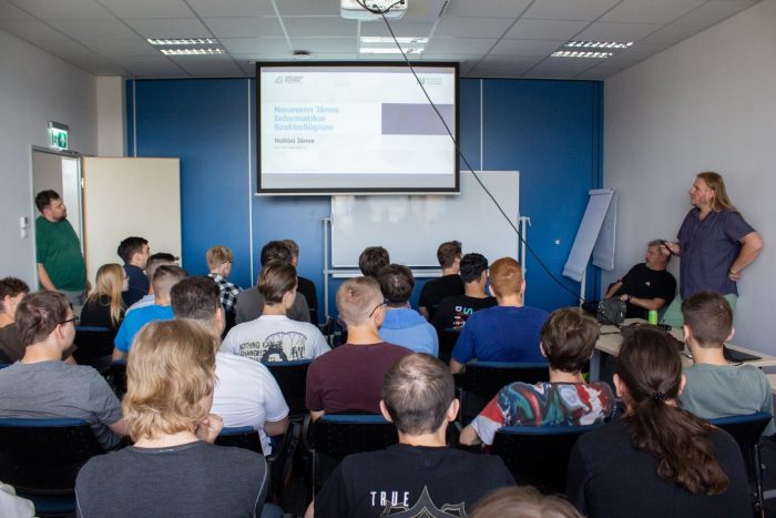 A végzős diákok informatikai rendszerüzemeltető technikus szakon szereznek végzettséget, többségük mérnökinformatikusként képzeli el a jövőjét. A fiatalok a rövid előadás során megismerkedhettek a Széchenyi István Egyetem informatikus képzéseivel. Emellett Hollósi János a Járműipari Kutatóközpont és a Digitális Fejlesztési Központ munkatársaként, valamint a Multidiszciplináris Műszaki Tudományi Doktori Iskola végzős doktorandusazként beszélt az egyetemen futó fontosabb kutatási projektekről, többek között az autonóm vezetési, illetve drónfejlesztéssel kapcsolatos lehetőségekről is. Természetesen a Neumann János Informatikai Szakkollégium bemutatása sem maradt el: szóba kerültek a szakkollégium nyújtotta előnyök és szakmai fejlődési lehetőségek egyaránt. A program végül szokásosan egy laborlátogatásokkal megtűzdelt campus körsétával zárult.