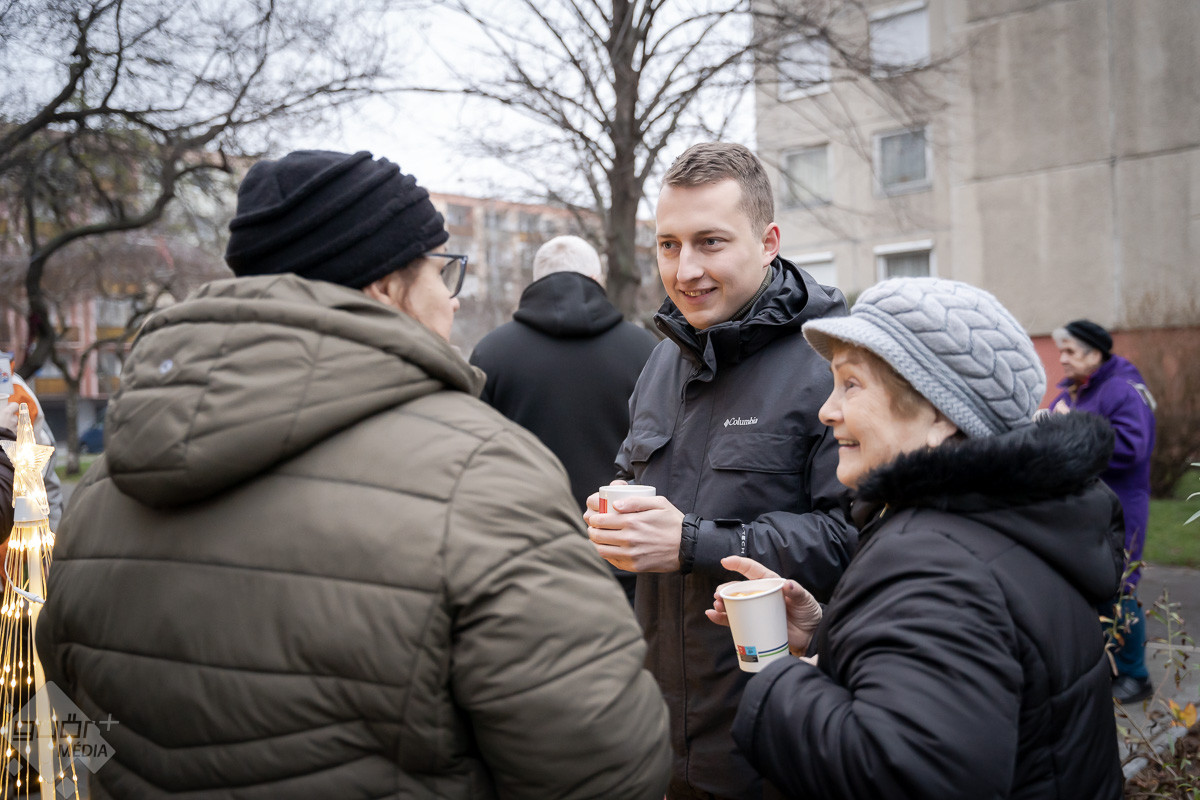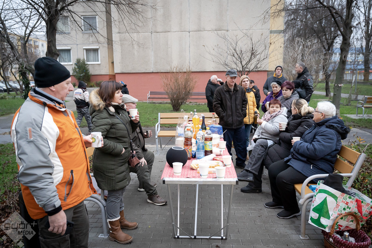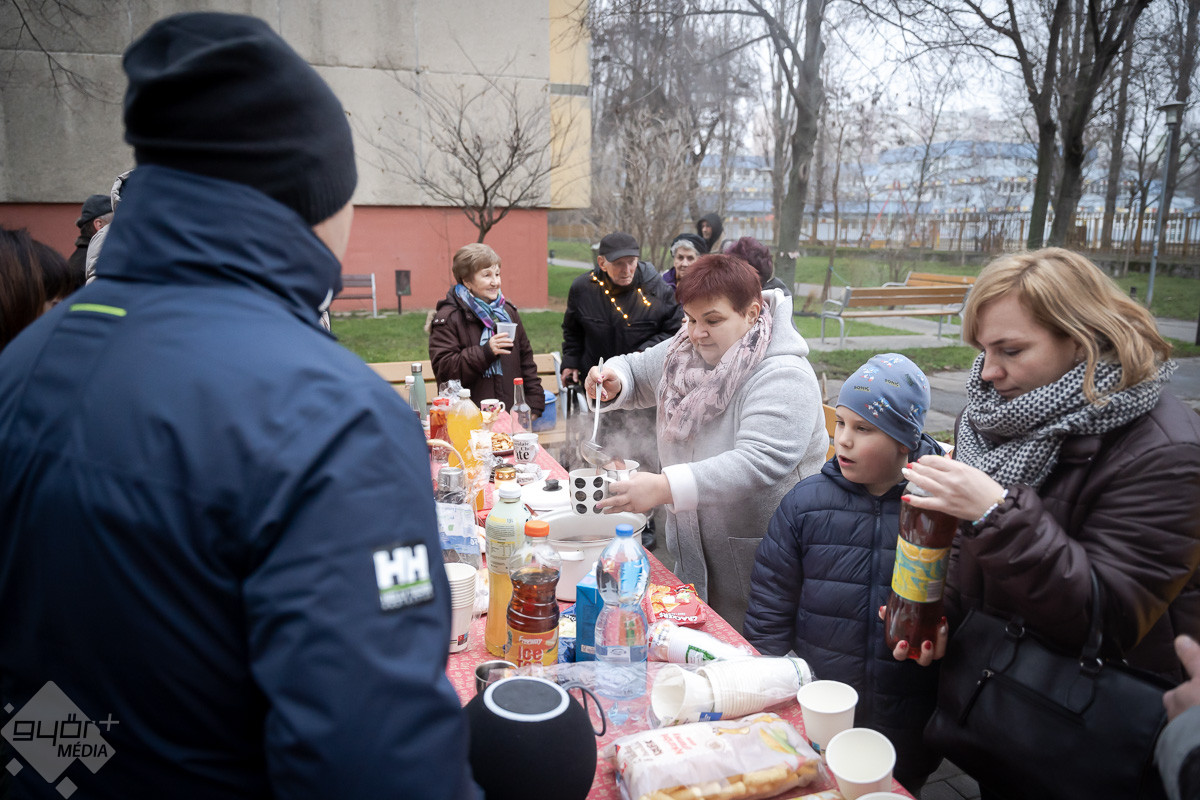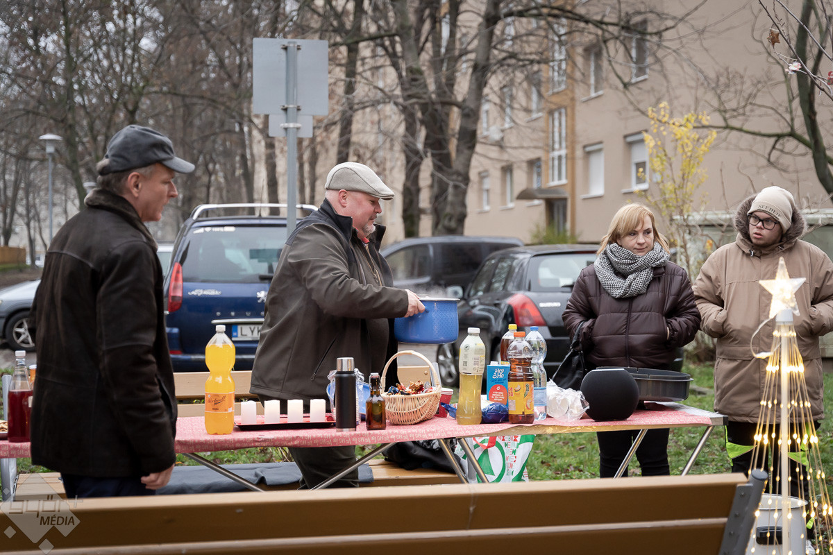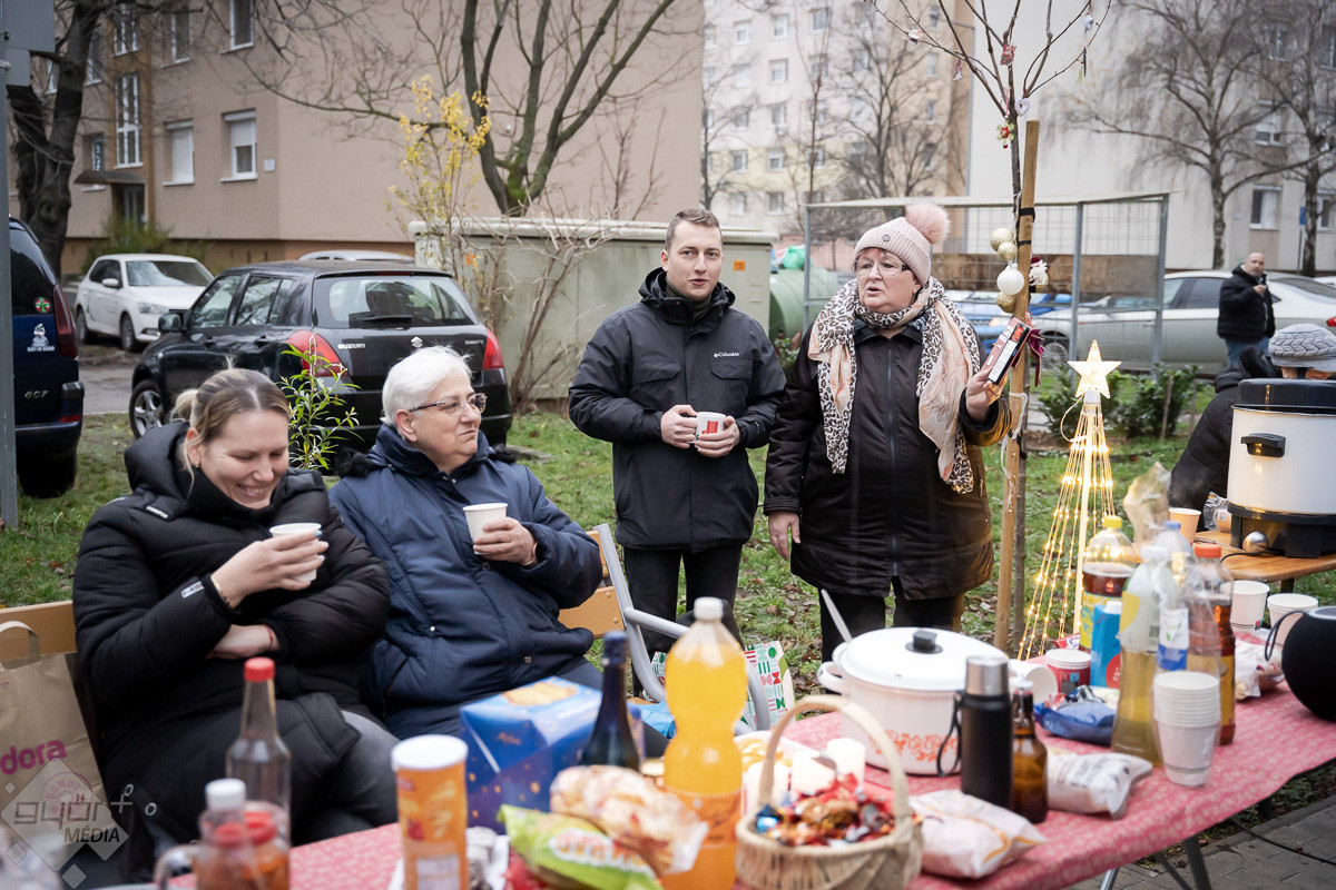 „Most lényegében elmondhatjuk, hogy ez már ebben az évben a negyedik olyan alkalom, amikor itt ez a közösség összegyűl, és a harmadik olyan, amin én is itt vagyok. Ez a közösségépítő tündérek csoportja, akik szervezik Fülöpné Ica nénivel, Beck Tündivel, akik itt laknak a két házban. Egy jó közösség van itt. Elkezdték a Húsvéttal, aztán utána a következő volt egy Halloween rendezvény, azon is sokan voltak, majd a Mikulás és most a karácsonyváró szeretetvendégség. Mindig jó itt ilyenkor találkozni, beszélgetni a körzet ügyeiről, mindenről, mindennapi olyan ügyekről, amik megfordulnak velük, amik lényegében az ő akár családi körükben előfordul, és akár adott esetben még mi is tudunk segíteni. Ez lényegében a közvetlen kapcsolattartás egy kihelyezett formája. Úgyhogy örülünk neki, hogy itt lehetünk és kicsikét beszélgethetünk és lezárhatjuk az évet. Jövőre pedig folytatjuk.” – mondta el Boncsarovszky Péter.