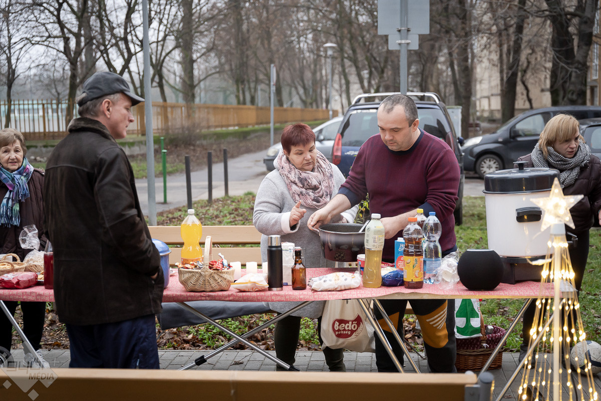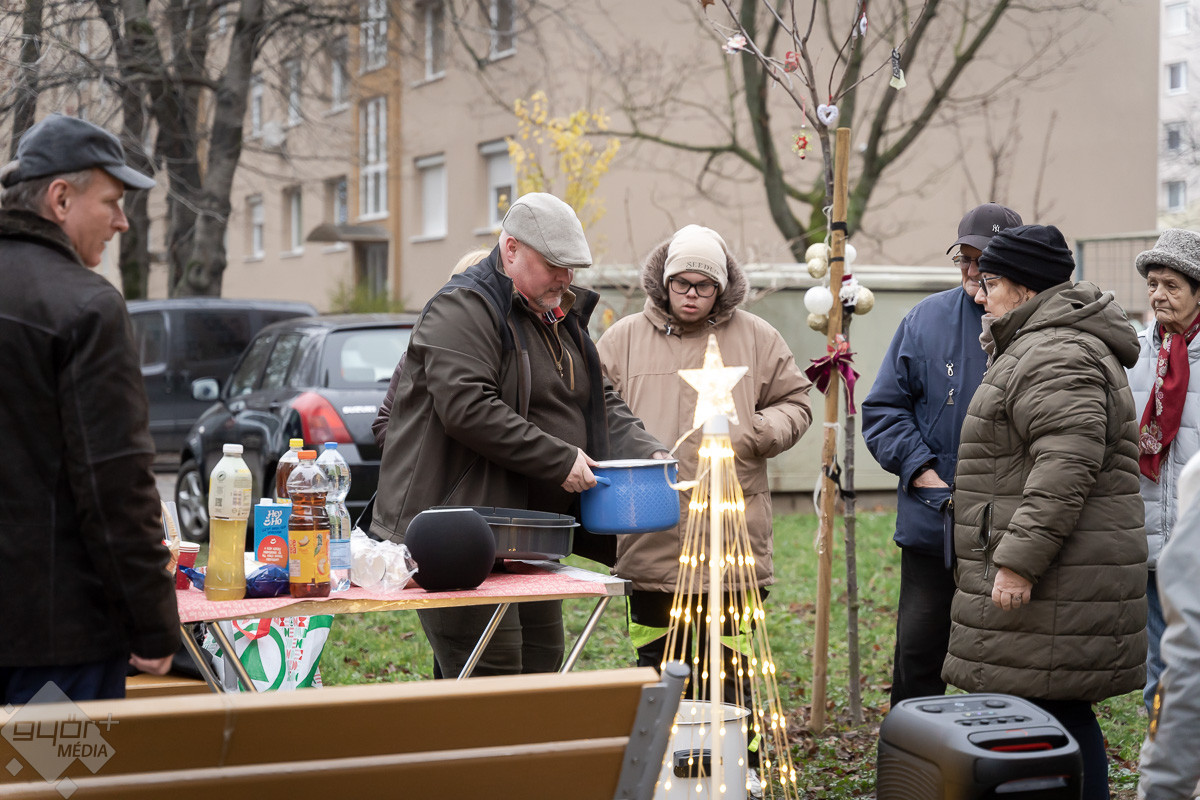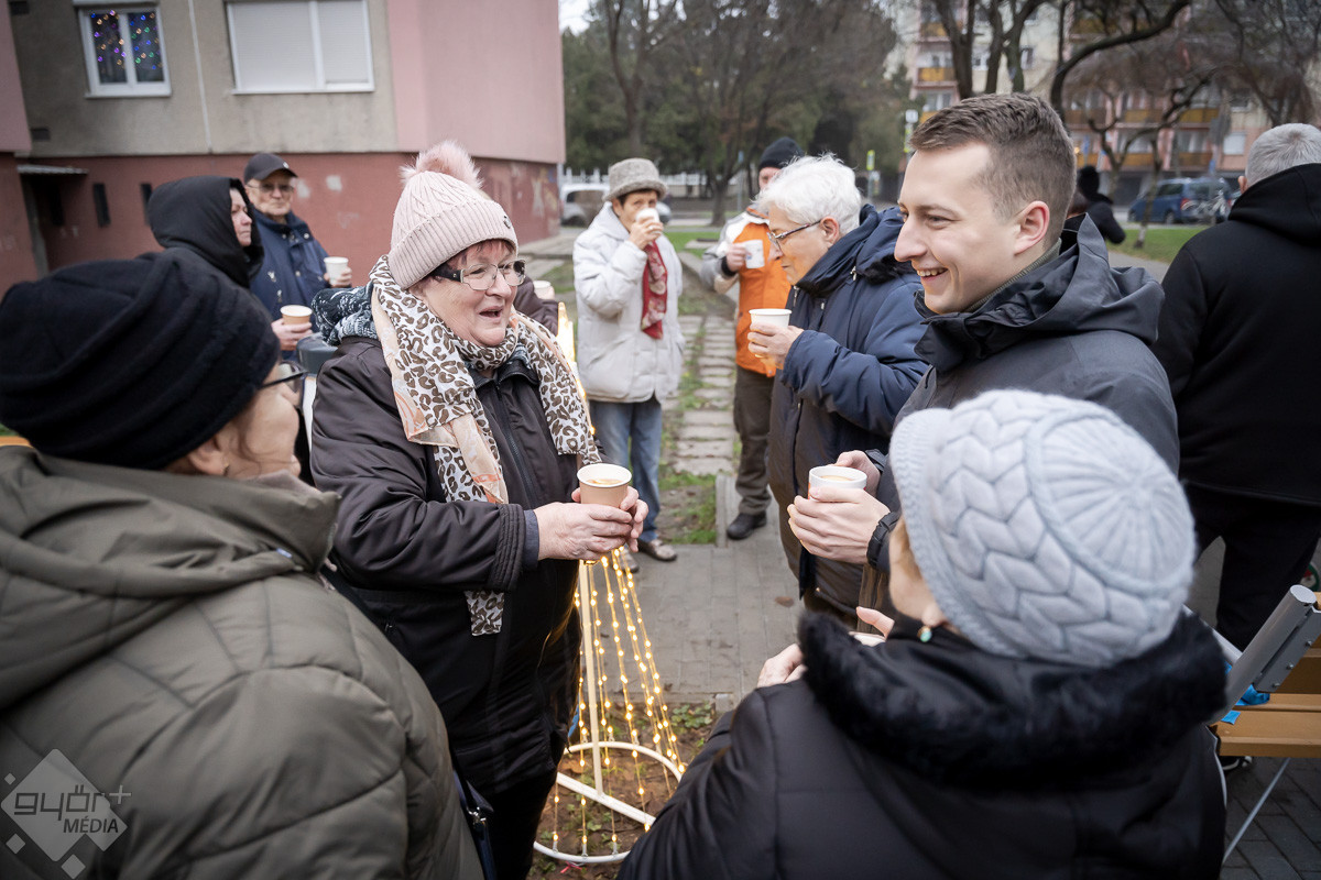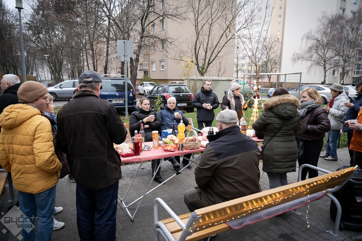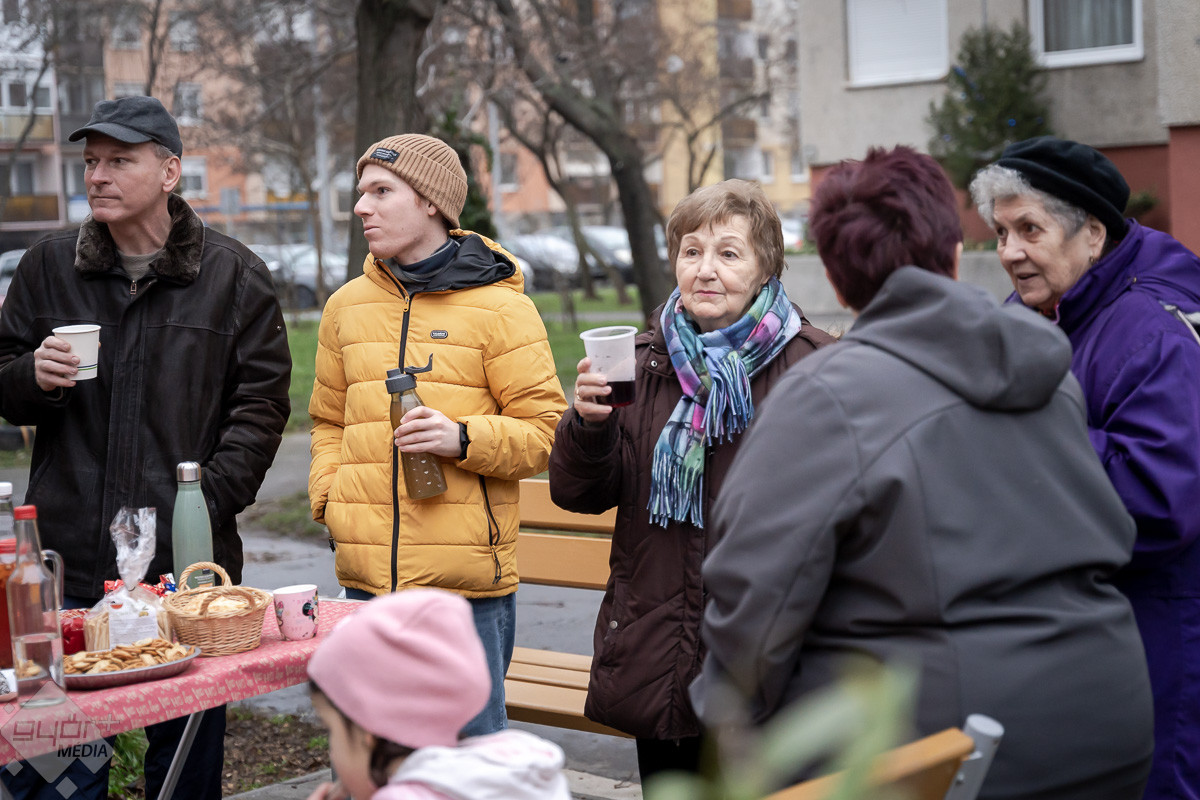 „Most lényegében elmondhatjuk, hogy ez már ebben az évben a negyedik olyan alkalom, amikor itt ez a közösség összegyűl, és a harmadik olyan, amin én is itt vagyok. Ez a közösségépítő tündérek csoportja, akik szervezik Fülöpné Ica nénivel, Beck Tündivel, akik itt laknak a két házban. Egy jó közösség van itt. Elkezdték a Húsvéttal, aztán utána a következő volt egy Halloween rendezvény, azon is sokan voltak, majd a Mikulás és most a karácsonyváró szeretetvendégség. Mindig jó itt ilyenkor találkozni, beszélgetni a körzet ügyeiről, mindenről, mindennapi olyan ügyekről, amik megfordulnak velük, amik lényegében az ő akár családi körükben előfordul, és akár adott esetben még mi is tudunk segíteni. Ez lényegében a közvetlen kapcsolattartás egy kihelyezett formája. Úgyhogy örülünk neki, hogy itt lehetünk és kicsikét beszélgethetünk és lezárhatjuk az évet. Jövőre pedig folytatjuk.” – mondta el Boncsarovszky Péter.