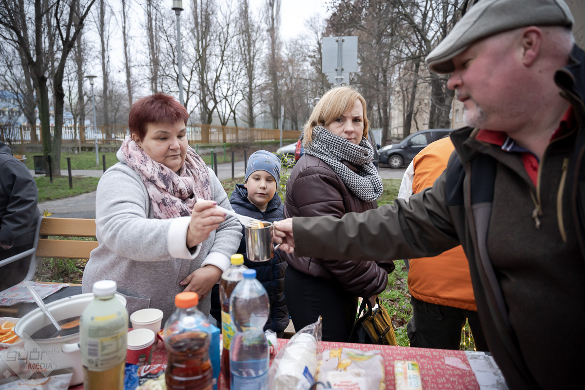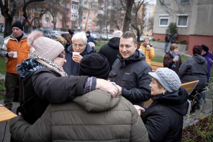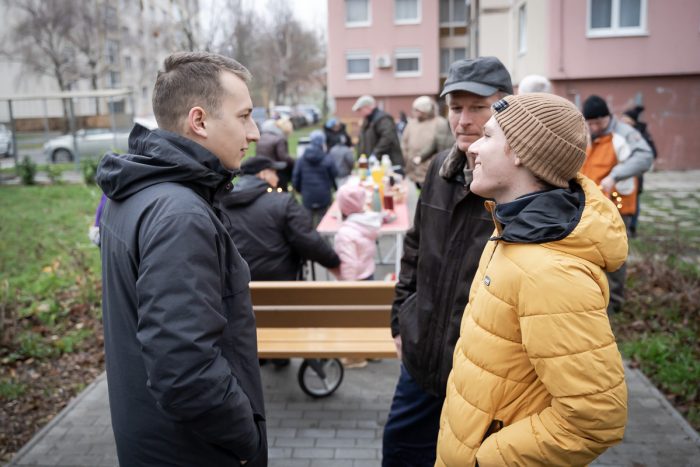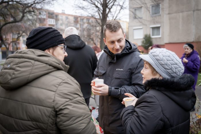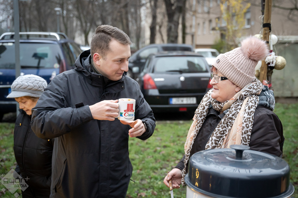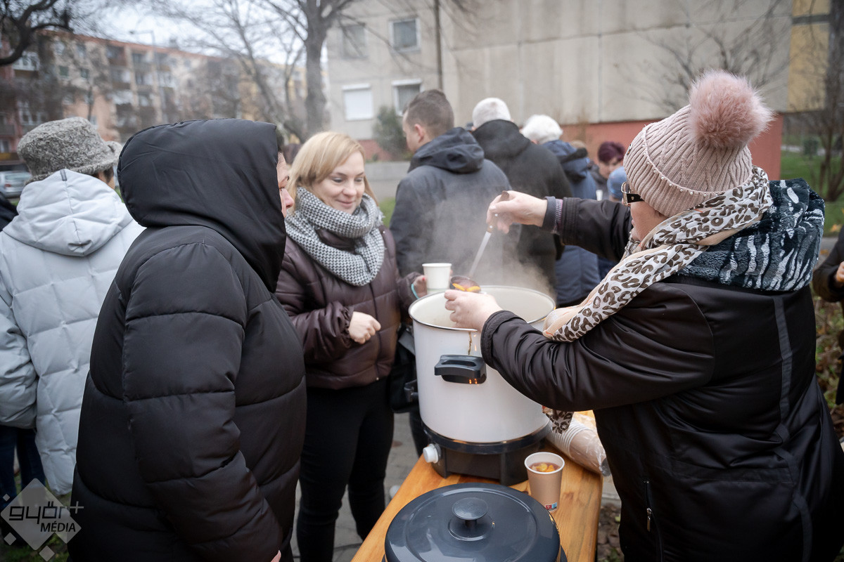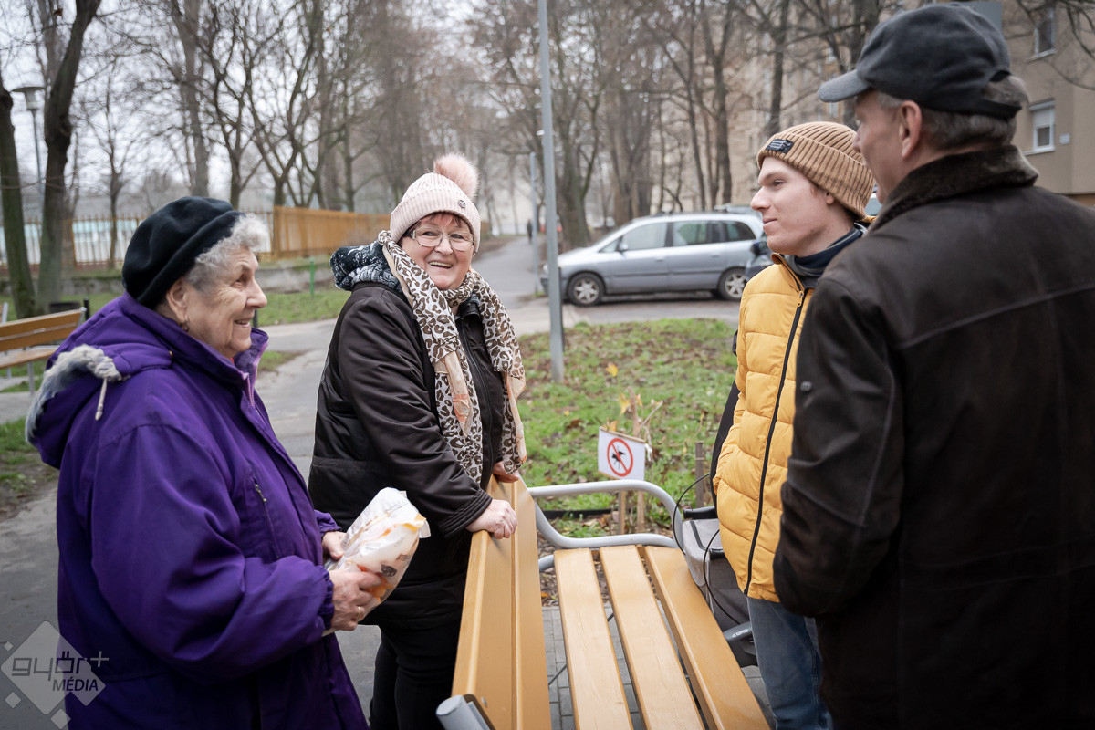 „Most lényegében elmondhatjuk, hogy ez már ebben az évben a negyedik olyan alkalom, amikor itt ez a közösség összegyűl, és a harmadik olyan, amin én is itt vagyok. Ez a közösségépítő tündérek csoportja, akik szervezik Fülöpné Ica nénivel, Beck Tündivel, akik itt laknak a két házban. Egy jó közösség van itt. Elkezdték a Húsvéttal, aztán utána a következő volt egy Halloween rendezvény, azon is sokan voltak, majd a Mikulás és most a karácsonyváró szeretetvendégség. Mindig jó itt ilyenkor találkozni, beszélgetni a körzet ügyeiről, mindenről, mindennapi olyan ügyekről, amik megfordulnak velük, amik lényegében az ő akár családi körükben előfordul, és akár adott esetben még mi is tudunk segíteni. Ez lényegében a közvetlen kapcsolattartás egy kihelyezett formája. Úgyhogy örülünk neki, hogy itt lehetünk és kicsikét beszélgethetünk és lezárhatjuk az évet. Jövőre pedig folytatjuk.” – mondta el Boncsarovszky Péter.