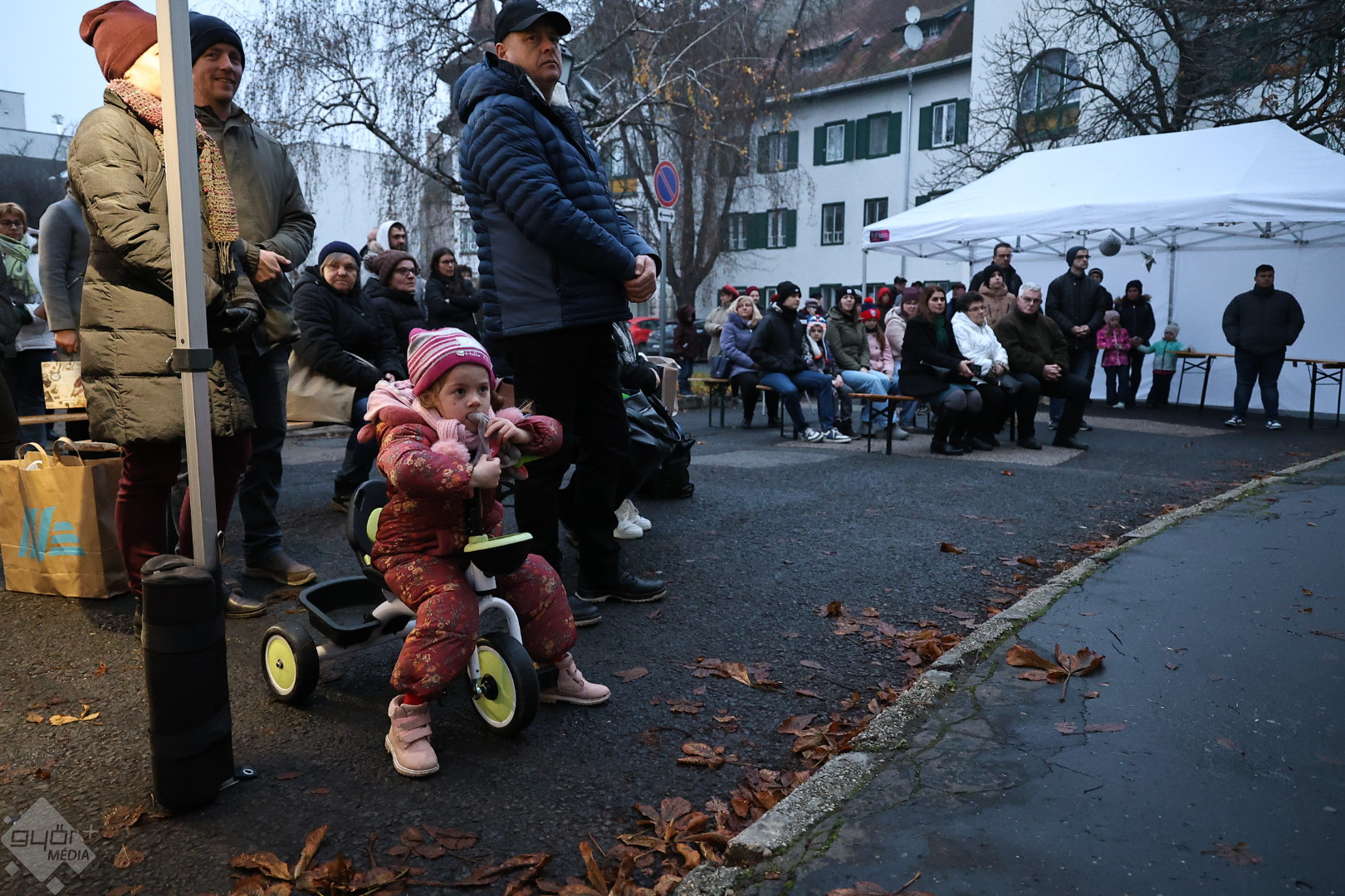 „A tavalyi évhez hasonlóan idén is egy közös karácsonyfa díszítéssel jöttünk össze, hogy kedves műsorokkal, közös élményekkel hangolódjunk a közelgő karácsonyi ünnepre. Öröm számomra látni, hogy a kicsik és a nagyok együtt jöttek el. Mosolygós gyermekek, szülők, nagyszülők töltik meg ezt a teret. Köszönöm, hogy ilyen sokan eljöttetek, hogy együtt ünnepeljük a karácsony közeledtét, és hogy közösen teremtsünk meghitt, szeretetteljes pillanatokat. Már ötödik éve ragyognak fel advent idején a gyárvárosi Élő Kalendárium ablakai örömet és reményt hozva városrészünk mindennapjaiba.” – mondta köszöntőjében Huszár Gábor a körzet önkormányzati képviselője.