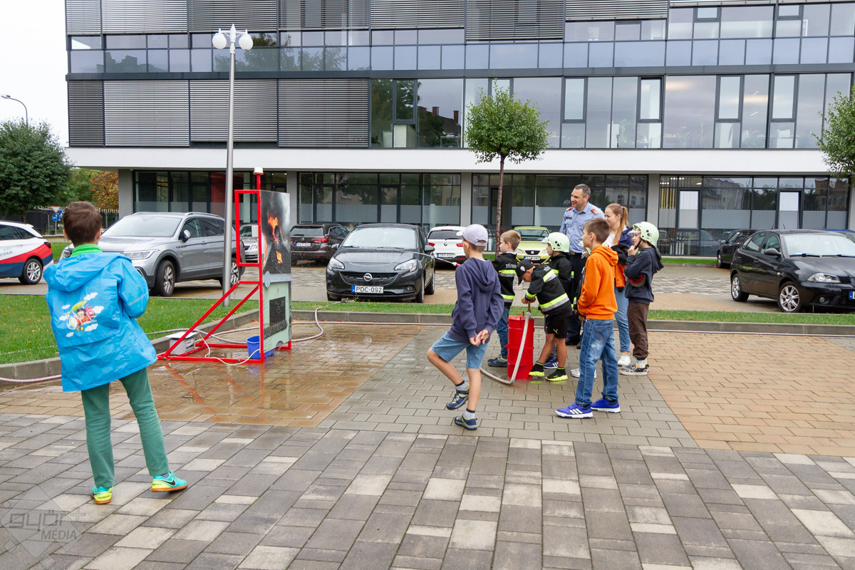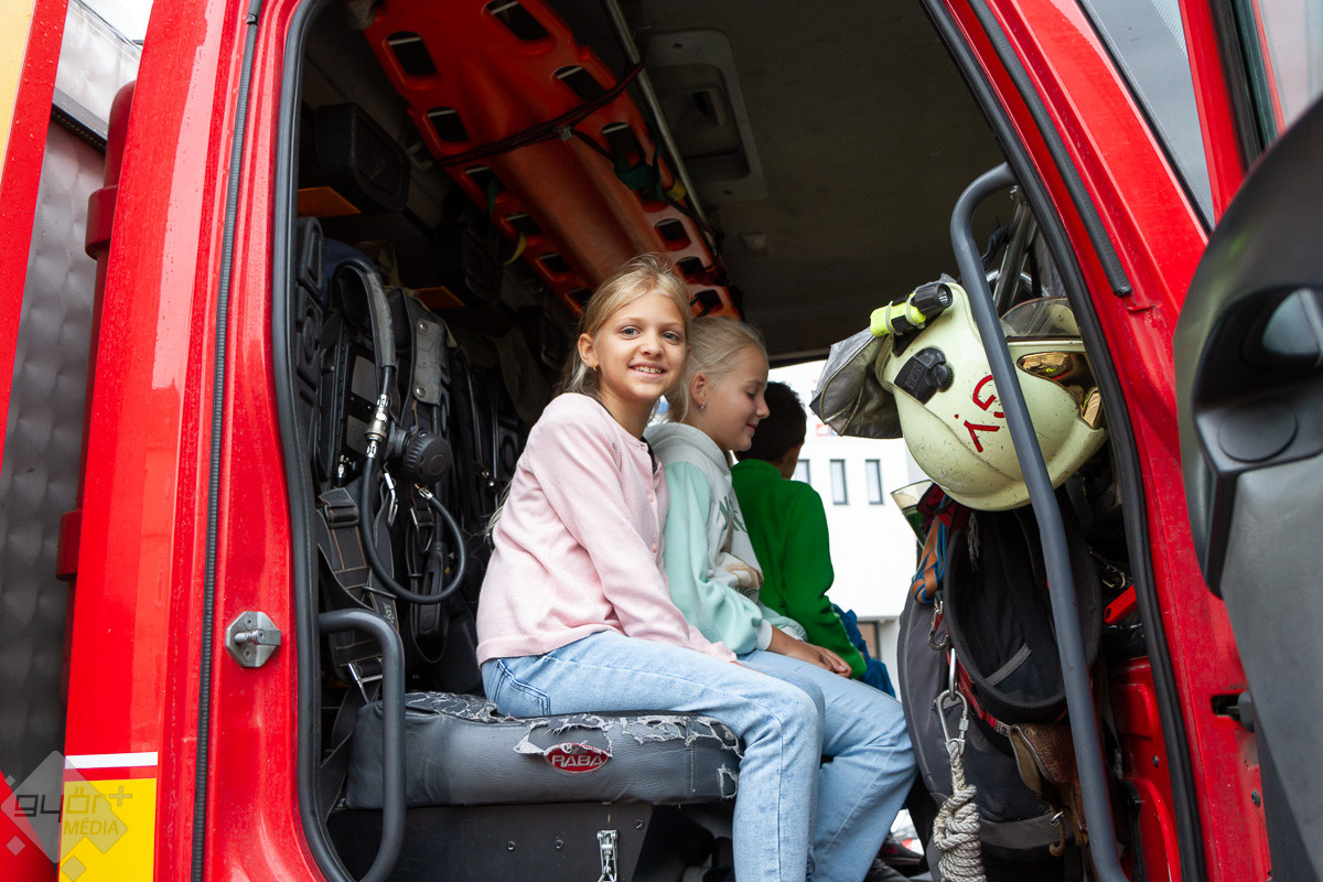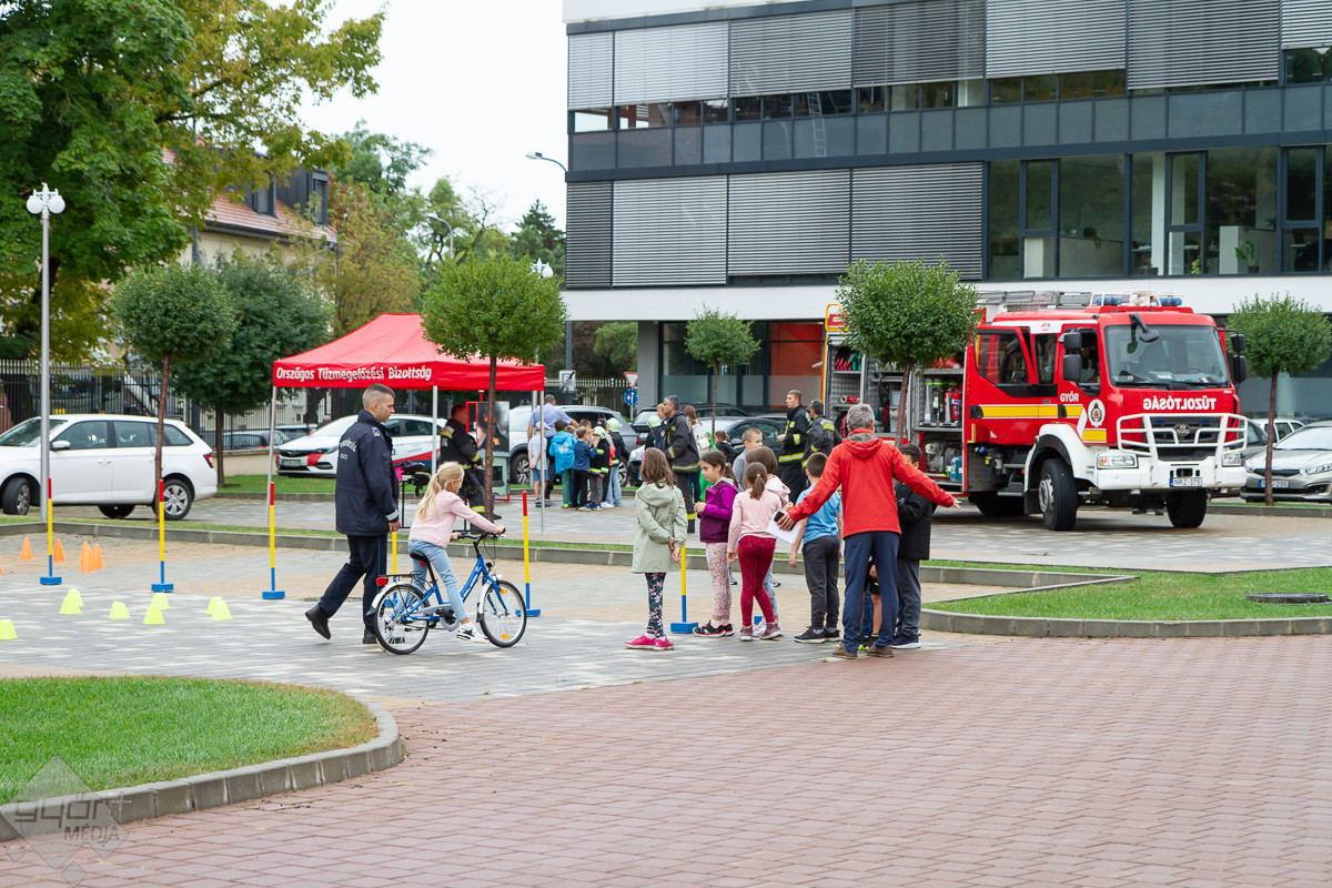 A gyerekek a vármegyei katasztrófavédelem jóvoltából kipróbálhatták, milyen tüzet oltani, beöltözhettek az egyenruhába és a tűzoltó autóba is beülhettek. A benti térben pedig interaktív, játékos feladatok várták őket, melyek célja, hogy a kicsik mielőbb megismerjék a helyes, balesetmentes közlekedést. “A mottónk: “Baleset megelőzés gyermekkortól az időskorig”- ezért elkezdünk foglalkozni egészen óvodás kortól a kicsikkel, a kollégák mennek ki előadásokat tartani és úgy látjuk, hogy az elmúlt években, évtizedekben javult a tendencia, vagyis nem történik annyi gyermekbaleset. Akik például kimennek kerékpárral, egy jól felszerelt biciklivel mennek ki és a láthatóságra is figyelnek, ezzel pedig elérjük legalább azt a célt, hogy nem történik sérülés.” – emelte ki Rosta Roland.