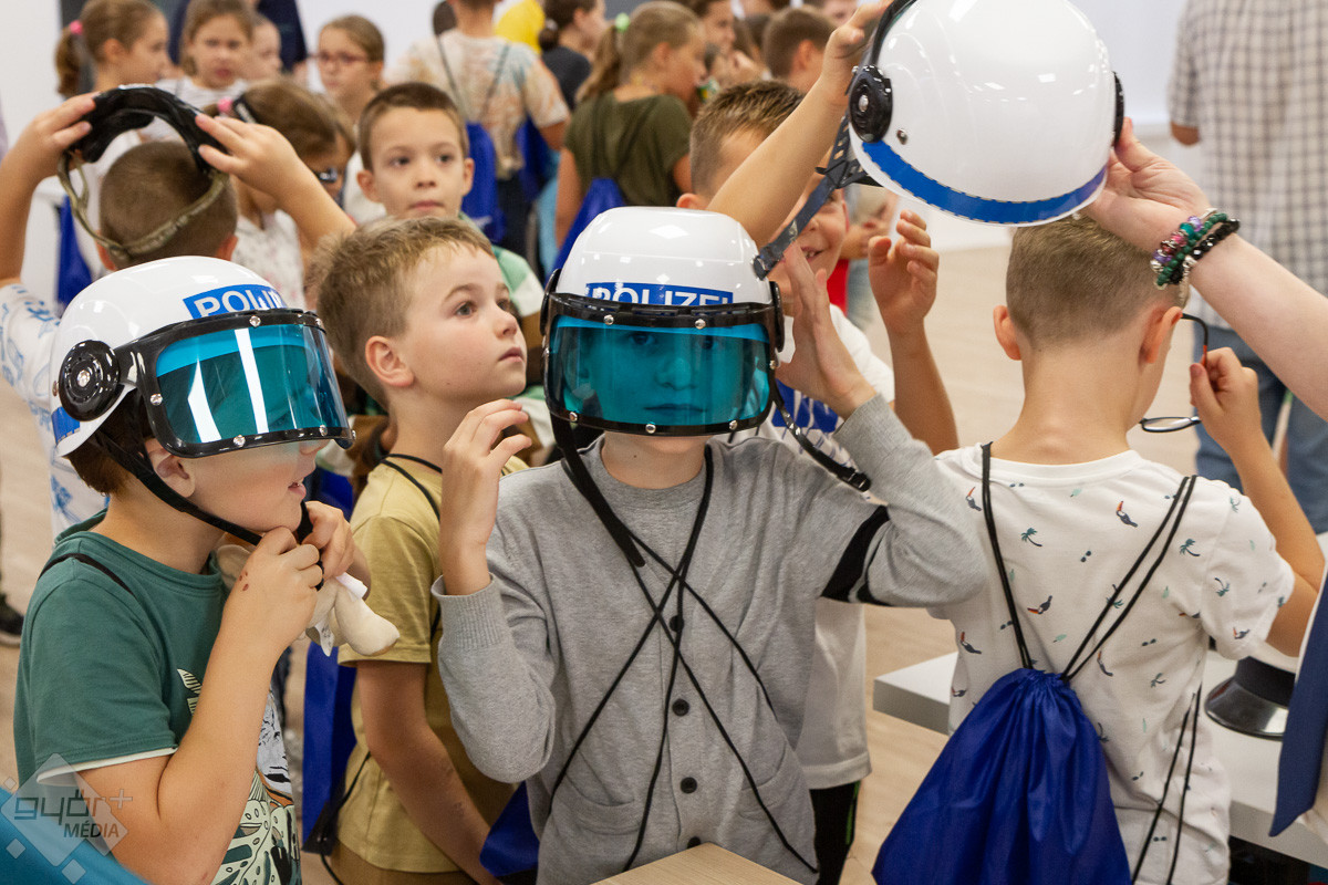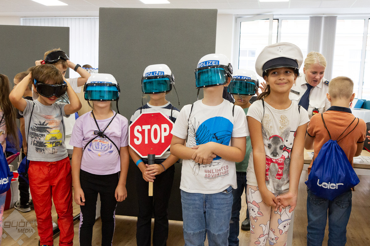 Kisiskolás gyerekeknek szervezett "KRESZ-fesztet" a Biztonság hete keretében a vármegyei rendőr-kapitányság kedden. Kilenc interaktív állomáson próbálhatta ki magát több, mint kétszáz győri általános iskolás diák a Leier udvarban, ahová a tűzoltók is kitelepültek különféle feladatokkal. Kirakós, ujjlenyomat készítő, részeg szemüveges stand, de kerékpáros akadálypálya is várta a kicsiket.