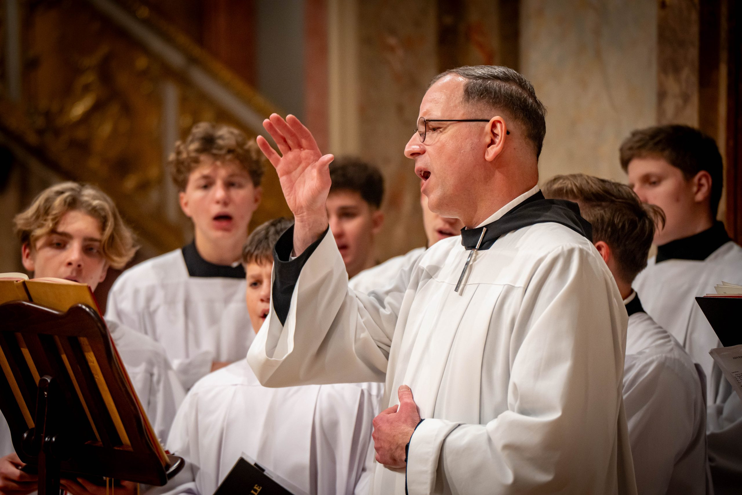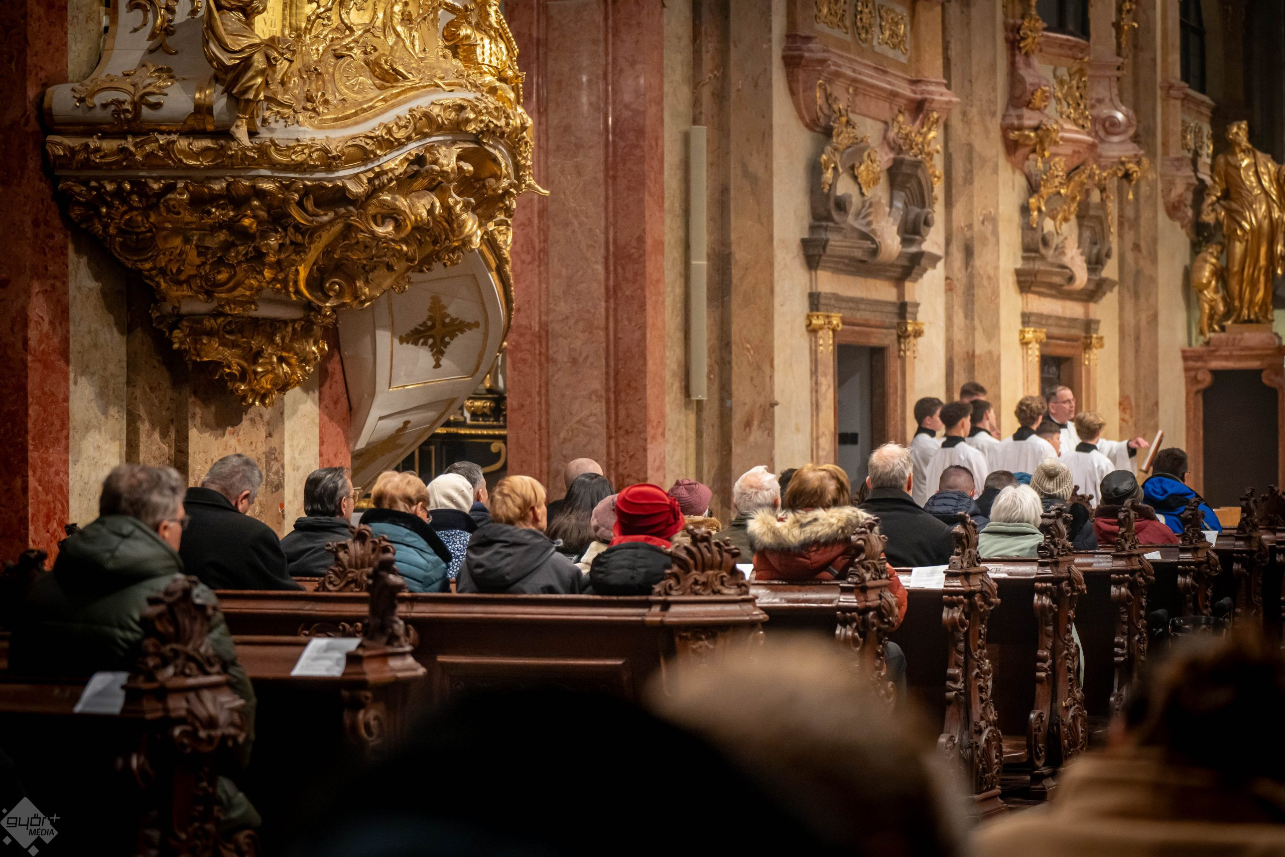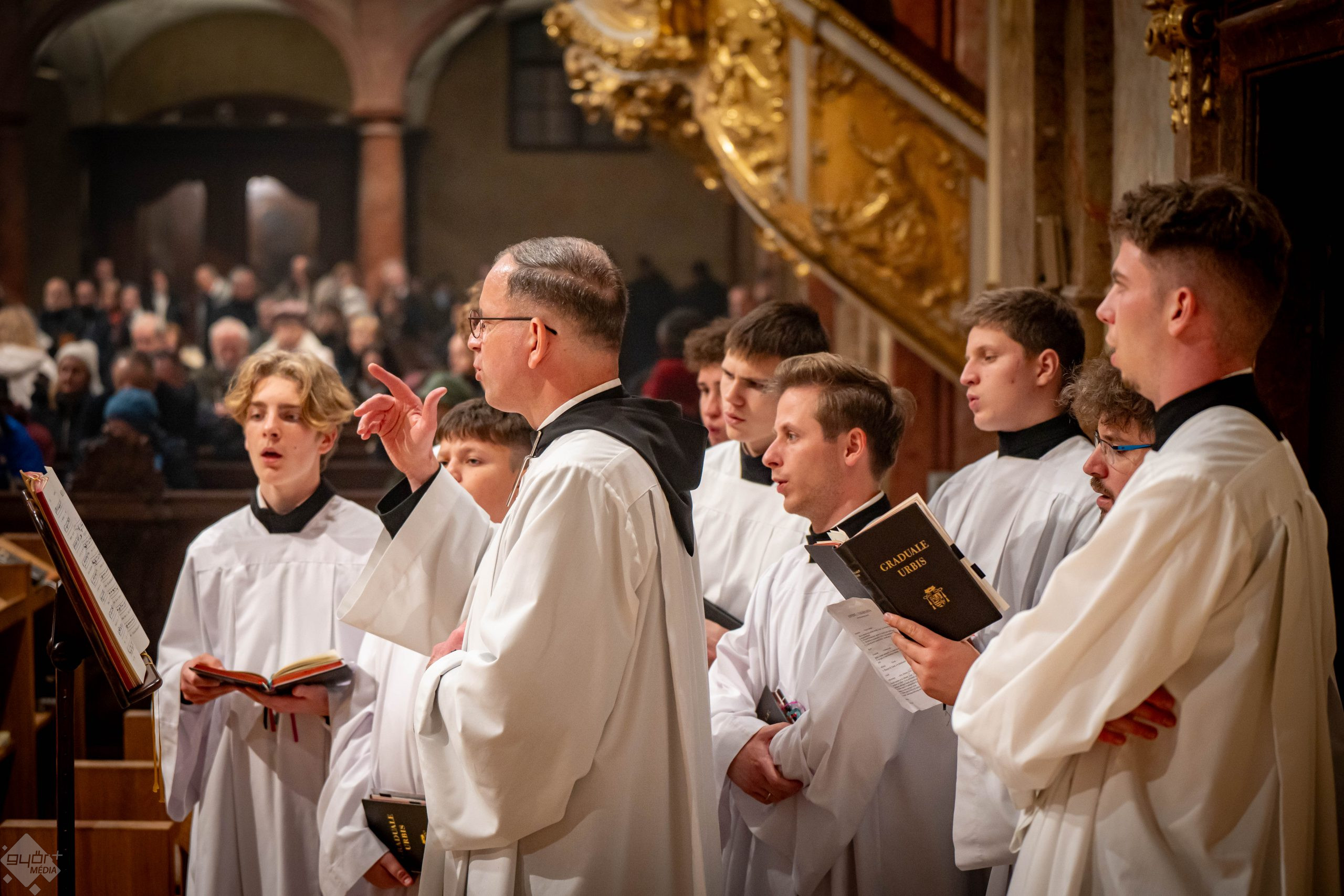 A nap ünnepi lezárásaként a résztvevők órómai énekes szentmisén vehettek részt Advent első vasárnapjának előestéjén a Loyolai Szent Ignác bencés templomban, melyet Major Fulgent bencés szerzetes, templomigazgató atya celebrált. A liturgia méltó és felemelő lezárása volt annak az eseménysornak, amely egyszerre szólt zenei felfedezésről, tudományos eredményekről és a bencés hagyomány újjáéledéséről.