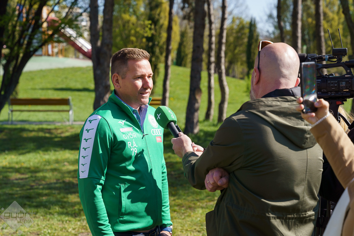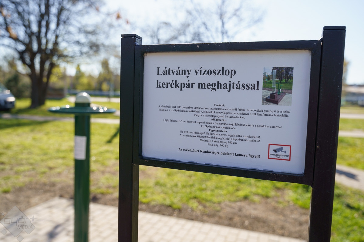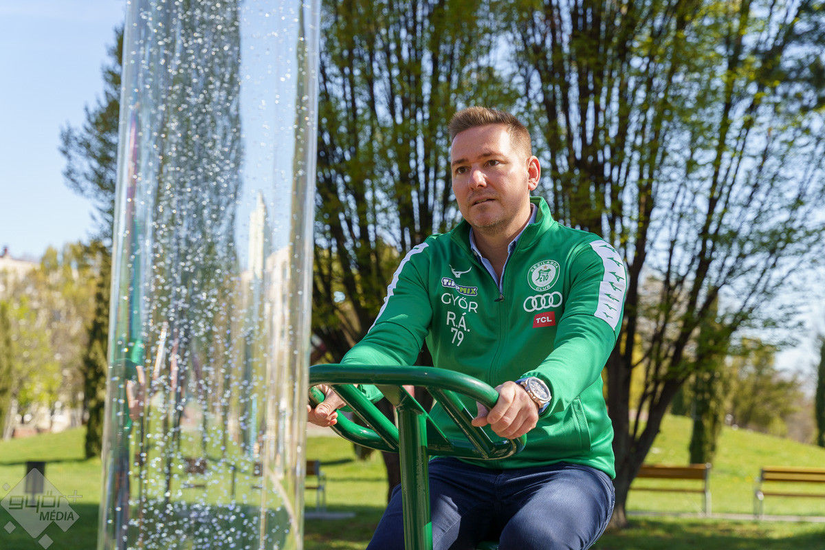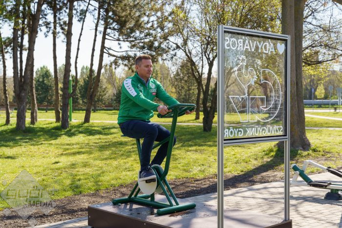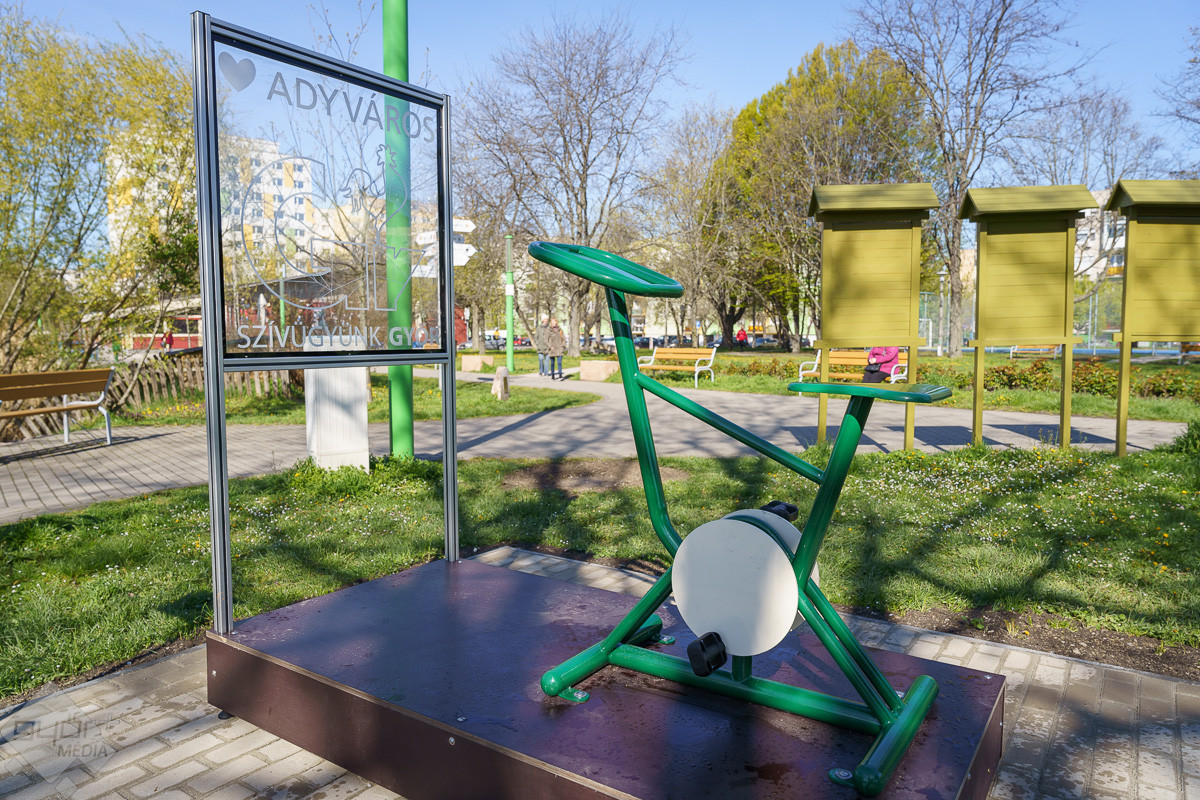 Radnóti Ákos a kondipark létrejöttének kapcsán felhívta a mozgás fontosságára a figyelmet és elmondta, hogy egy nyugdíjas hölgy ötlete nyomán készítették el a fitneszparkot. Az eszközöket úgy válogatták, hogy legyenek olyanok, amelyek sehol máshol nincsenek a városban, ezek a kerékpárral hajtható installációk. „Van két nagyon extra bicikli, az egyiken vízoszlop, a másikon egy tábla van „Adyváros, Szívügyünk Győr” felirattal. Hajtástól függően, amilyen intenzitással tekerjük a pedált, úgy a vízoszlopban színes buborékok jelennek meg, a tábla pedig színes megvilágítást kap. Az eszközök használatát kihelyezett felvilágosító táblákról ismerhetik meg a mozogni vágyók” – tájékoztatott Radnóti Ákos. A kerékpárok mellett egy elliptikus sétáló és egy derékmozgató fitneszeszköz is segíti az edzést, az egészségmegőrzést.