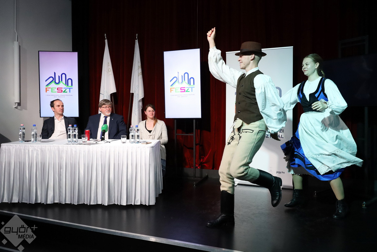 A sajtótájékoztató zárásaként a Csobolyó Néptáncegyüttes két tehetséges táncosa szórakoztatta a megjelenteket, ízelítőt adva a Duna Feszt hangulatából.