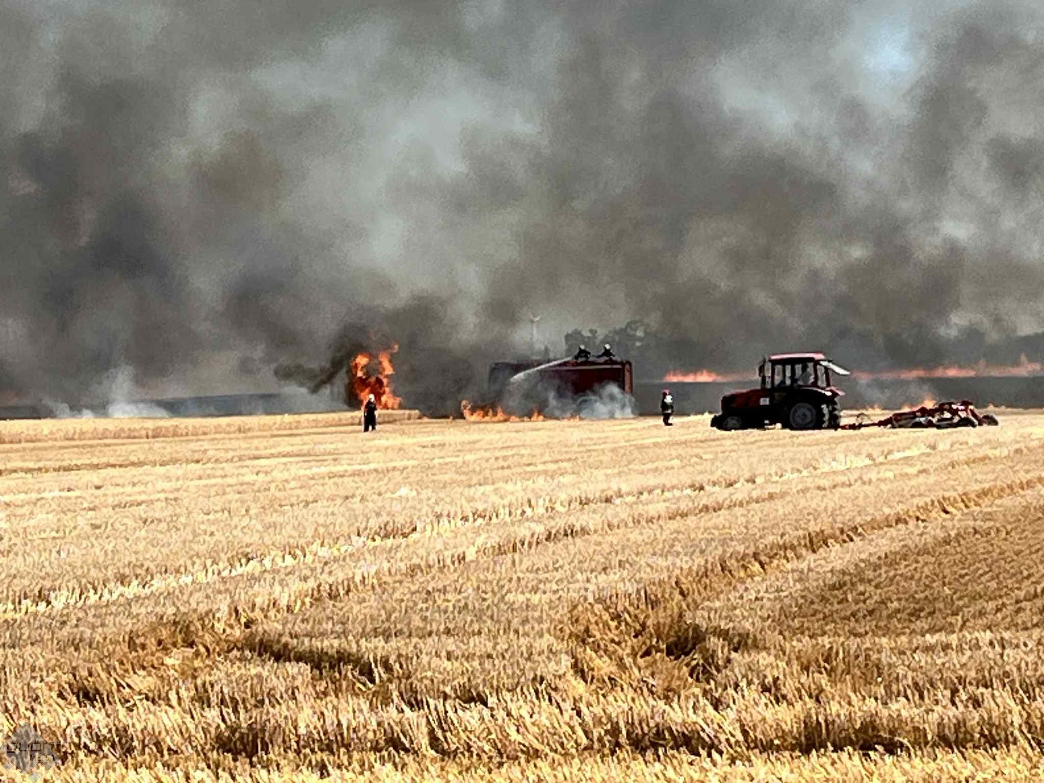 Hatalmas tűz volt szerdán délelőtt Pér és Mezőörs határában, a 81-es főút mellett. Körül-belül tíz hektár gabona kapott lángra. Öt település tűzoltói, köztük a győriek érkeztek a helyszínre.