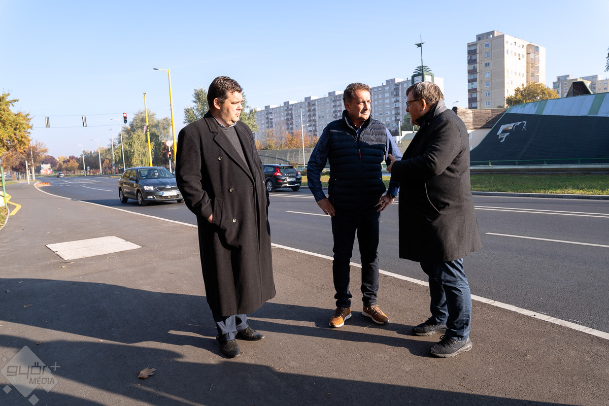 Erről beszélt dr. Dézsi Csaba András polgármester, amikor Győr országgyűlési képviselőjével és a körzet önkormányzati képviselőjével közösen mutatták be a sajtónak az elkészült beruházást. A forgalmas csomópontot több mint 100 millió forintból bővítették ki, ezzel jóval nagyobb lett a kapacitása és az áteresztő képessége, így gördülékenyebbé vált az áthaladás a kereszteződésben.