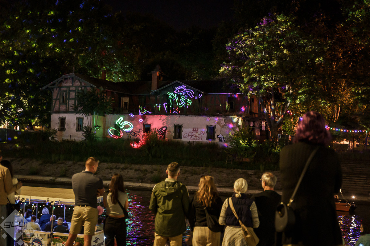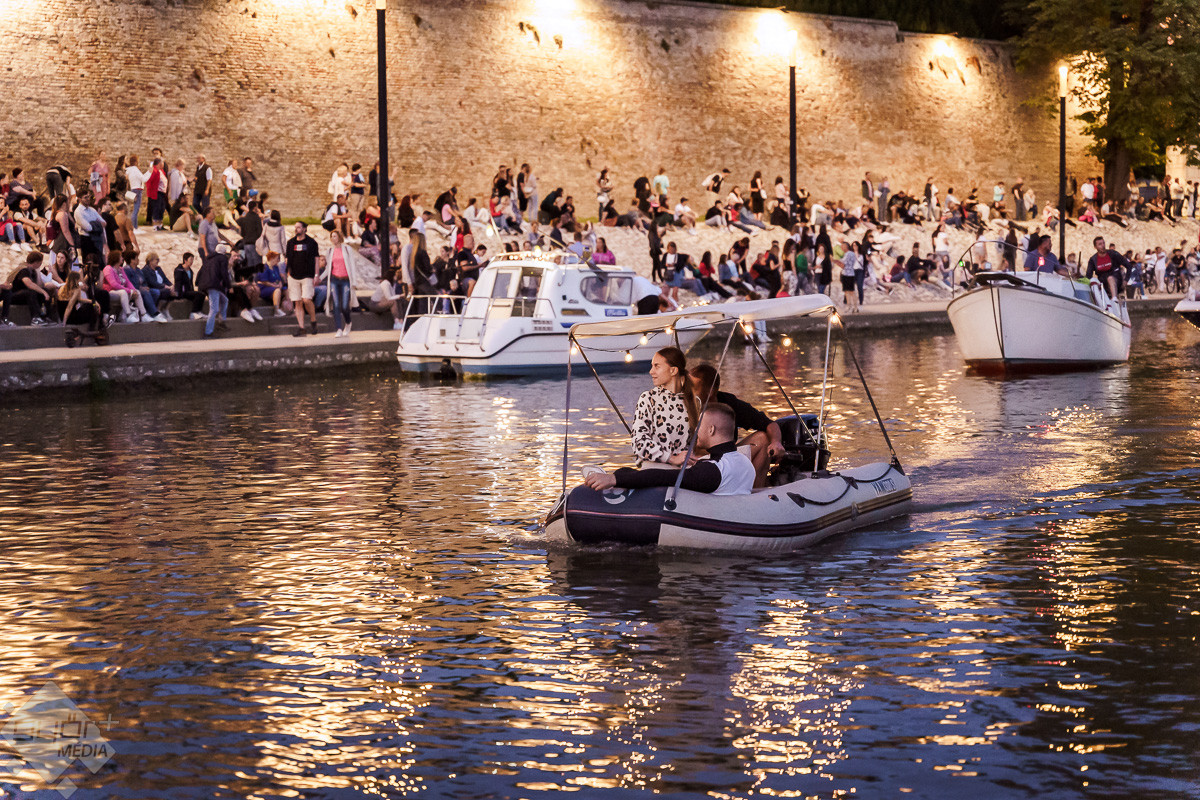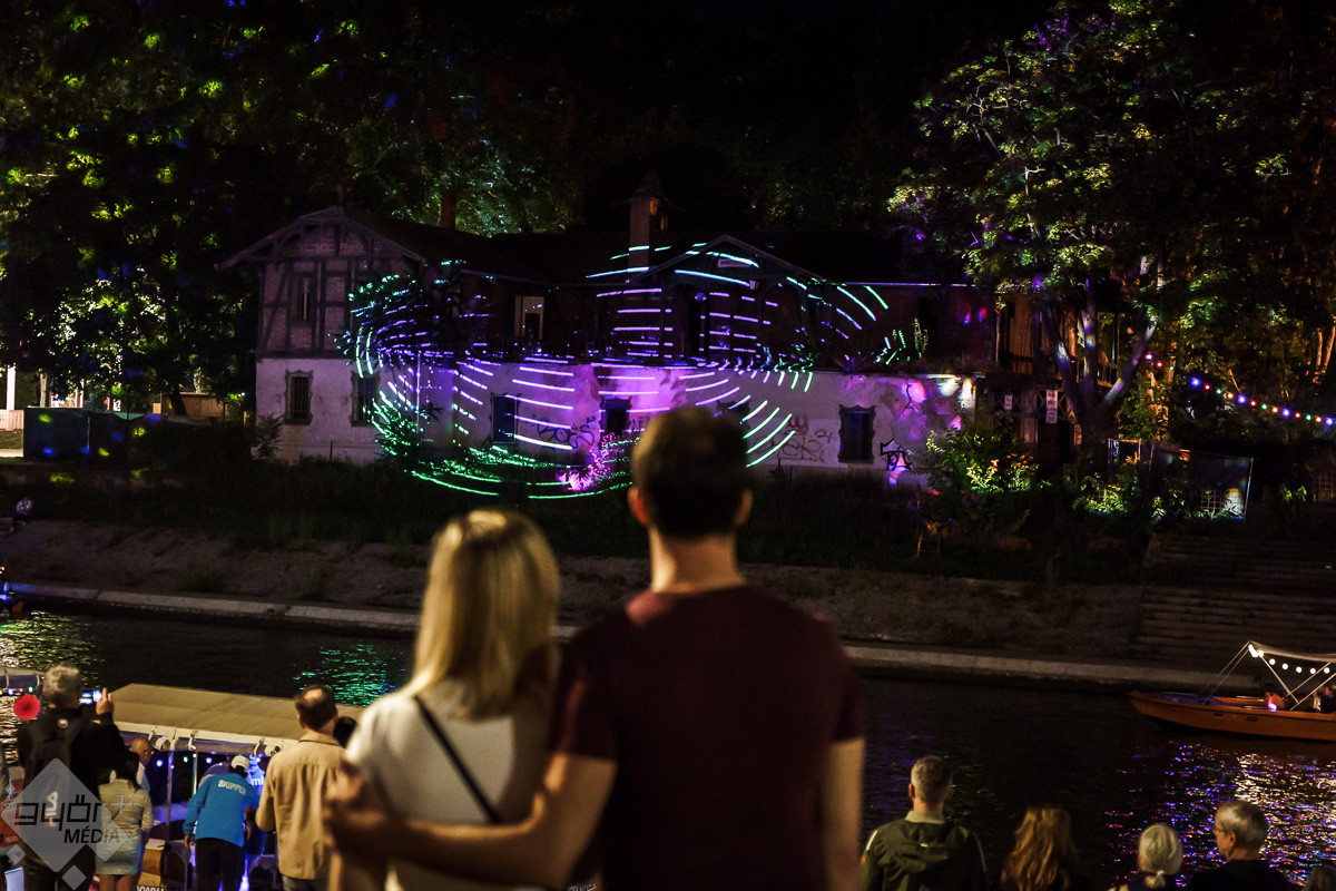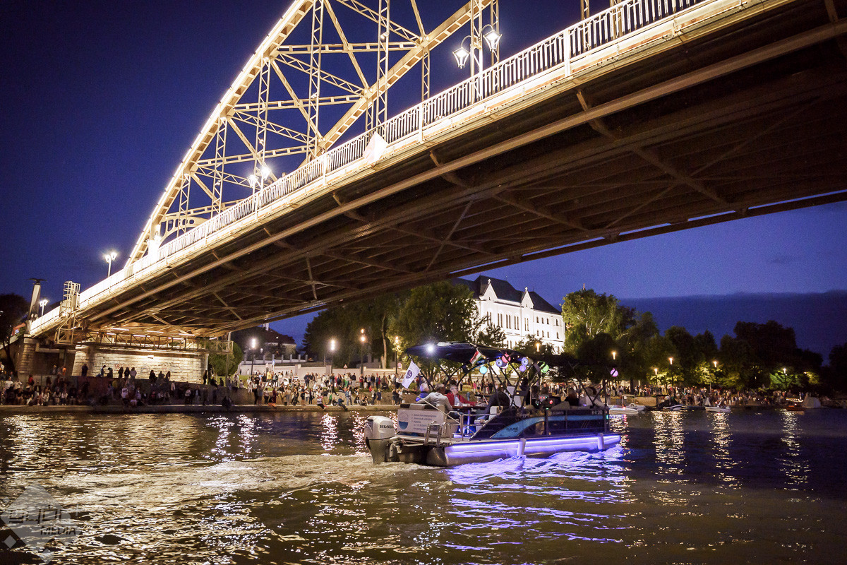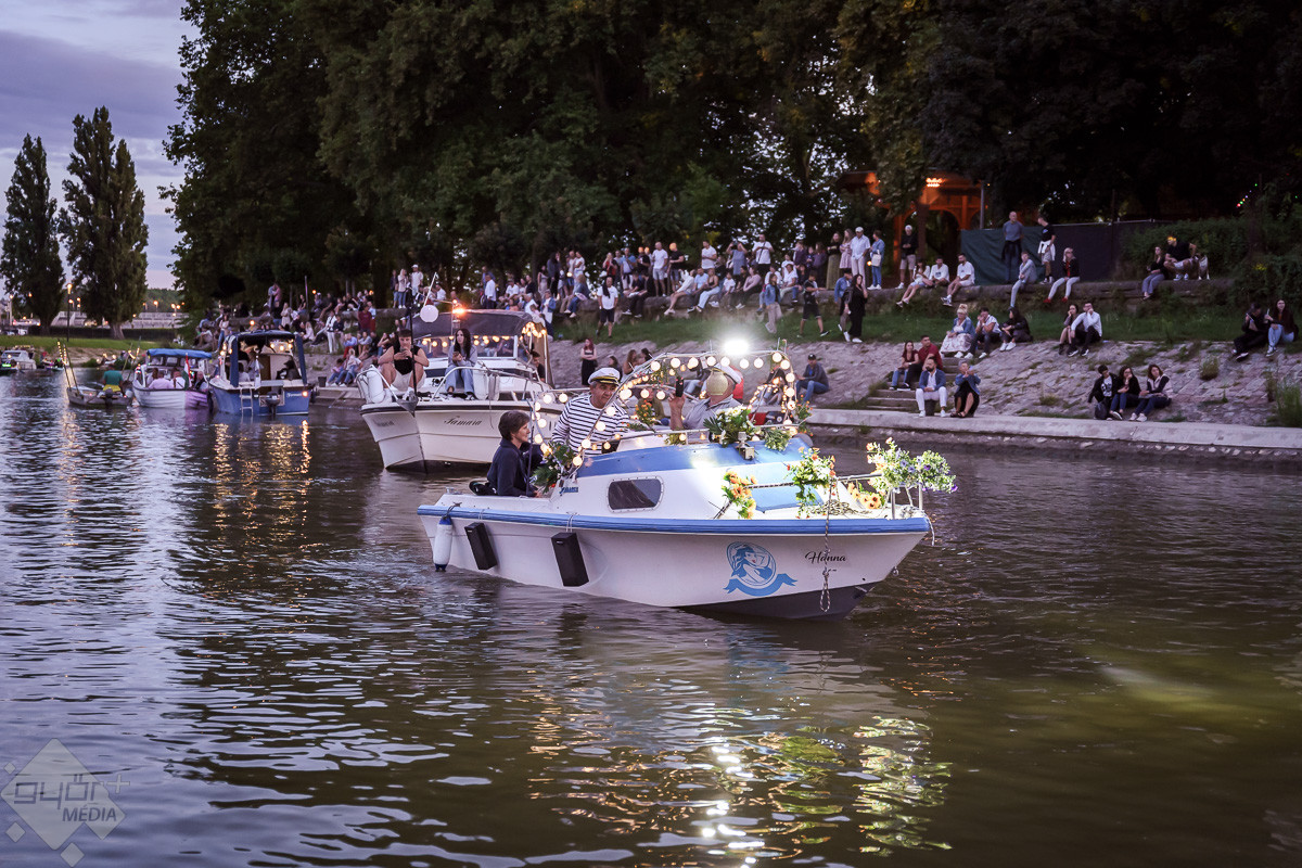 A különleges eseményen közel 100 kivilágított vízi jármű – csónakok, kajakok, sárkányhajók és kisebb motorcsónakok – szelte a habokat, mindenféle színes fényekbe és díszítésbe burkolva.
