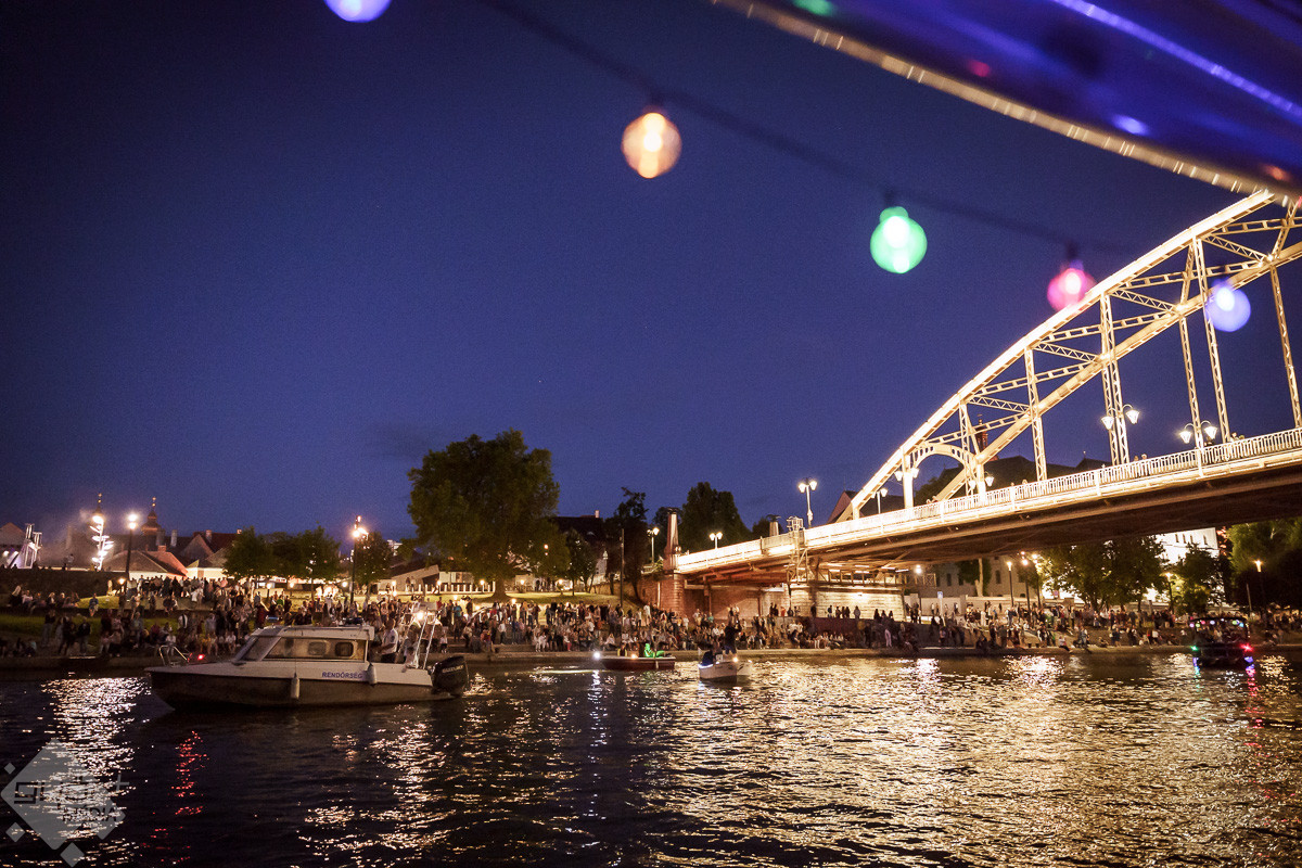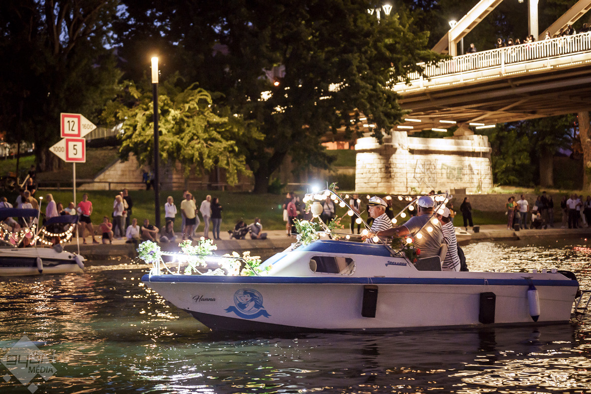 Pénteken este újra életre kelt egy régi hagyomány Győrben: látványos lampionos hajós felvonulást tartottak a Rábán és a Mosoni-Dunán.