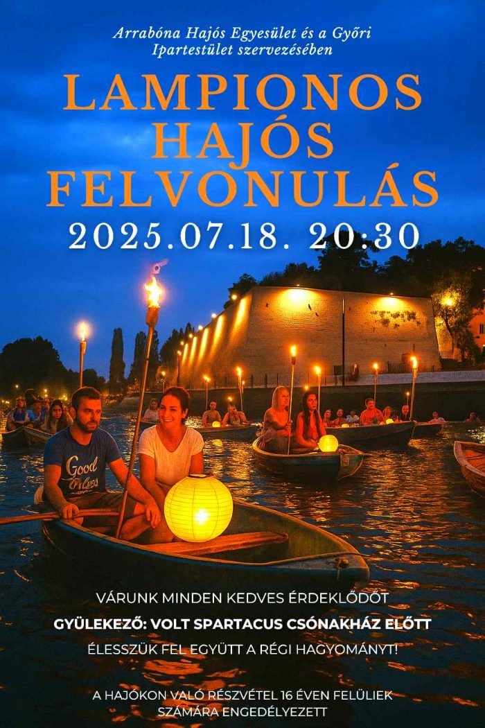 Zvezdovics Zoltán, az Arrabona Hajós Egyesület elnöke megköszönte a támogatást és már az esemény tervezett menetéről is beszámolt: ezek szerint július 18-án este fél kilenckor a Radó-szigettel szemközt, a vízi színpad helyén lesz a hajósok gyülekezője. Ezt követően a menet a belvárosban elsőként a Radó-sziget körül tesz egy kört, majd a Mosoni-Duna felé veszi az irányt, a BM-csónakháznál lesz a forduló, ahonnan a szabadstrandhoz, végül pedig vissza Rába-partra érkezik a látványosnak ígérkező felvonulás.