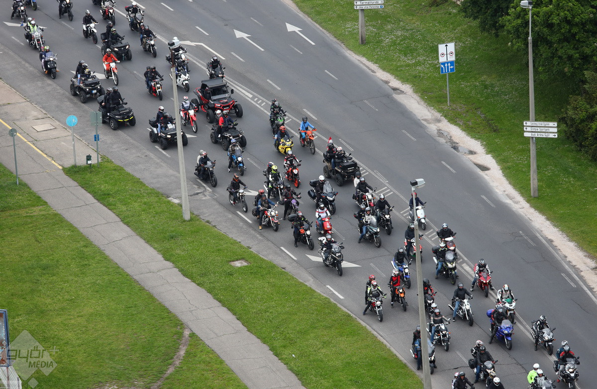 A hagyományos motorszentelést követően, 14 órakor startoltak el a járgányok Győrújbarátról és vonultak egészen az ETO parkig, majd onnan ismét vissza a fesztivál helyszínére. Ezt követően 16 órától motoros kaszkadőrök kápráztatták el mutatványaikkal az egybegyűlt tömeget. Természetesen ma is volt karaoke az ebédlőben és a játékos vetélkedők sem maradhattak el.