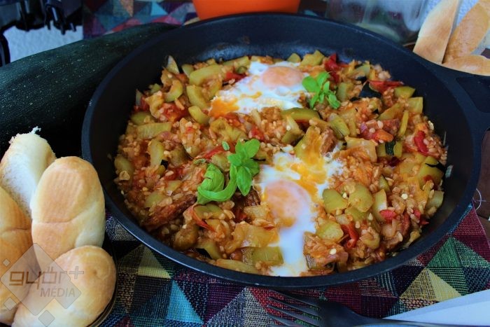 Tojással, paprikával, paradicsommal. Apósom és apukám finomat készít.