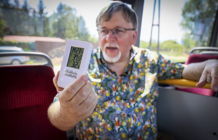 Sok a panasz, hogy a városi buszjáratokon a nagy meleg ellenére nincs légkondicionáló vagy nem működik a berendezés, így sokszor 36-38 fokban kénytelenek utazni a győriek. A polgármesterhez is eljutottak a rossz hírek, ezért a városvezető úgy döntött, buszra száll és személyesen teszteli, mi az igazság. Dr. Dézsi Csaba András hétfőn egy régi csuklós járatra és egy vadonatúj Mercedes buszra is felszállt, sőt meg is mérte, pontosan hány fok van a járatokon. A légkondi nélküli buszon 37 foknál is több volt, míg a nemrég Győrbe érkezett új járaton kényelmesen lehetett utazni.