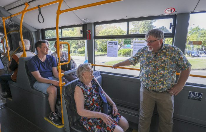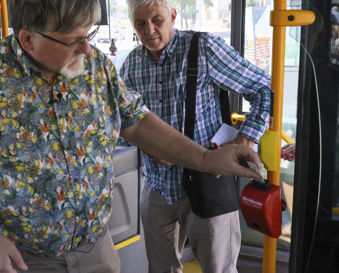 Győr nagyvonalú polgármestere nem csak magának, de kísérőinek is megváltotta a jegyet, majd már a buszmegállóban beszélgetésbe elegyedett az ott várakozókkal. „Sok bejelentés érkezett, hogy a buszokon vagy nincs, vagy nem működik a légkondicionáló berendezés, most teszteljük, valóban így van-e” – mondta a polgármester. „Nem véletlenül egy régebbi gyártású, úgynevezett sárga csuklós járatra szálltunk fel, hiszen ezekbe sajnos még nem szereltek légkondicionálót, egy digitális hőmérőt is hoztam magammal, hogy megnézzük, hány fok van a buszon” – tette hozzá dr. Dézsi Csaba András, immár a Győri Nemzetközi Ipari Parkba tartó 38/A járaton.