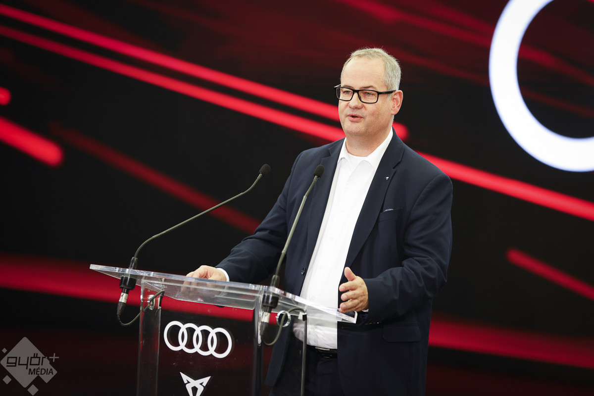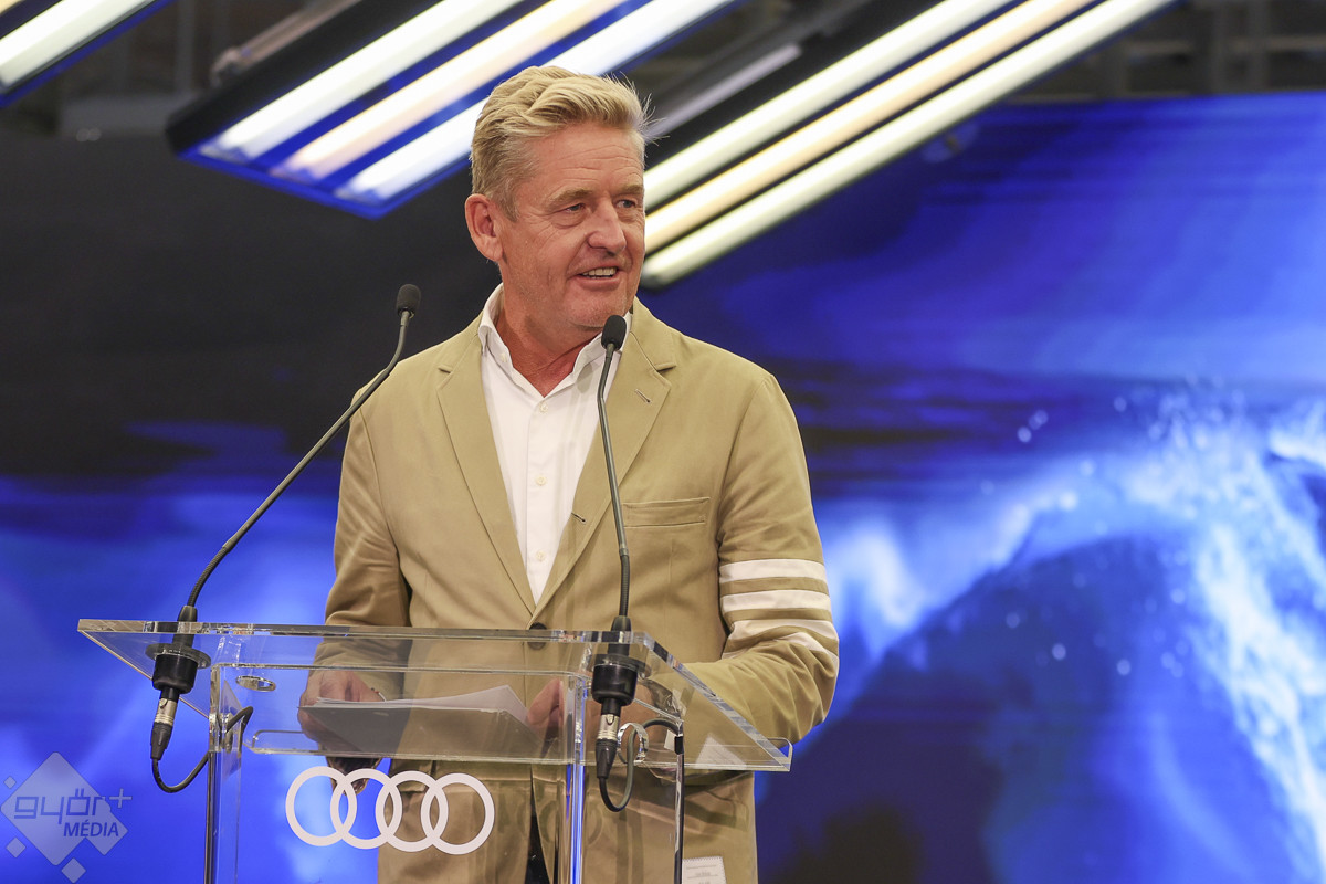 „Az Audi Hungaria magasan képzett munkatársai évente több mint 170 000 autót készítenek Győrből a világnak. Vállalatunk 31 éves története alatt eddig kizárólag Audi modellek gördültek le gyártósorainkról, de a mai fontos nap, hiszen mától mi vagyunk az első olyan Audi gyár, ahol egy testvérmárka járműve is készül. Több mint 12 000 munkatársunkkal együtt felkészültünk a jövőre” – emelte ki Michael Breme, az Audi Hungaria Zrt. igazgatóságának elnöke.