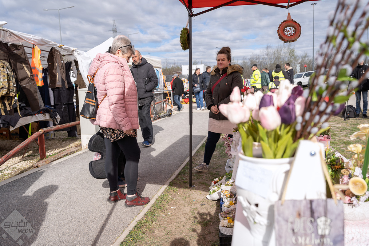 A győriek szeretnek piacra járni, ehhez kétség nem férhet. S már azt is egyre inkább megszokják, hogy a közkedvelt ETO Park parkolóból az Audi Aréna mellé költözött a vasárnapi kirakodóvásár. A tavaszias idő sokakat csalogatott ki március 26-án is, a palánták, friss zöldségek egyre kelendőbbek az egész évben megszokott árukészletek mellett.