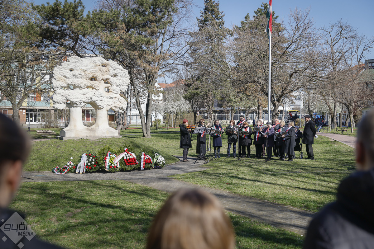 A köszöntők után a megemlékezés koszorúzással folytatódott, amelyen Győr és Börcs önkormányzata mellett számos civil szervezet is lerótta tiszteletét. Az ünnepségen közreműködött a Győri Lengyel Akord Kamarakórus.