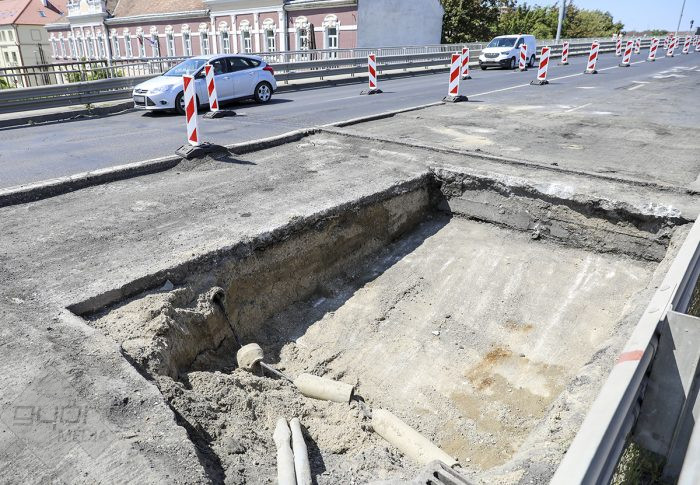 „A jelenlegi ütem keretében feltárásra került a Révfalu felé menő irányban a belváros felőli hídvég pályaszerkezet alatti, úgynevezett híd-háttöltés környezete. A hídvégi problémák miatt volt tapasztalható az utazáskényelmet erősen rontó bukkanó, amelyet a jelenlegi beavatkozásokkal megszüntetni tervezünk. Ugyanilyen javítási munkát ütemeztünk be még a híd Révfalu felőli végén, valamint víznyelők és a levezető csatornák javítását a hídon, két helyen” – válaszolta Szabó Bernát, a Magyar Közút Nonprofit Zrt. Győr-Moson-Sopron megyei Igazgatóságának üzemeltetési és fenntartási osztályvezetője.