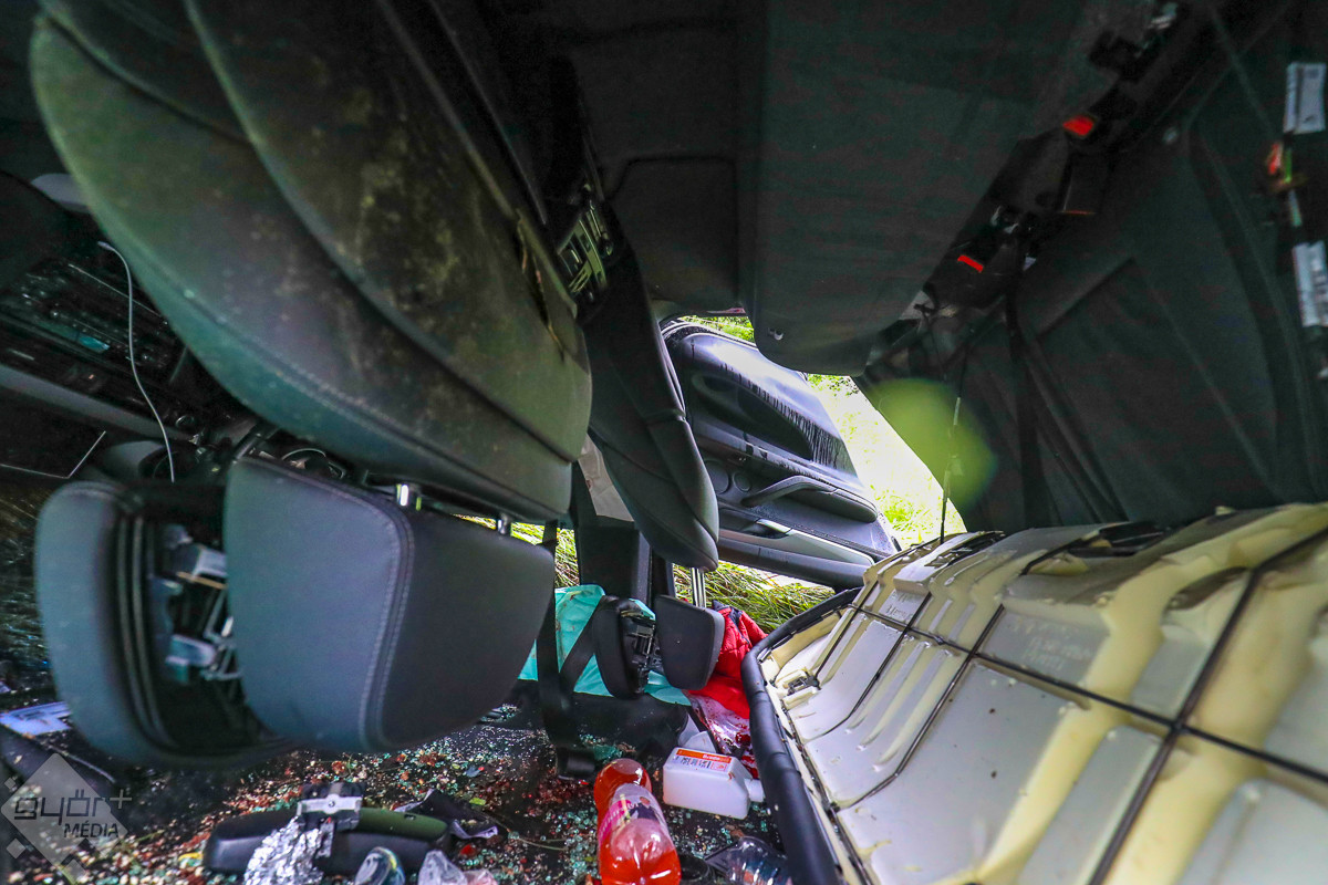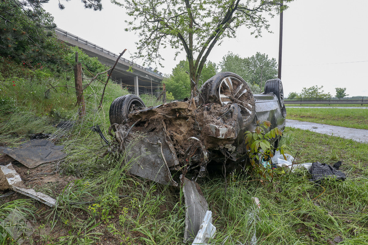 Kollégánknak sikerült beszélnie a helyszínen egy szemtanúval, aki elmondta: szemre nézve nagy sebességgel közelített az autó, amikor megcsúszott a pályán. Először a bal oldali, belső elválasztó korlátnak ütközött neki, és a belső sávelválasztó korlát dobta meg annyira a BMW-t, hogy a pálya jobb oldalán gyakorlatilag lerepült az úttestről.