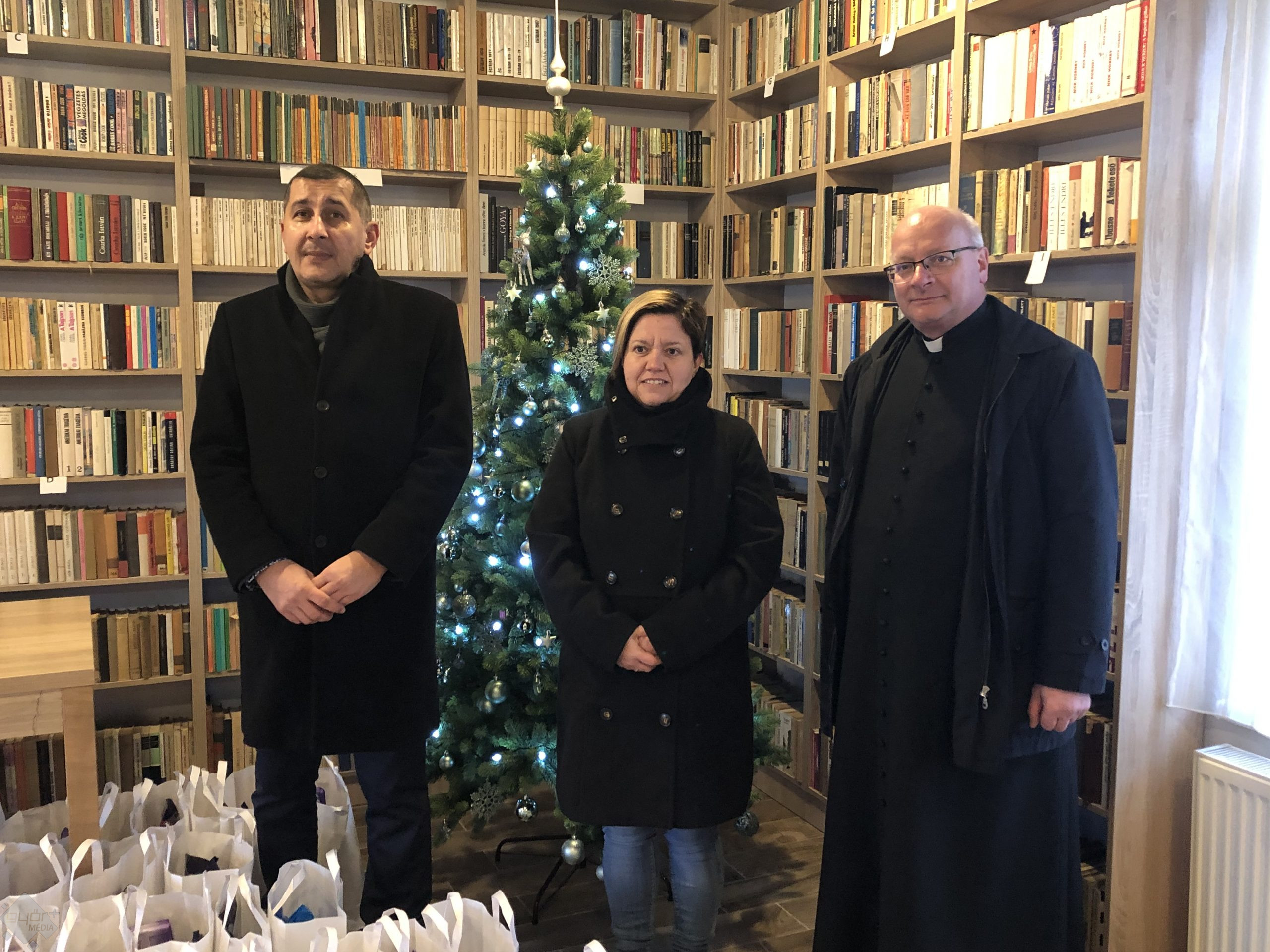 A teherautóból átmenetileg a hajléktalanszálló könyvtárába kerültek a meglepetések. A terembe belépve Reisner Ferenc azonnal felajánlotta, hogy szívesen adományoznak könyveket is a létesítménynek. Nemes Gábor intézményvezető úgy fogalmazott, hálásak az adományokért, hiszen Likócson minden ajándéknak örülnek. „A központi telephelyen több intézményünk működik. Próbálunk arra odafigyelni, hogy a különböző részlegeken felmerülő igényeket ki tudjuk elégíteni egy-egy ilyen felajánlás segítségével. Az egyházmegye által nyújtott élelmiszercsomagot a karácsonyi, házi ünnepséget követően, várhatóan szenteste vehetik át az ellátottak, akik csakúgy mint mások, békében és szeretetben igyekeznek megélni az adventi időszakot” – árulta el portálunknak Nemes Gábor.