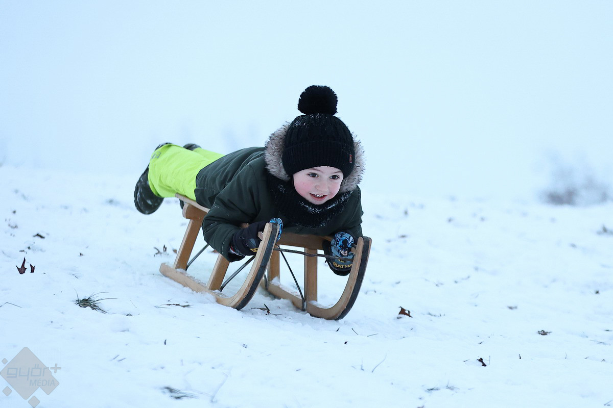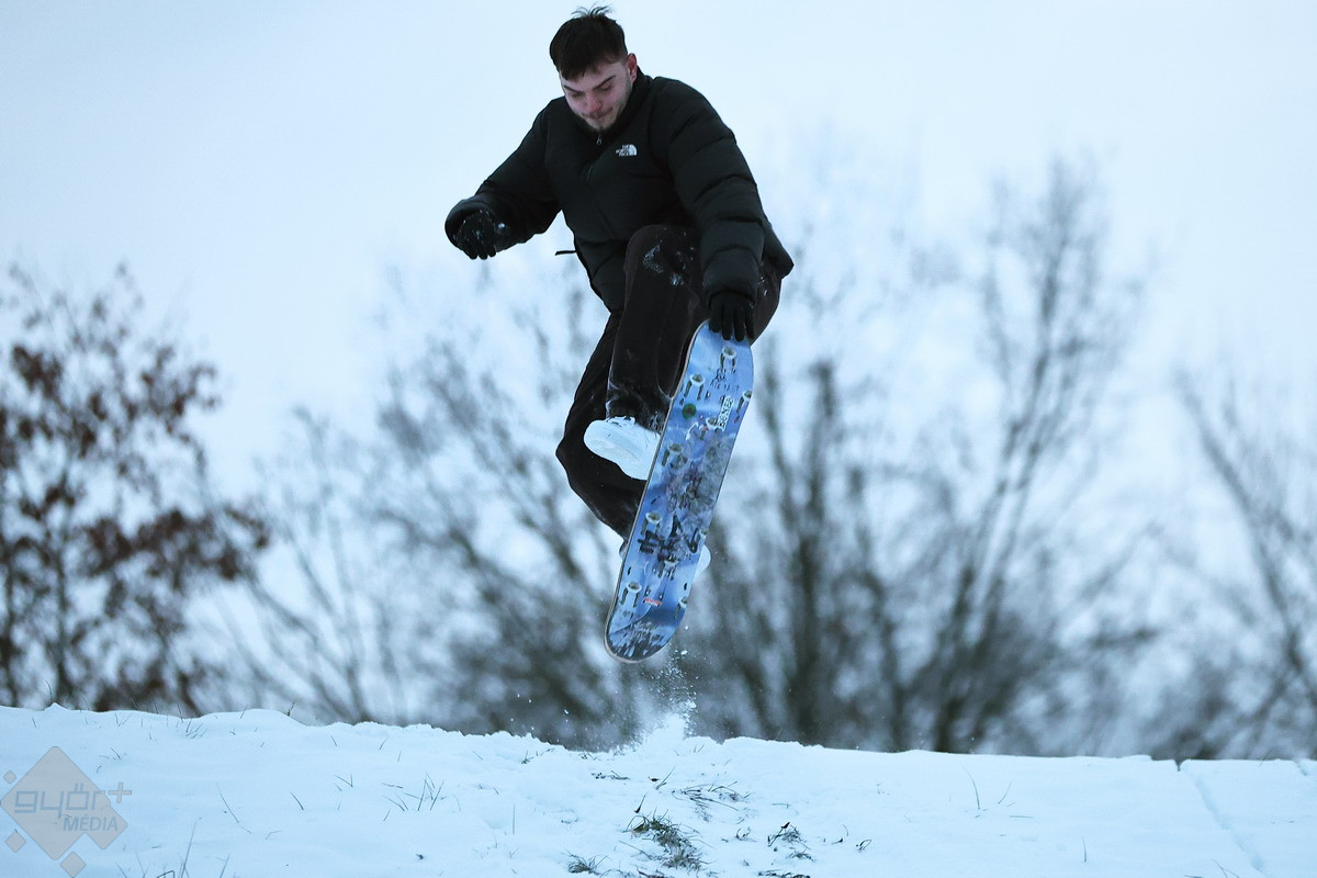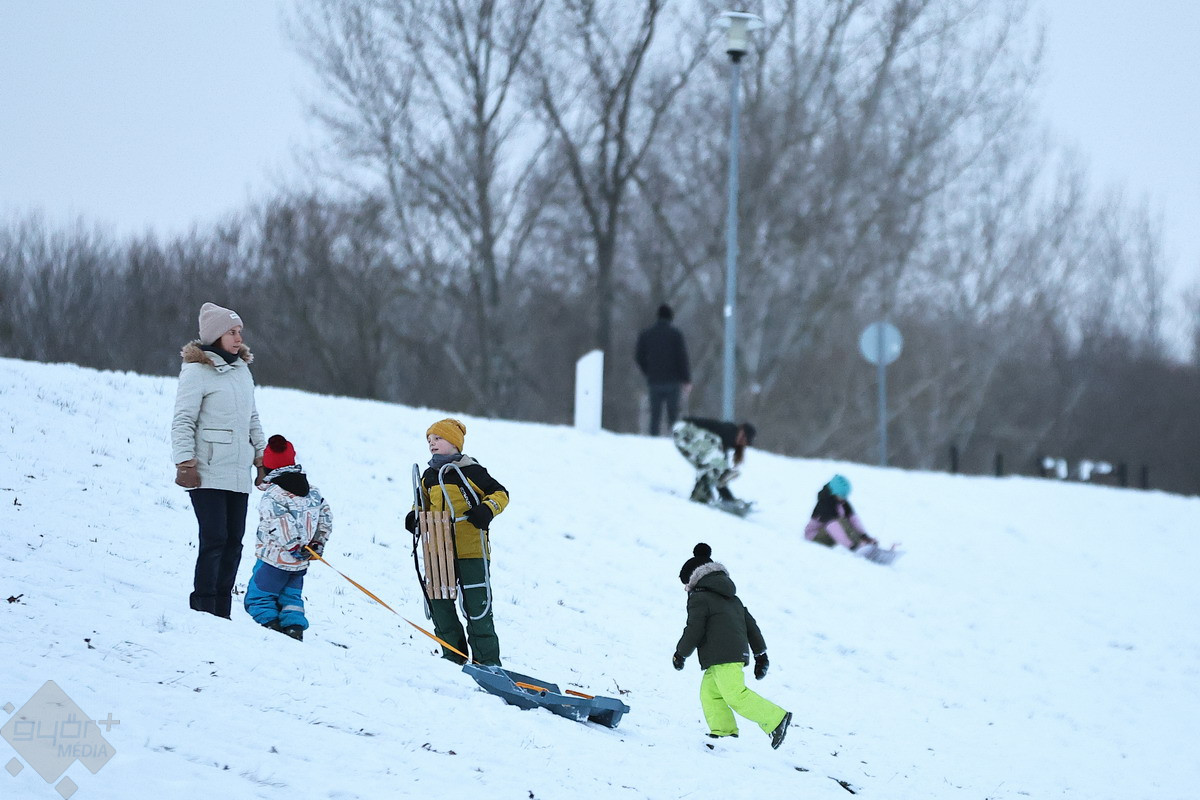 A csütörtök is a téli sportok és a szórakozás jegyében telt a városban. A legtöbben szánkóval hódították meg a kisebb dombokat, de volt olyan is, aki például snowboardra pattant... vagy éppen, ha más nem volt kéznél, fóliára.