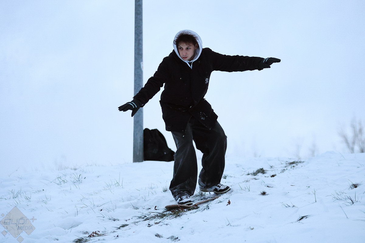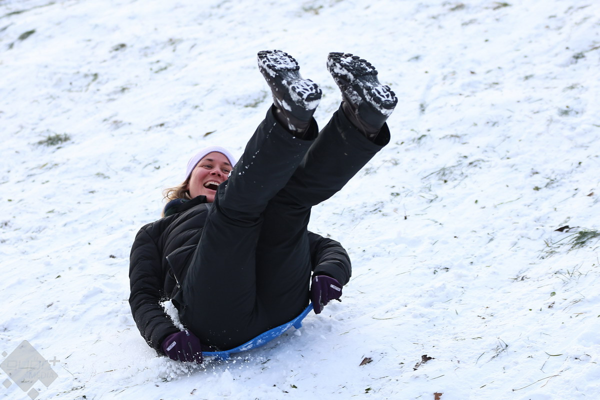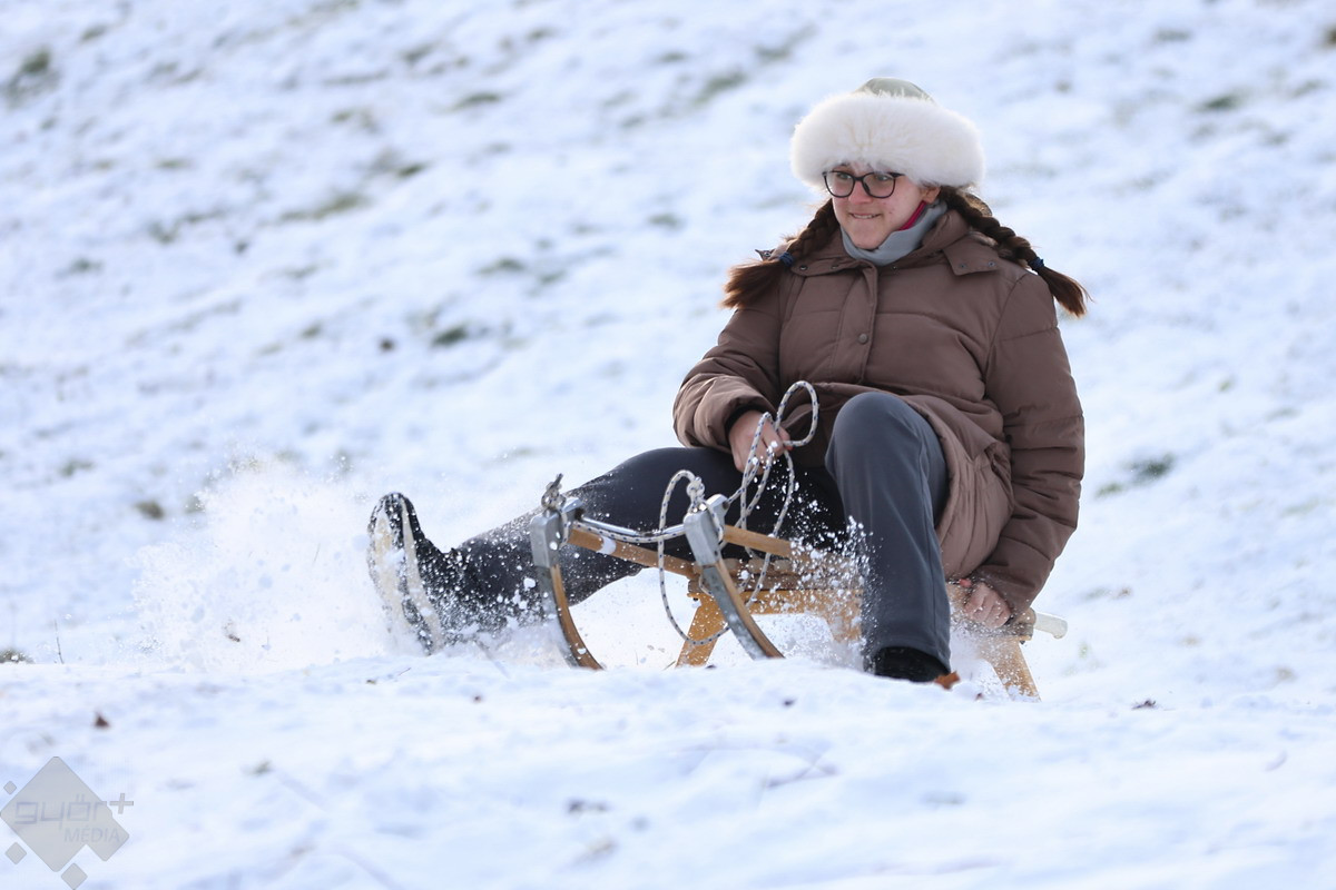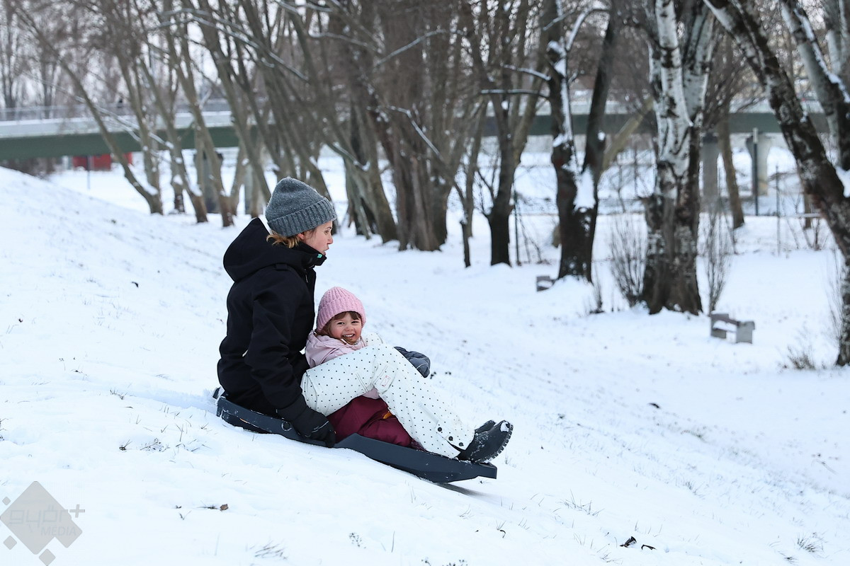 A csütörtök is a téli sportok és a szórakozás jegyében telt a városban. A legtöbben szánkóval hódították meg a kisebb dombokat, de volt olyan is, aki például snowboardra pattant... vagy éppen, ha más nem volt kéznél, fóliára.