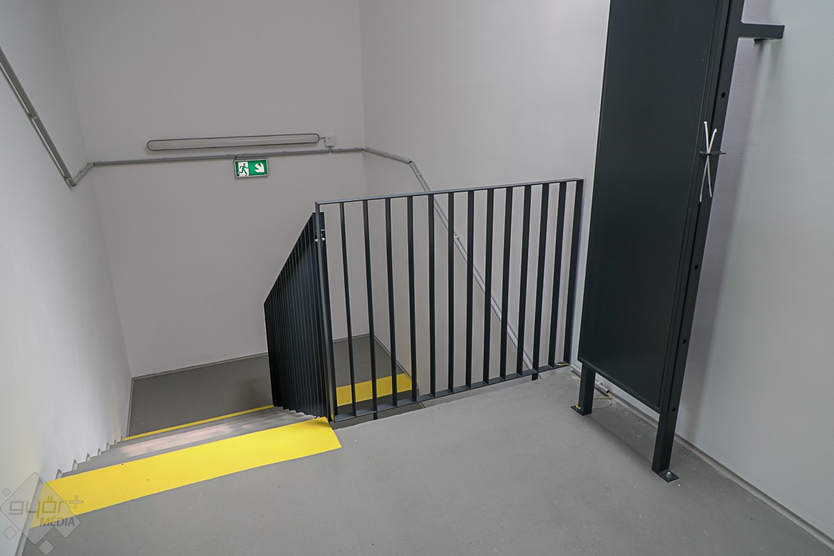 A házban a mozgássérültek számára öt parkolóhelyet alakítottak ki. Az épület homlokzata fénycsíkot kapott a látványossága érdekében.